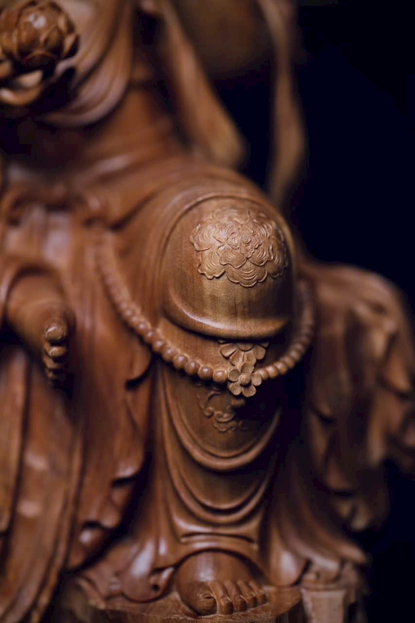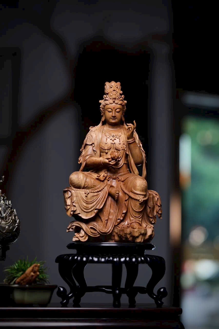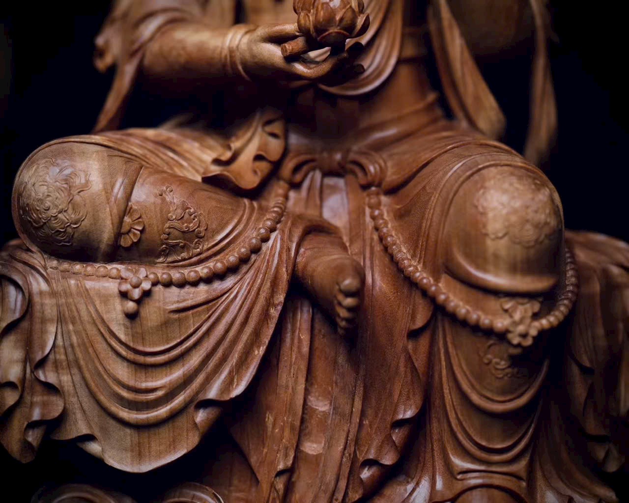 Tác phẩm phục dựng từ bảo vật “Trì Liên Quan Âm” thời Tống – hiện lưu giữ tại Bảo tàng Quốc gia Trung Quốc, được nghệ nhân chạm khắc hoàn toàn thủ công.