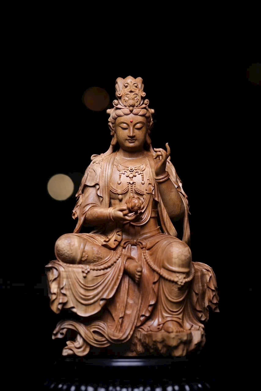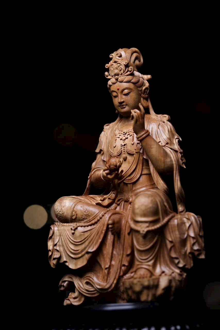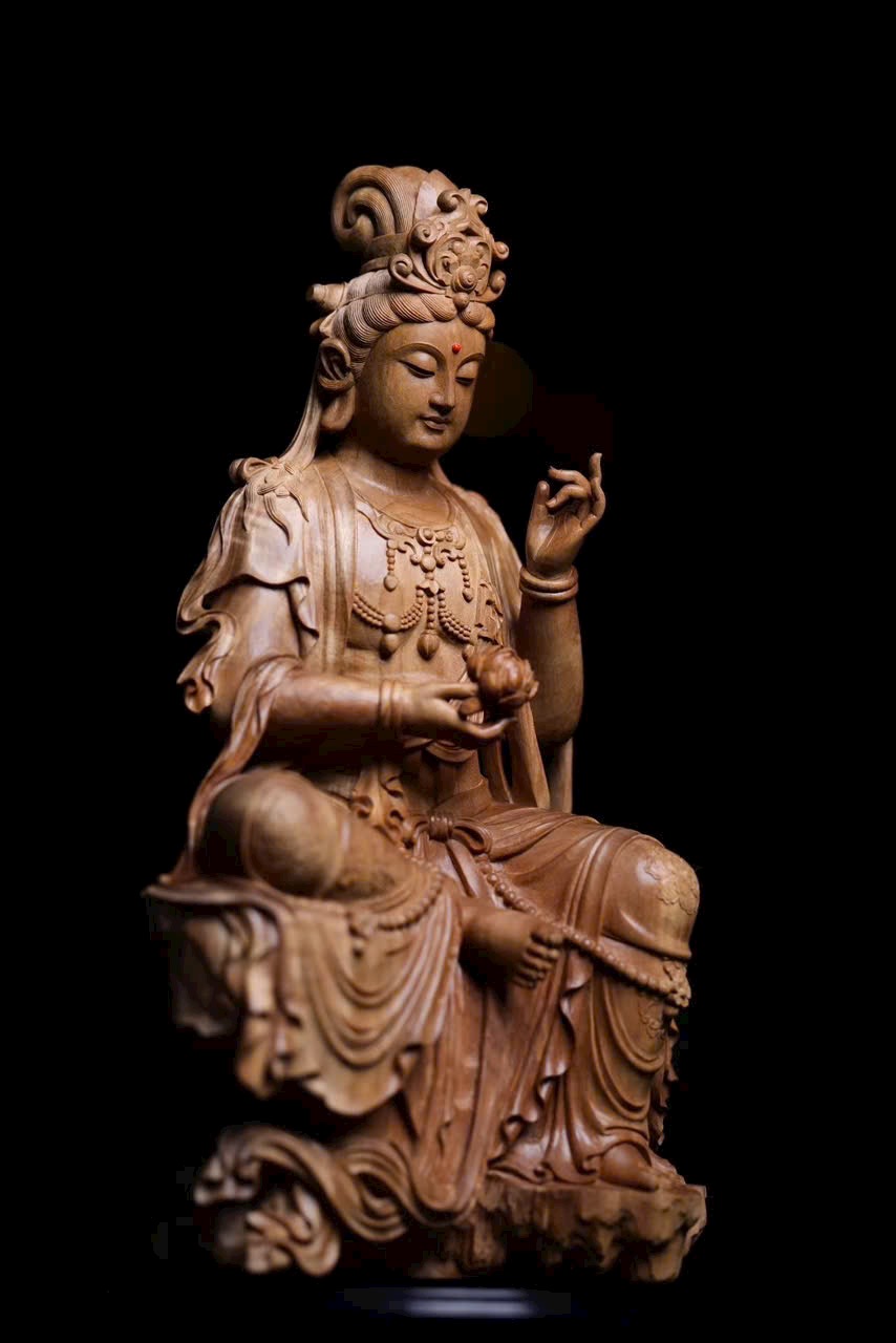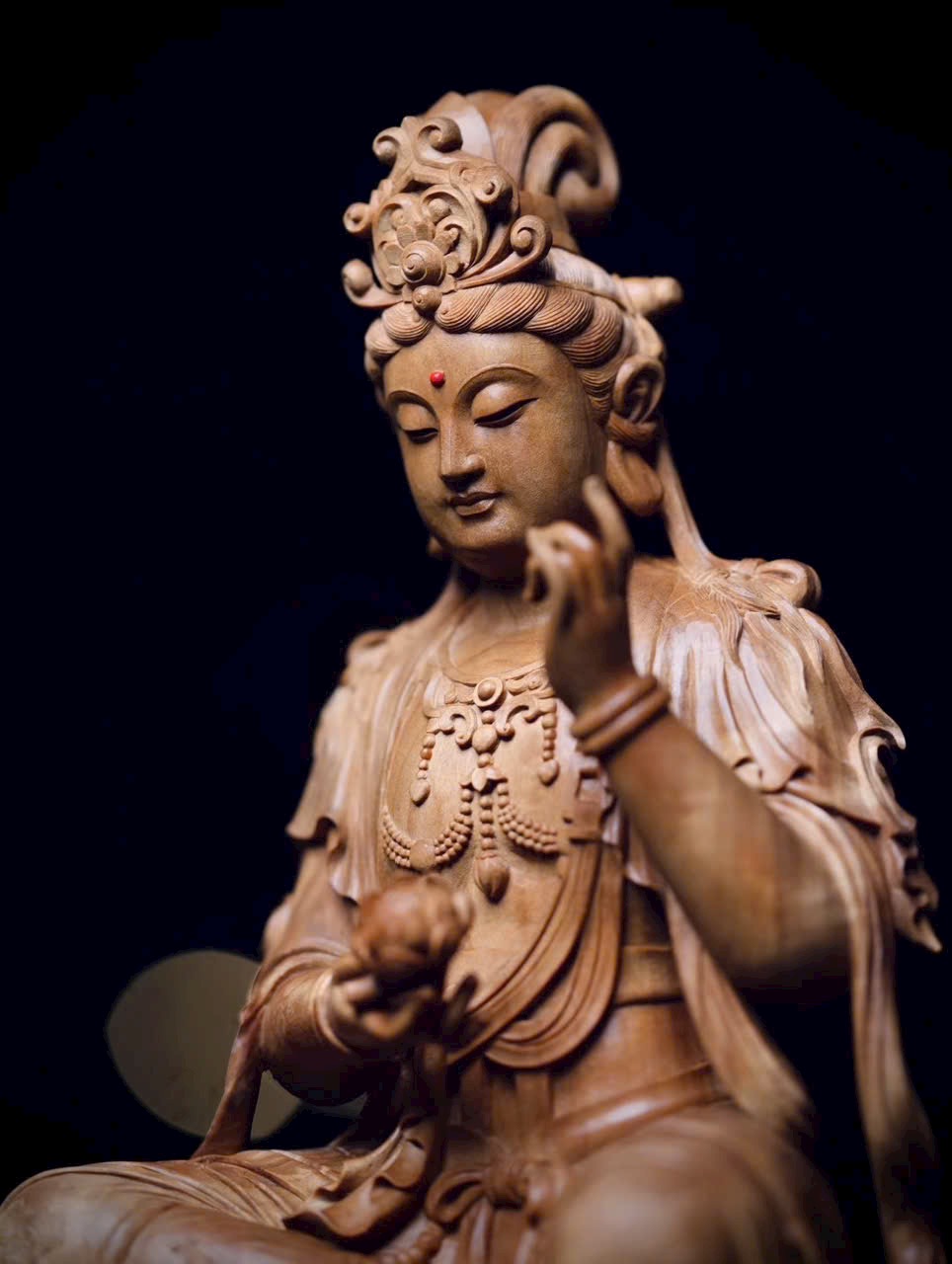 Tác phẩm phục dựng từ bảo vật “Trì Liên Quan Âm” thời Tống – hiện lưu giữ tại Bảo tàng Quốc gia Trung Quốc, được nghệ nhân chạm khắc hoàn toàn thủ công.