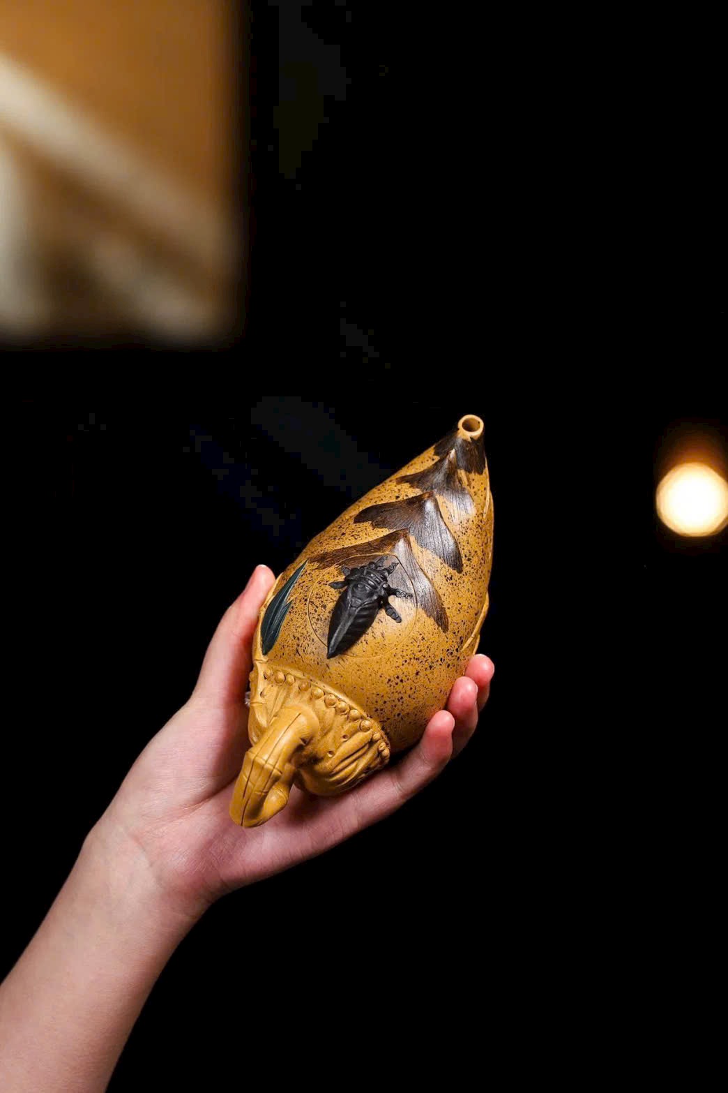 Ve sầu được dùng làm núm nắp ấm, phong cách giản dị mà tao nhã, hàm ý đẹp “tri túc thường lạc” – biết đủ thì luôn vui.