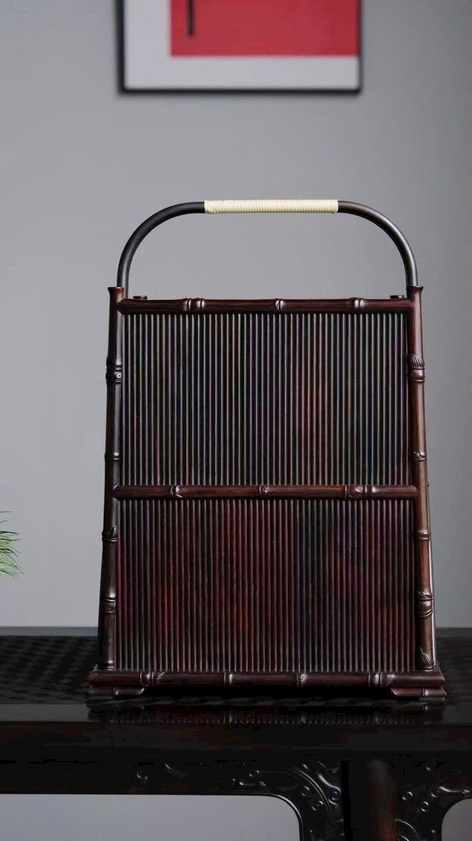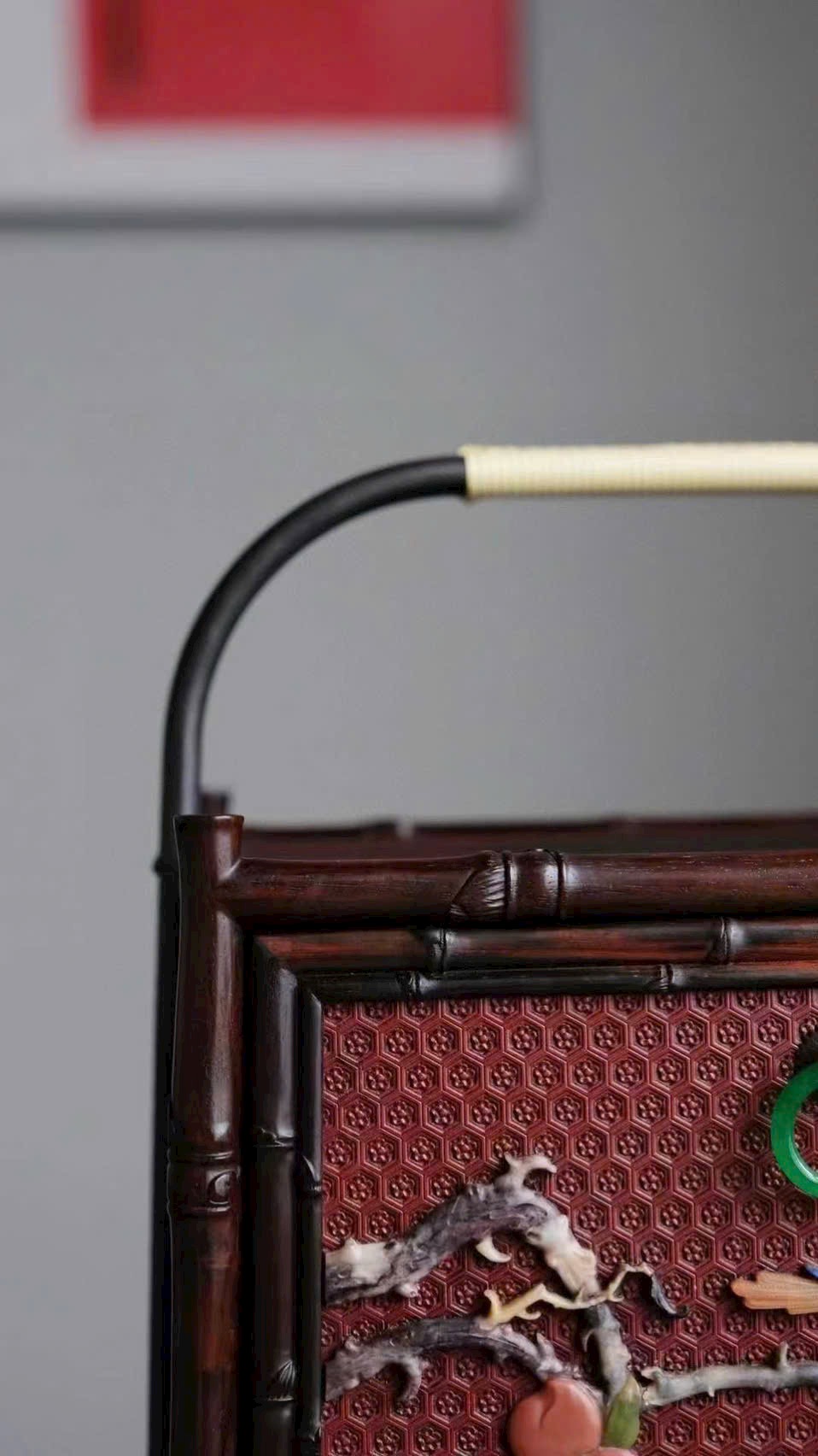Tác phẩm được chế tác từ gỗ Trắc quý hiếm, toàn thân chạm khắc họa tiết đốt trúc sinh động, chân thực. Cửa tủ sử dụng khóa nam châm ẩn, phần giữa cửa là tấm gỗ nguyên khối phủ sơn mài, khảm bách bảo, tinh xảo và nổi bật. Ở giữa cửa có một nút ngọc tròn, như điểm nhấn “họa long điểm nhãn”, khiến tổng thể thêm hoàn mỹ.
