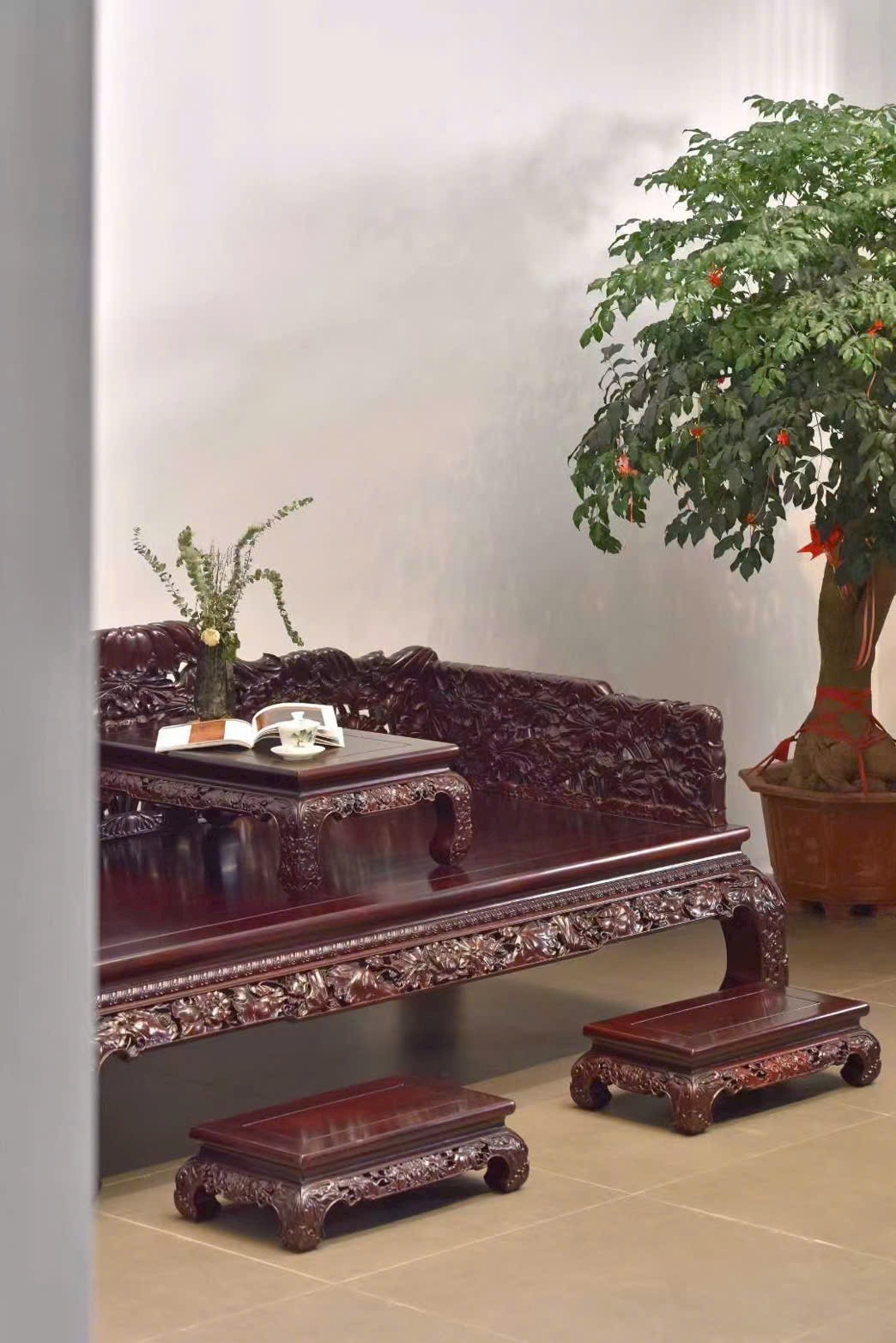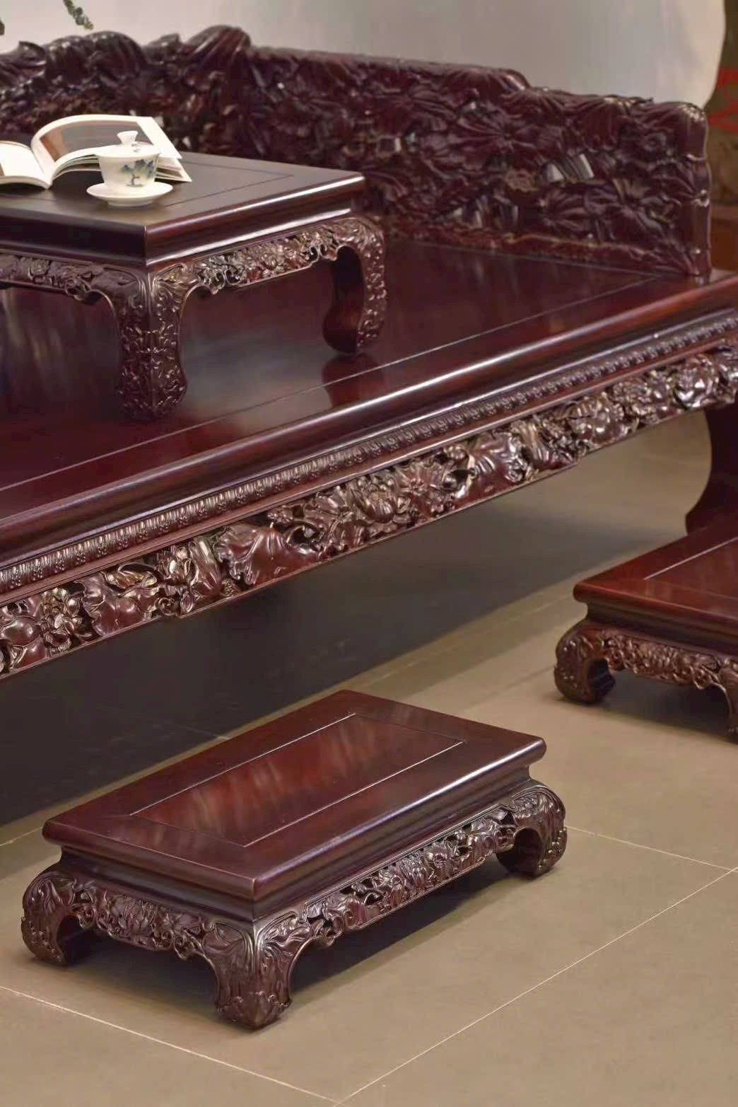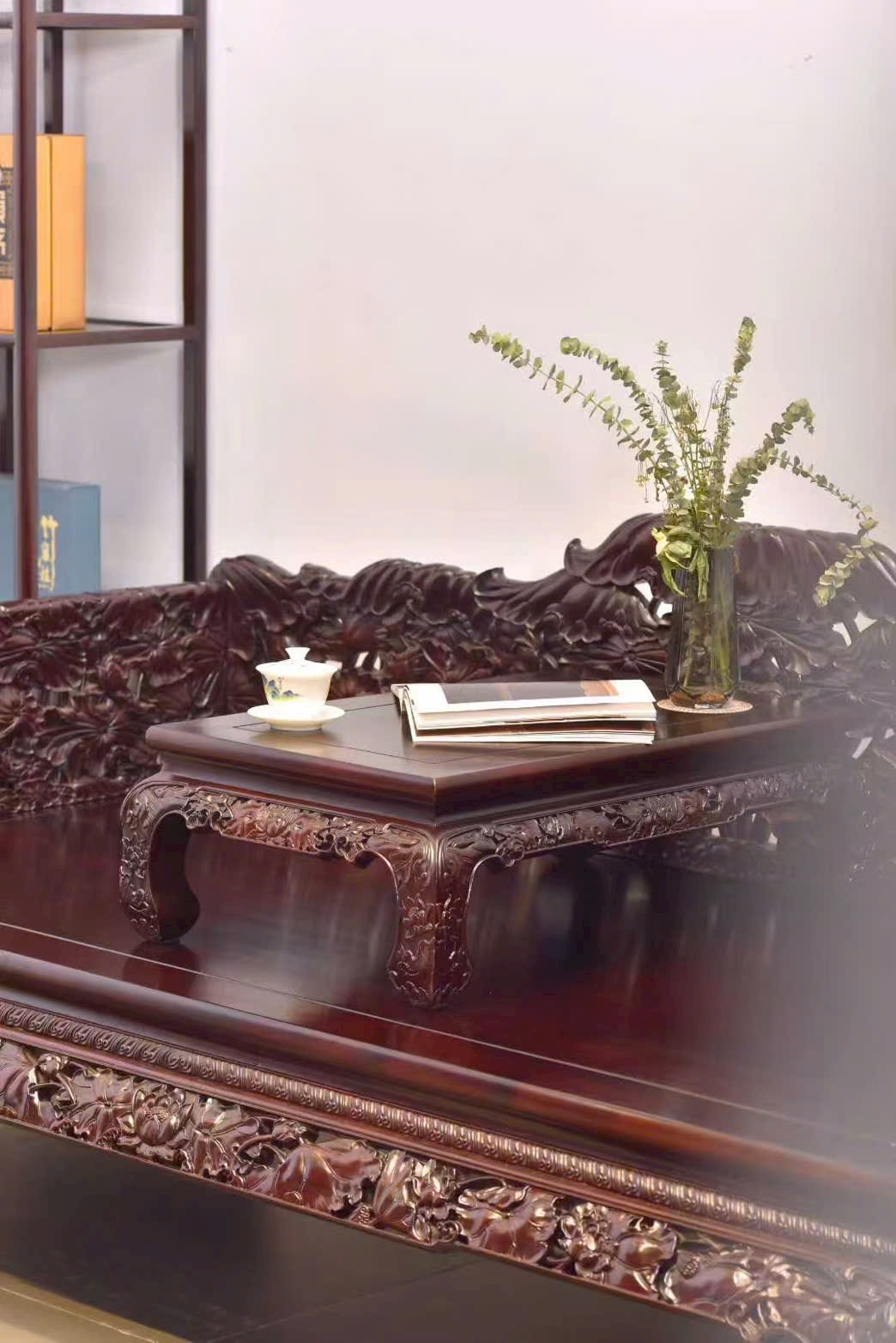 Tổng thể phong cách trầm ổn, sang trọng kín đáo mà giàu nội hàm, phù hợp phòng khách lớn, phòng trà hoặc không gian cổ điển cao cấp.