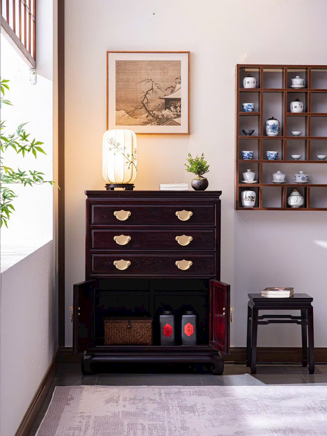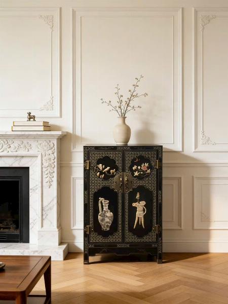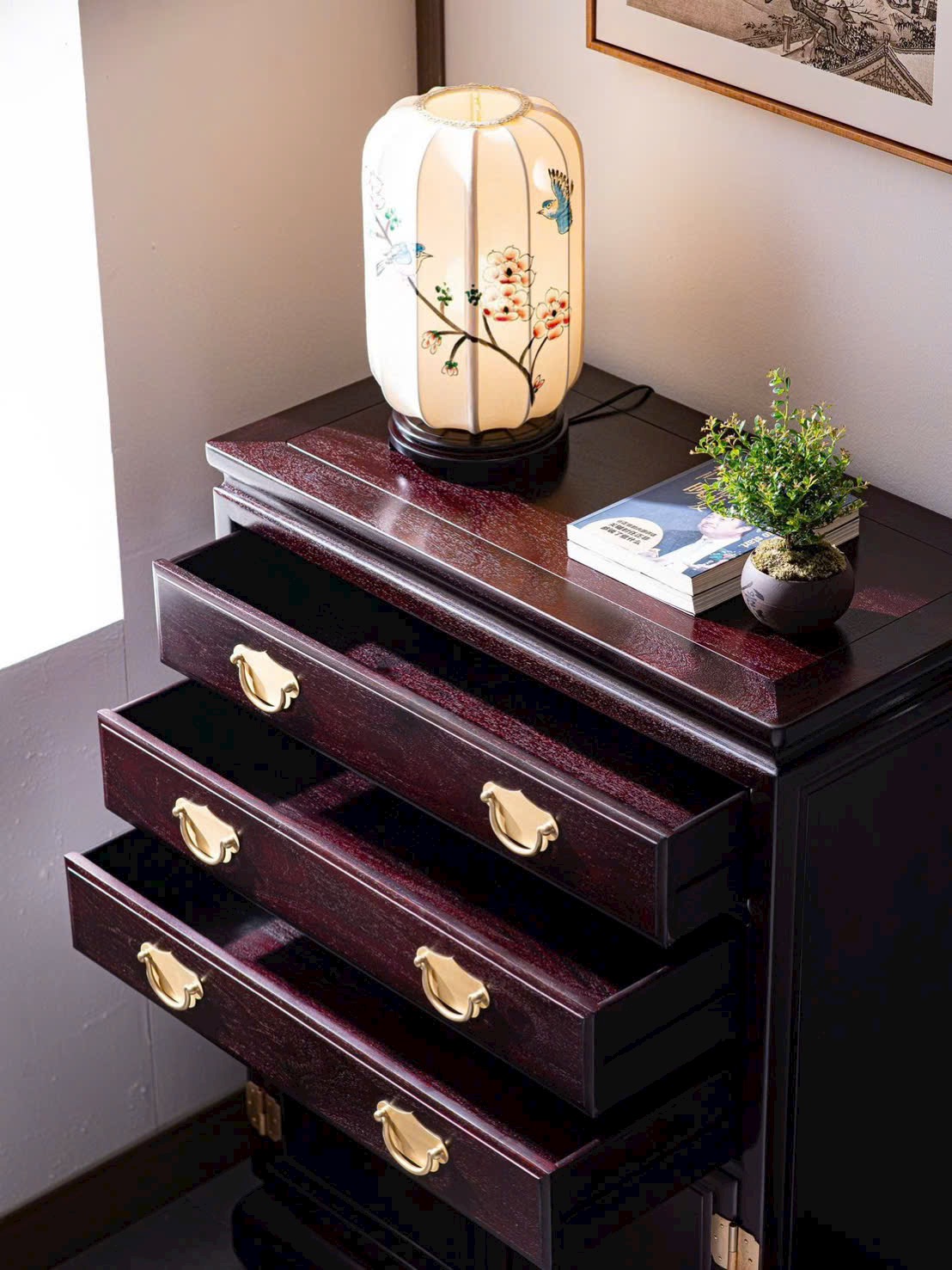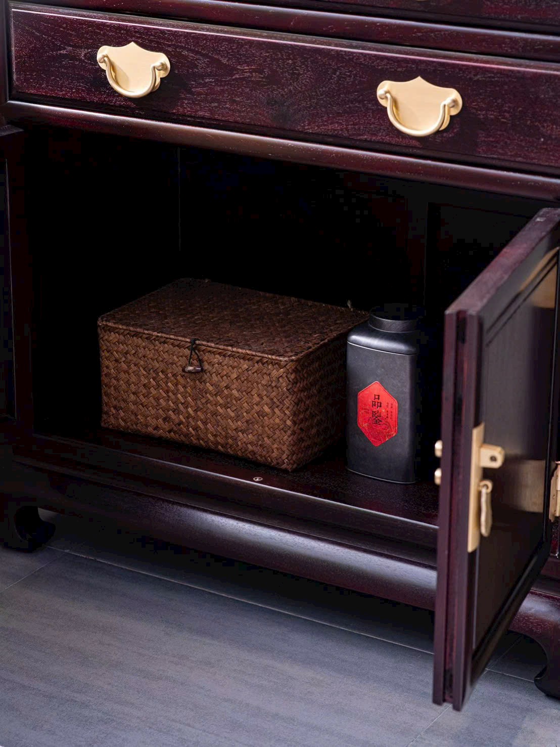 Chế tác từ tử đàn Zambia với sắc gỗ trầm ấm, vân gỗ tự nhiên rõ nét, kết cấu chắc chắn bền bỉ. Vừa đáp ứng nhu cầu lưu trữ, vừa tạo điểm nhấn thẩm mỹ mang phong vị Á Đông cho phòng khách, phòng ngủ hoặc không gian nội thất trang trọng.