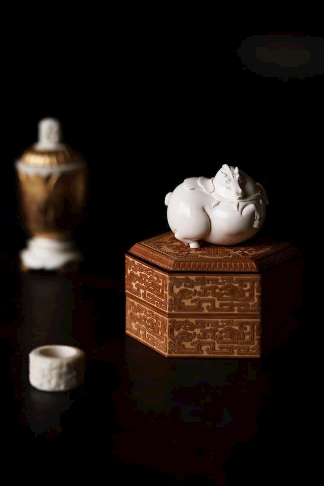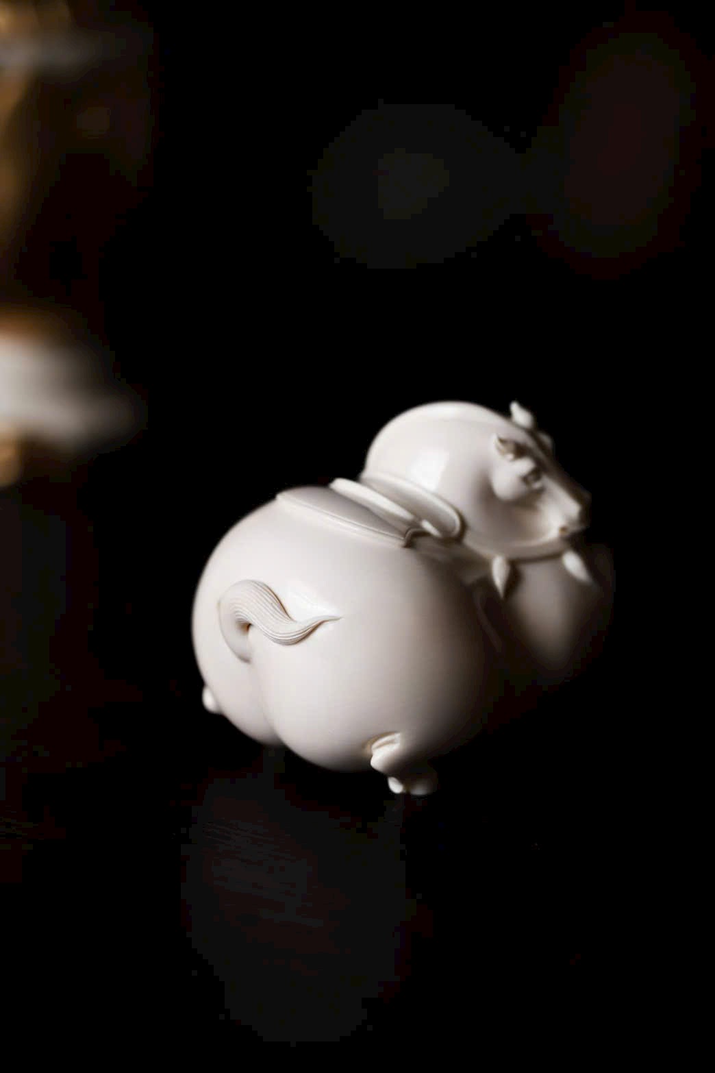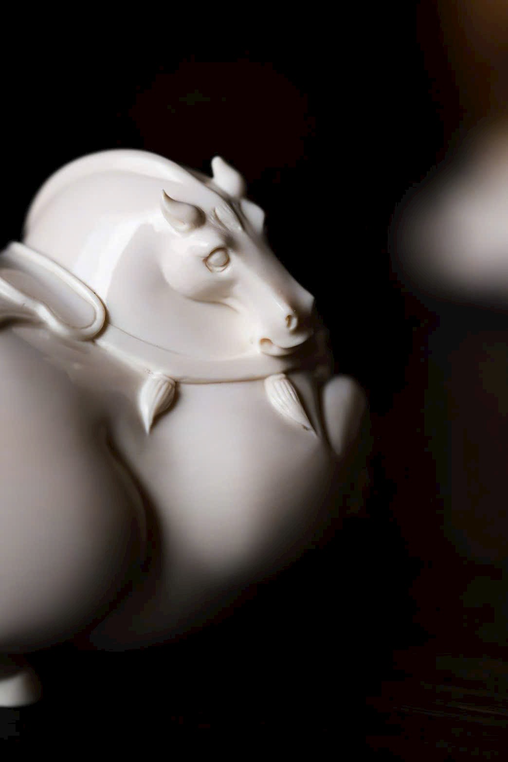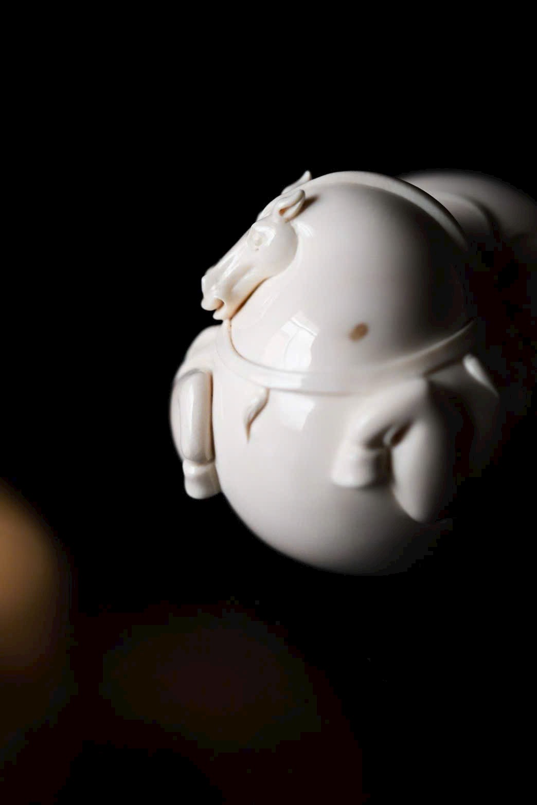 Chất ng.à bóng nhuận như mỡ đông, hình tượng tuấn mã thu chân nằm trên mây, đường nét cơ bắp tròn đầy mượt mà. Bờm ngựa tầng lớp như sóng cuộn, dáng nằm an tĩnh trên án thư, hàm ý bình an. Khi đặt tay chạm vào, cảm nhận được độ ấm mượt tinh tế.