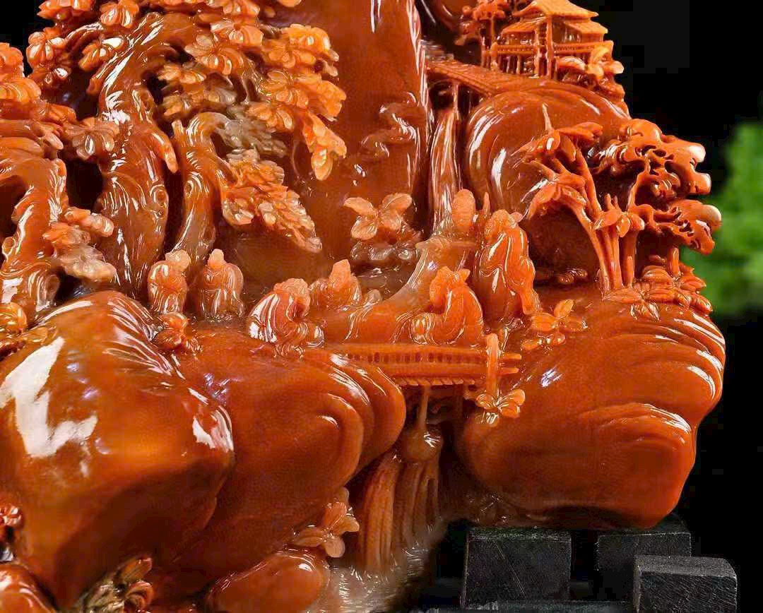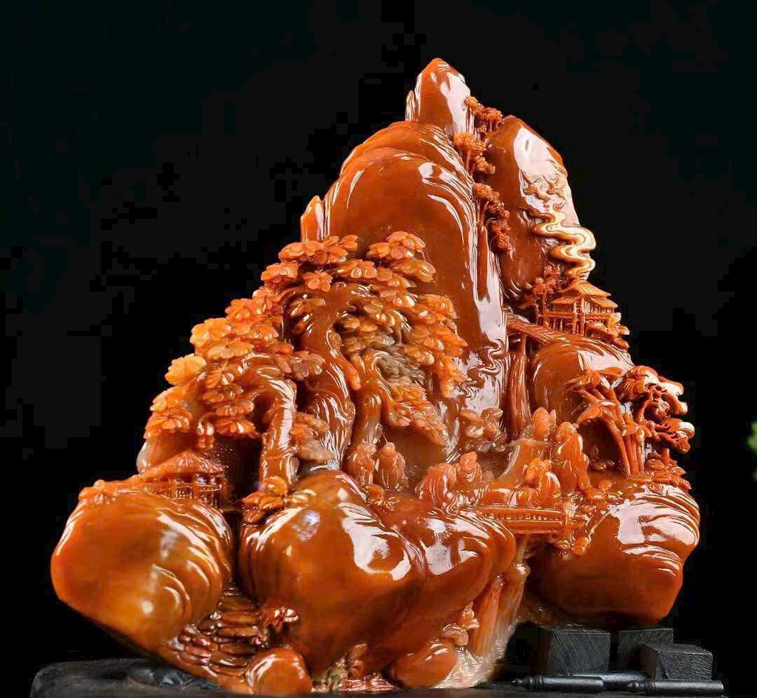 Đá Thọ Sơn tinh chất, kết tinh tuyệt hảo, chất liệu hoàn hảo, màu sắc ấm áp, tặng kèm hộp gấm cao cấp.