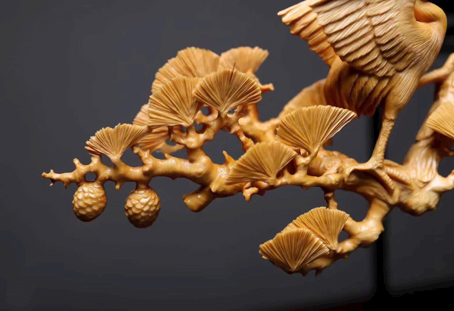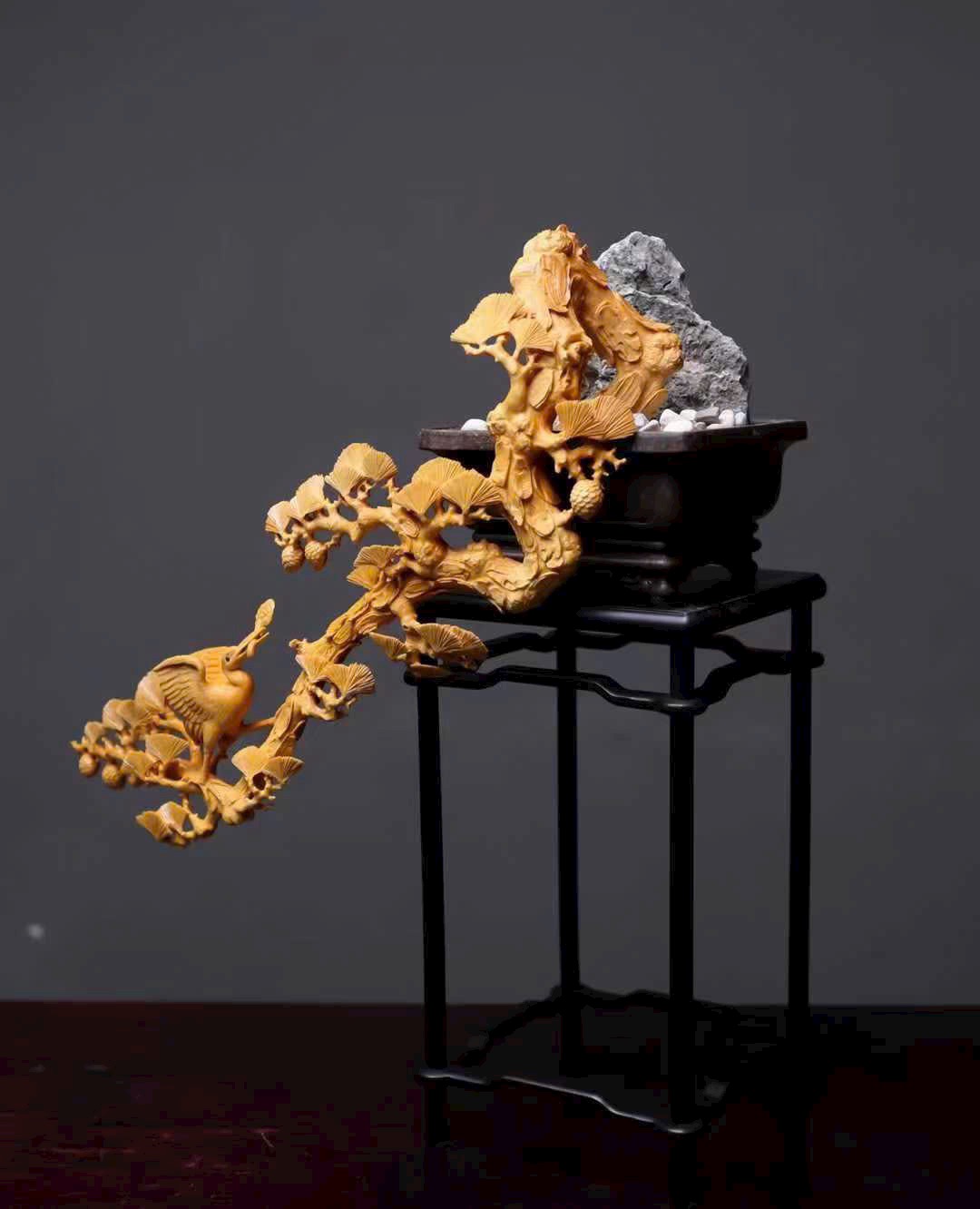 Từng đường khắc tinh vi thổi hồn vào thớ gỗ, kết tụ ý vị cổ điển “tùng hạc đồng xuân” trong một tác phẩm tinh xảo, thể hiện trọn vẹn vẻ đẹp hàm súc và sinh động của mỹ học phương Đông.