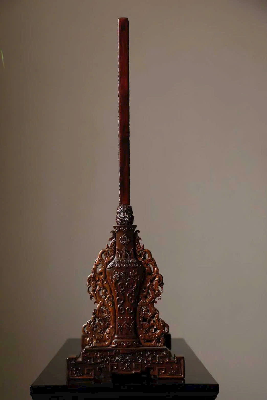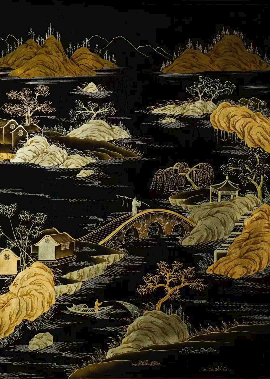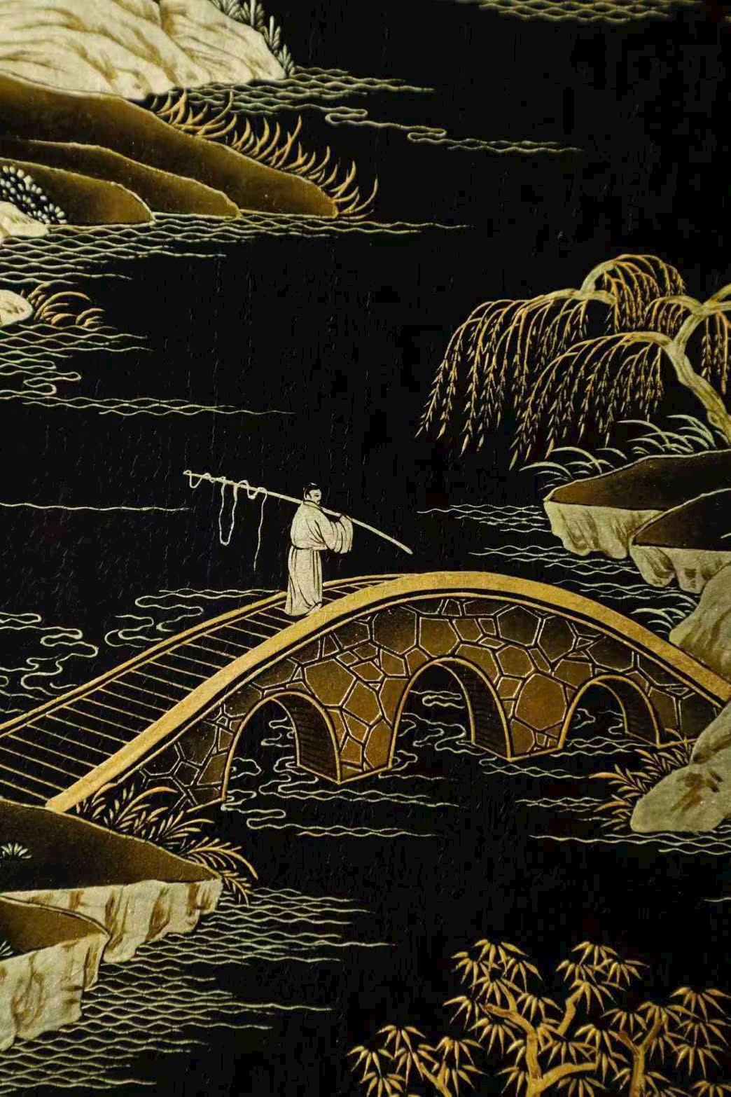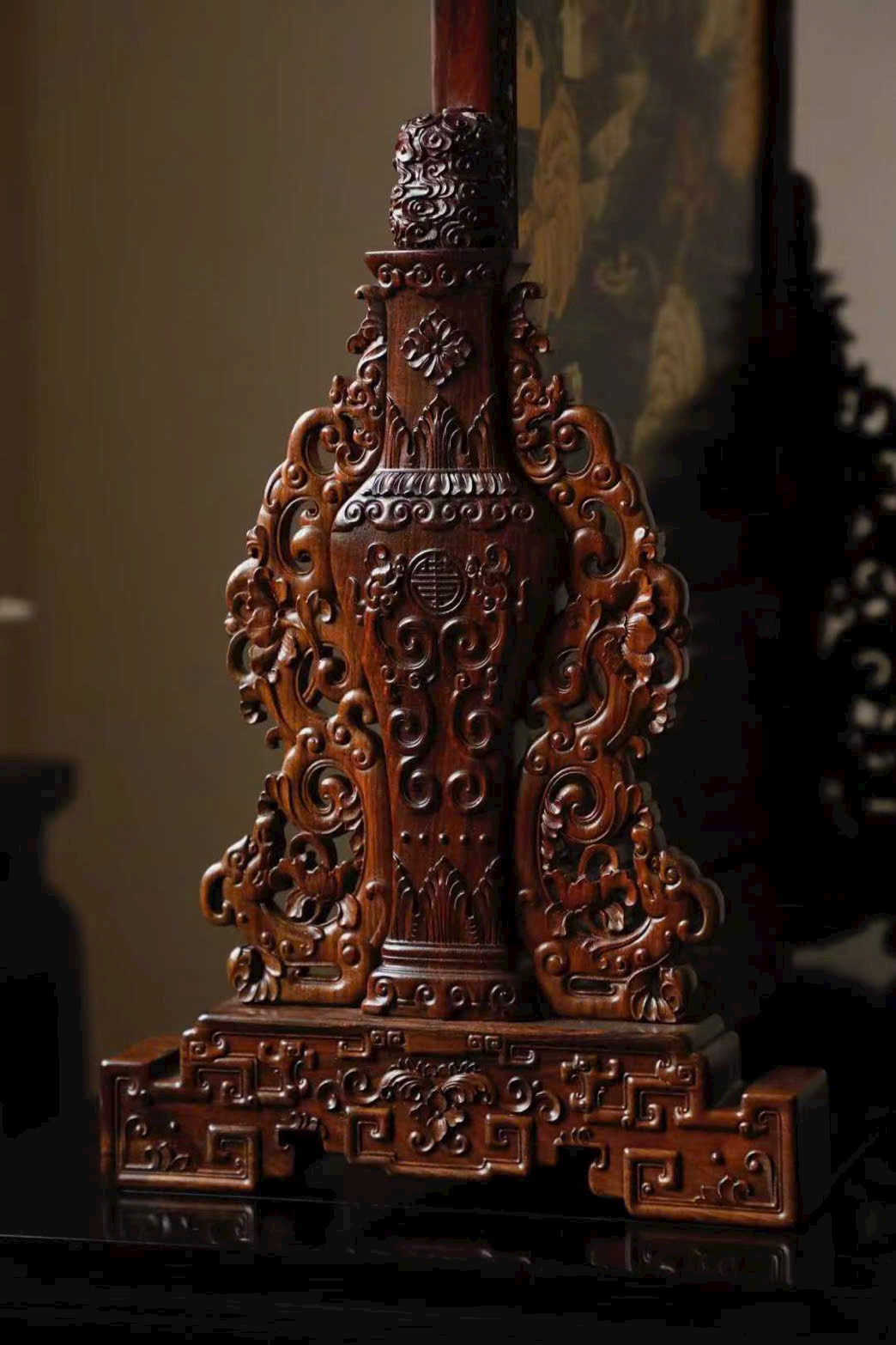 Bình phong chế tác từ gỗ trắc lão liệu, cấu trúc mộng thủ công. Trên bình phong khảm bách bảo tạo nên bức họa “Bác cổ thông kim”, nghệ thuật vẽ kim tuyến miêu tả cảnh “hải thị thận lâu”, toàn khí toát lên vẻ cổ nhã thanh lệ. Phù hợp bày nơi án thư gian giữa, ngắm nhìn tựa cổ vật cung đình, làm dịu tâm trí.