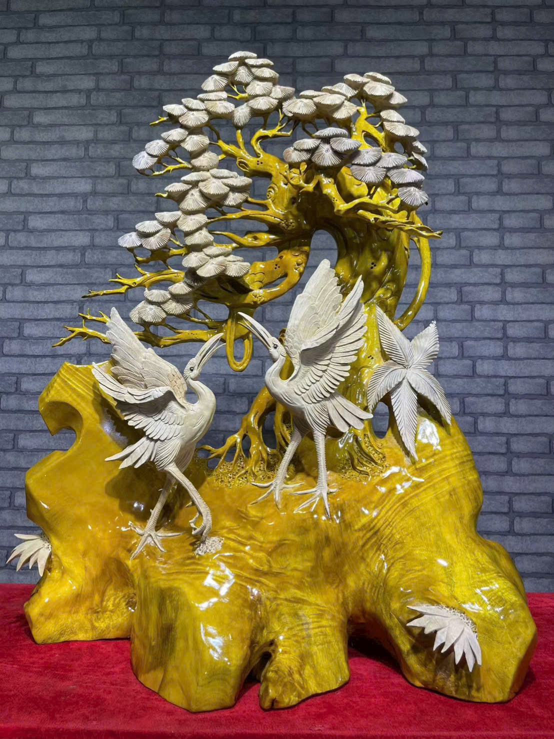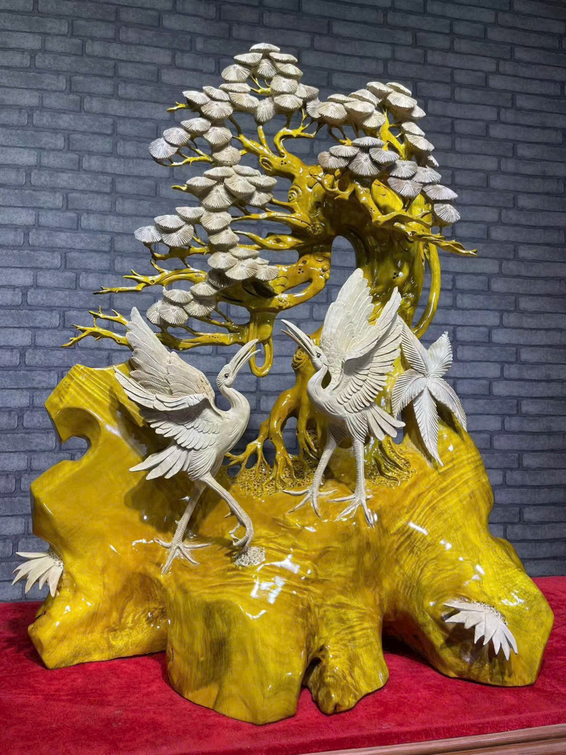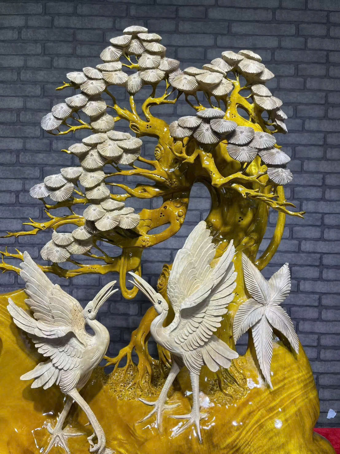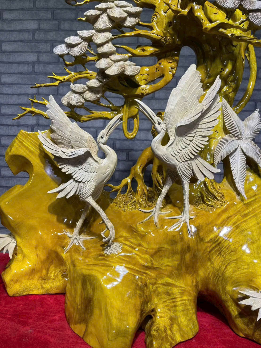 【Giới thiệu】 Tác phẩm được chạm khắc nguyên khối từ đại liệu, tuyển chọn chất gỗ thượng hạng, vân sóng nước cực phẩm nổi bật, chế tác tinh công tỉ mỉ. Hình tượng tùng – hạc mang ý nghĩa trường thọ, phúc lộc và an khang, biểu trưng cho tuổi thọ bền lâu, gia đạo bình an.