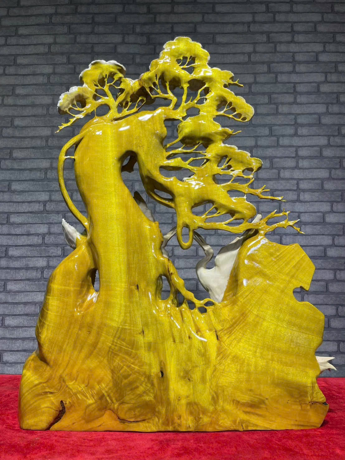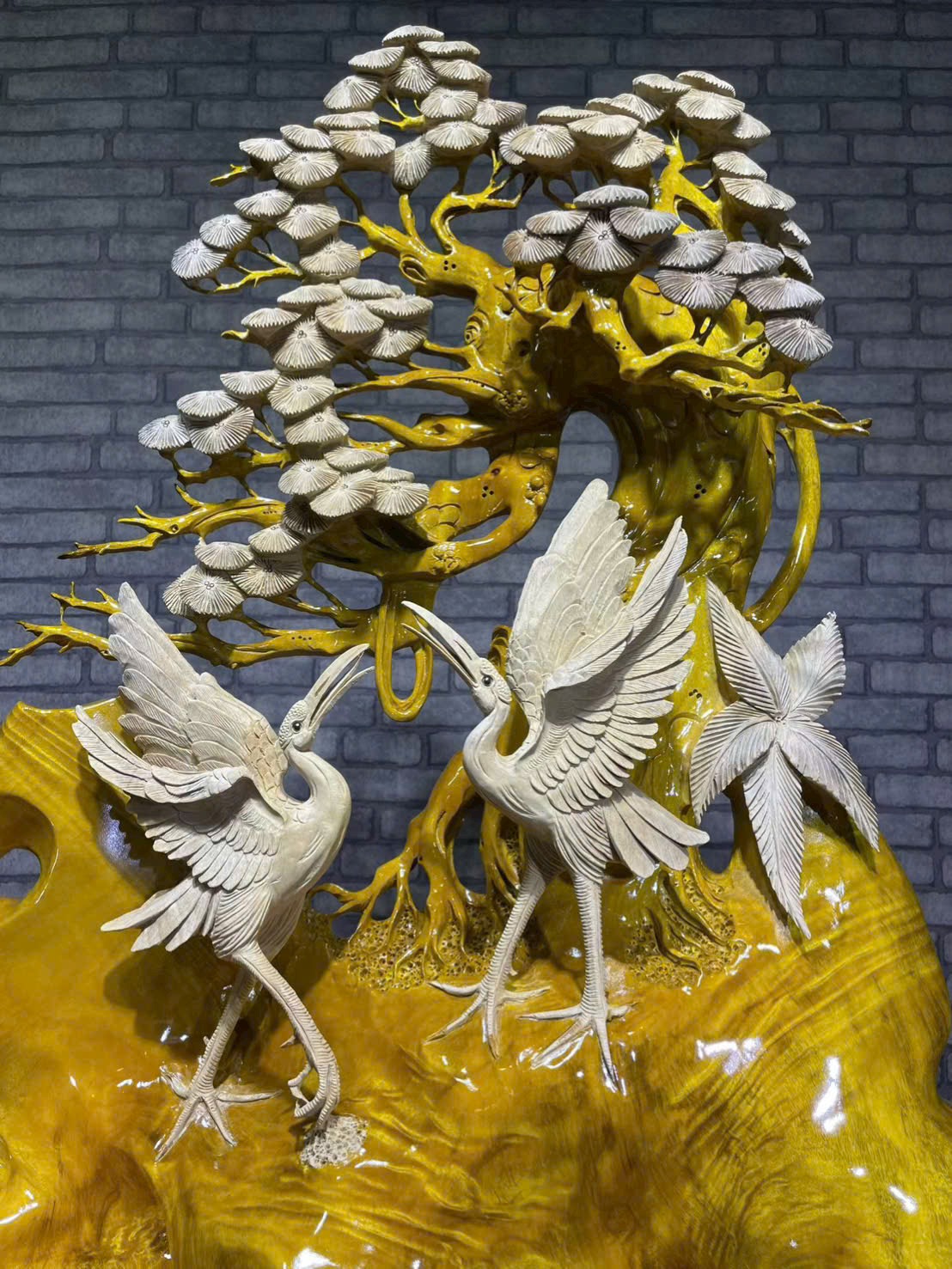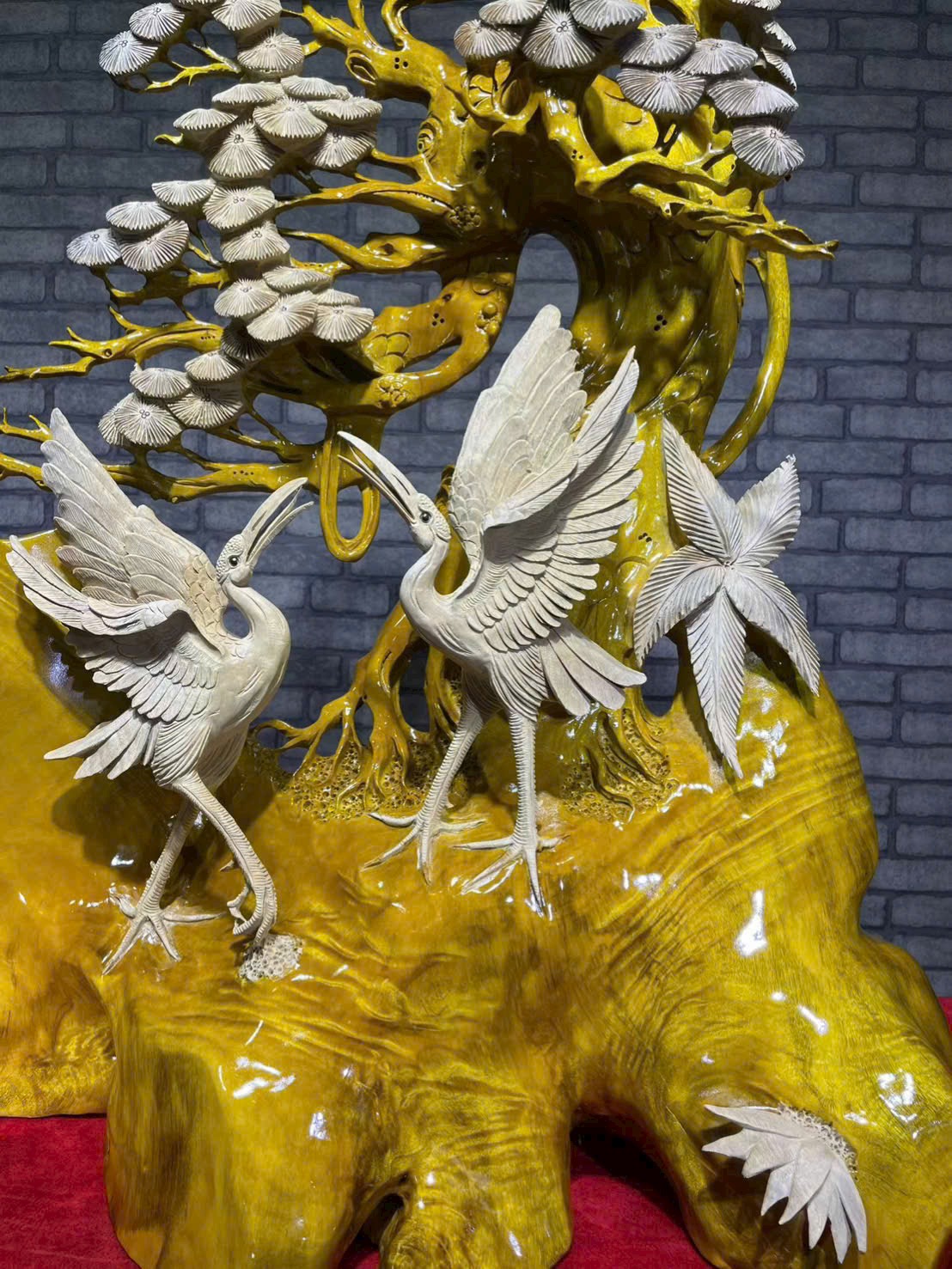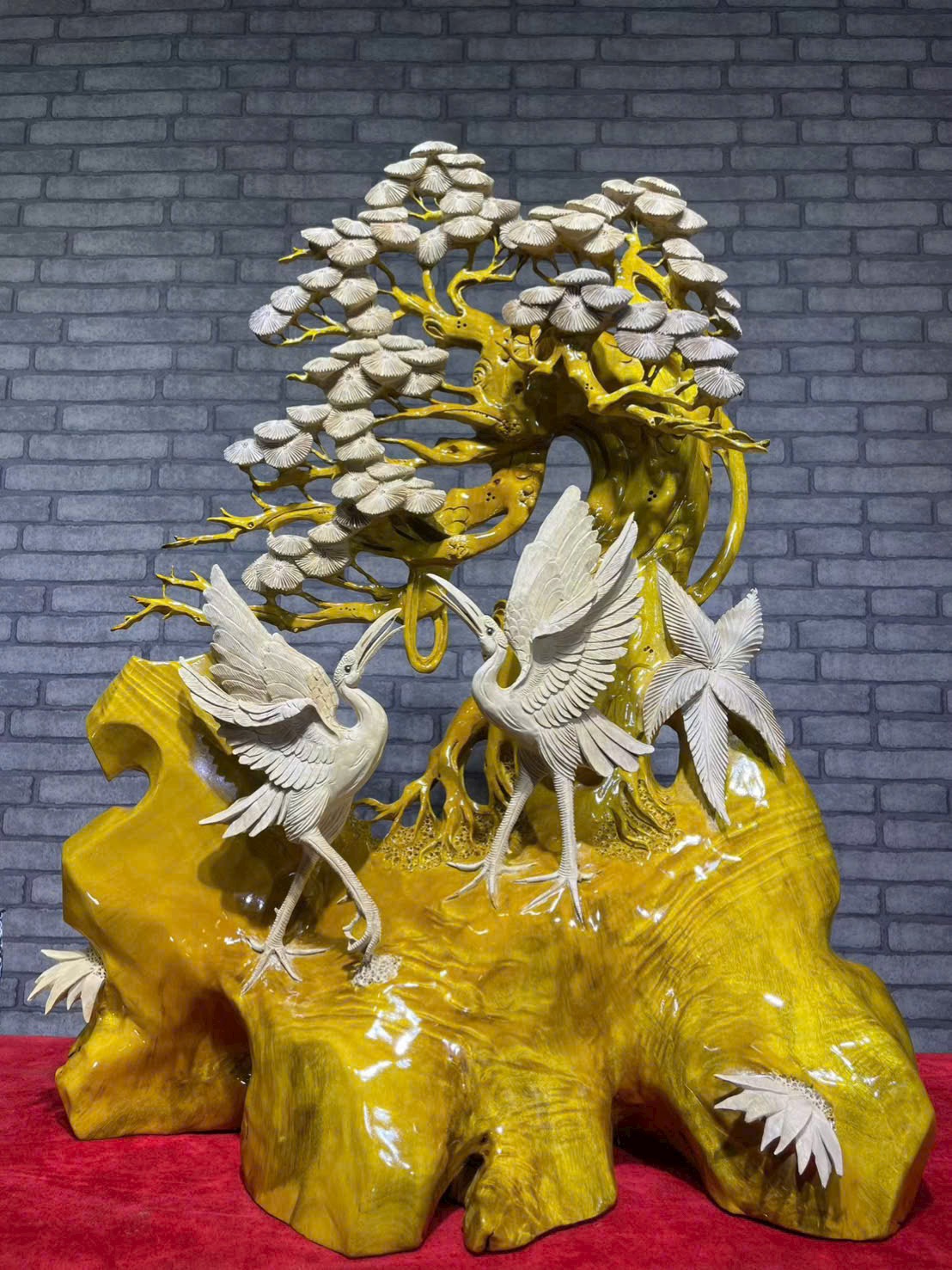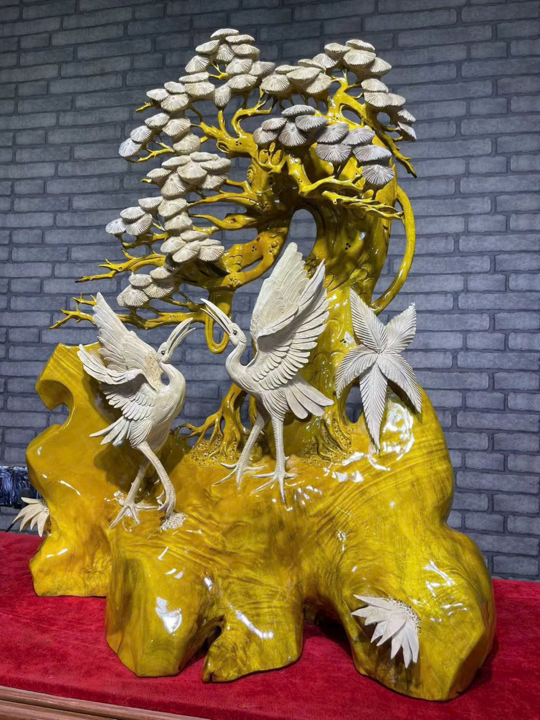 【Giới thiệu】 Tác phẩm được chạm khắc nguyên khối từ đại liệu, tuyển chọn chất gỗ thượng hạng, vân sóng nước cực phẩm nổi bật, chế tác tinh công tỉ mỉ. Hình tượng tùng – hạc mang ý nghĩa trường thọ, phúc lộc và an khang, biểu trưng cho tuổi thọ bền lâu, gia đạo bình an.