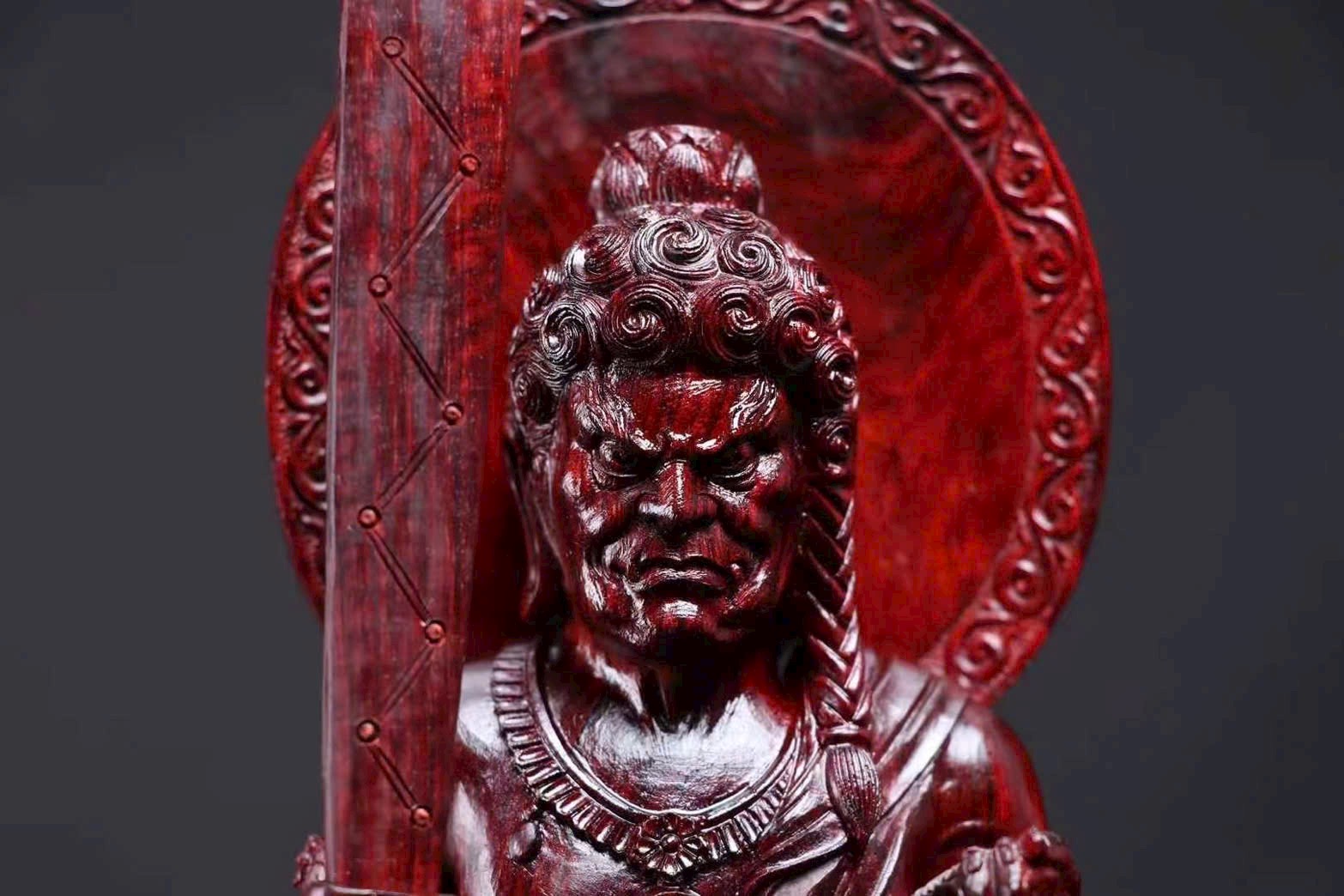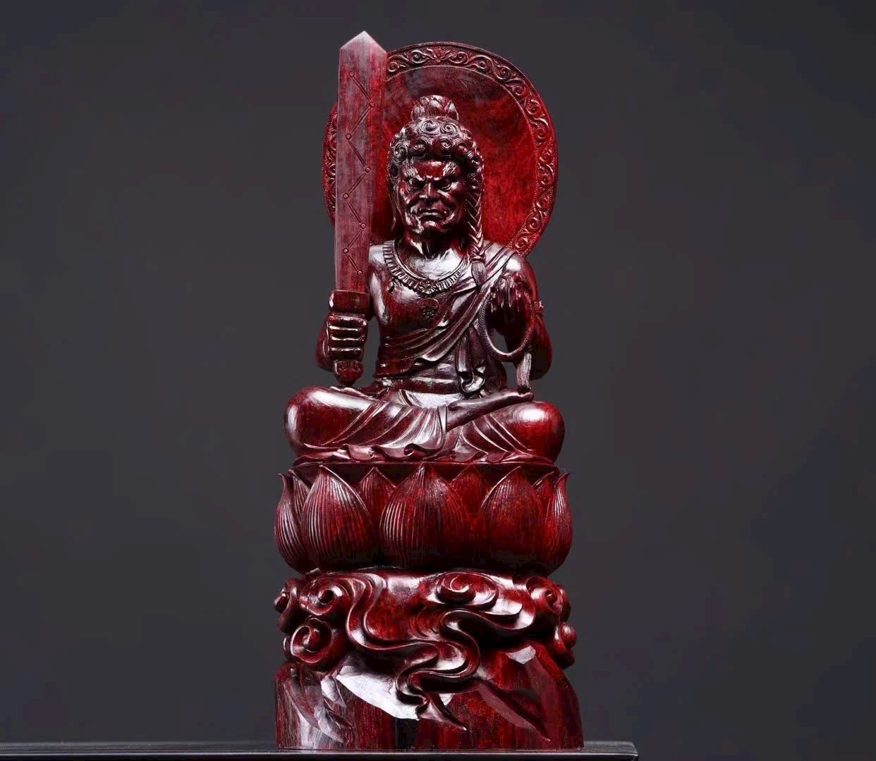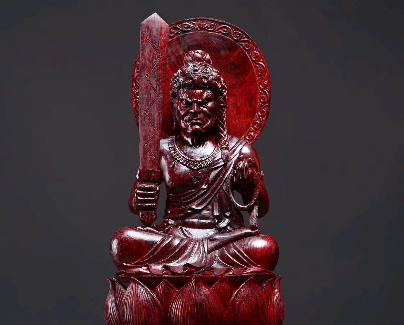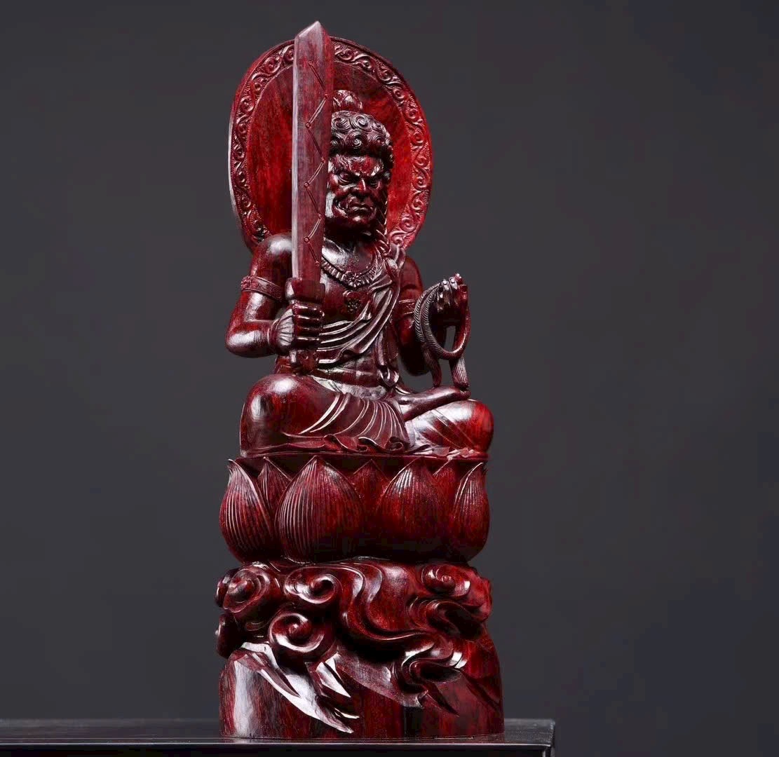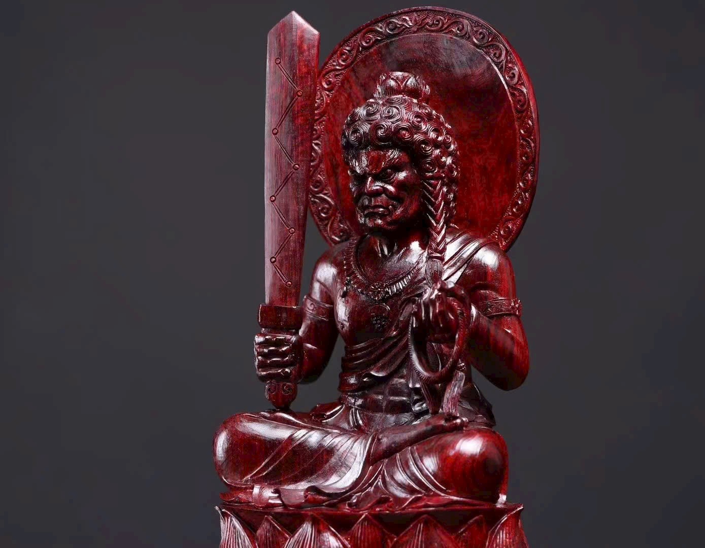 Tượng Bất Động Minh Vương – thần thái uy nghiêm, ánh mắt sắc bén, tượng trưng cho trí tuệ, trấn tà, hộ pháp.