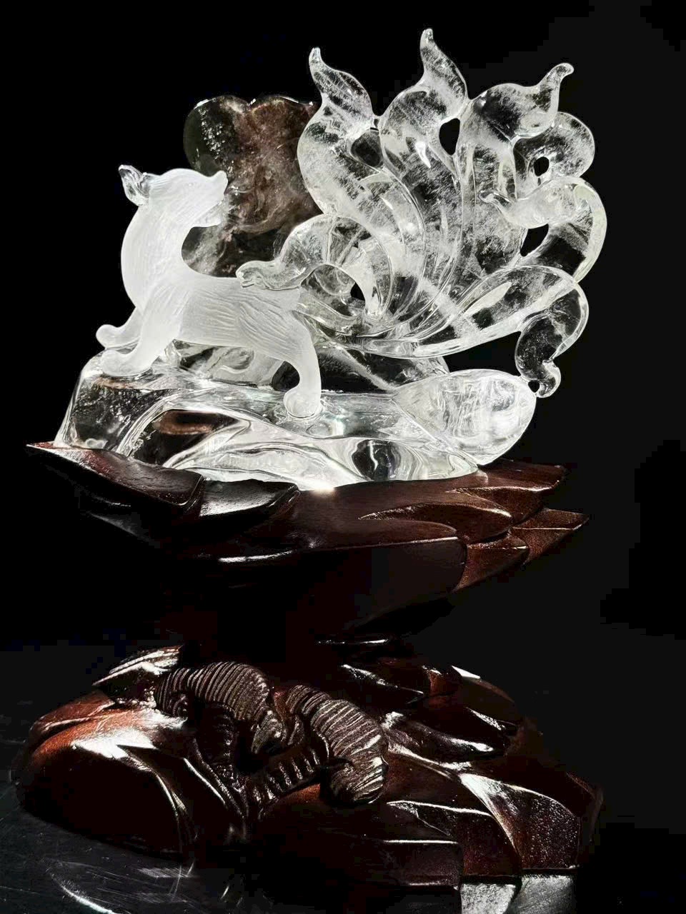Tượng Cửu Vĩ Hồ bằng thạch anh trắng thiên nhiên có linh khí lục u linh.