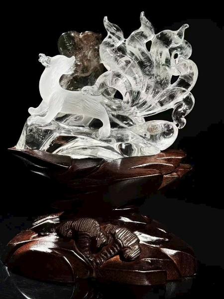 Tượng Cửu Vĩ Hồ bằng thạch anh trắng thiên nhiên có linh khí lục u linh.