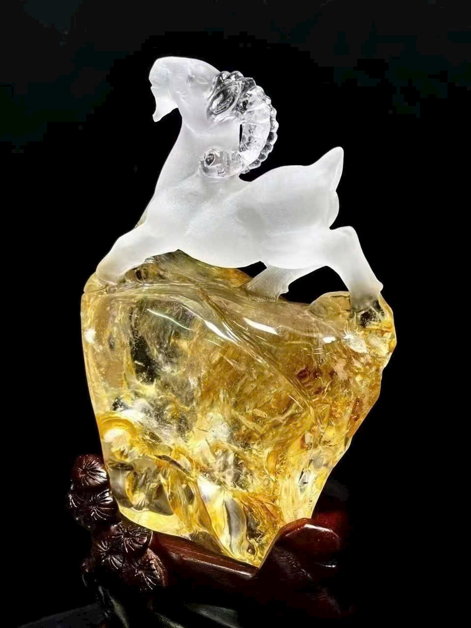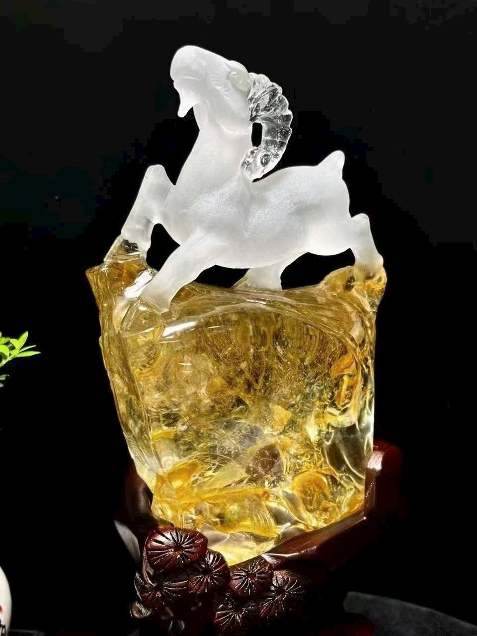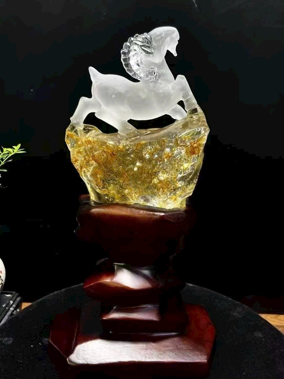 Tượng dê phong thủy – thạch anh trắng hoa vàng tự nhiên ✨