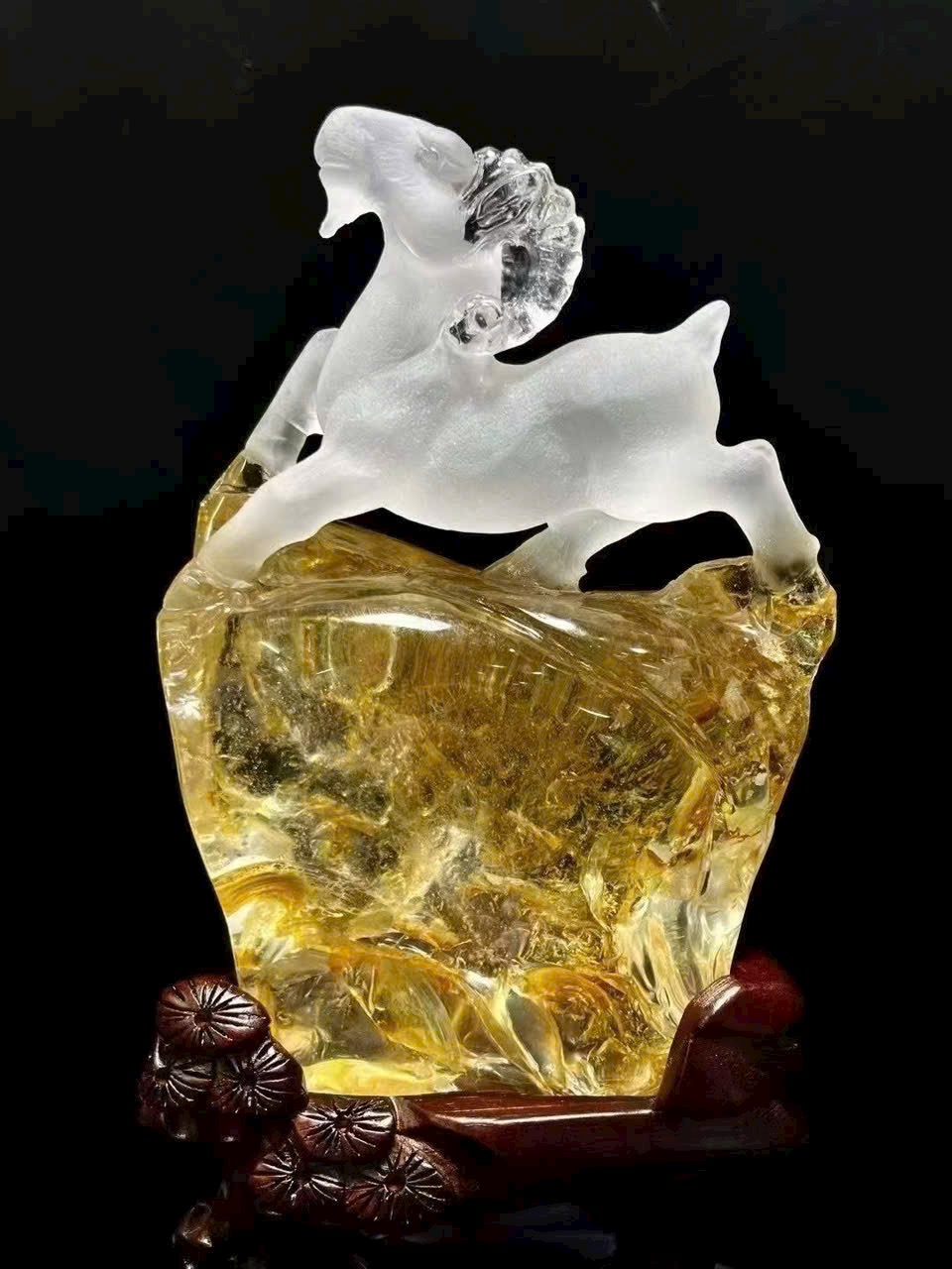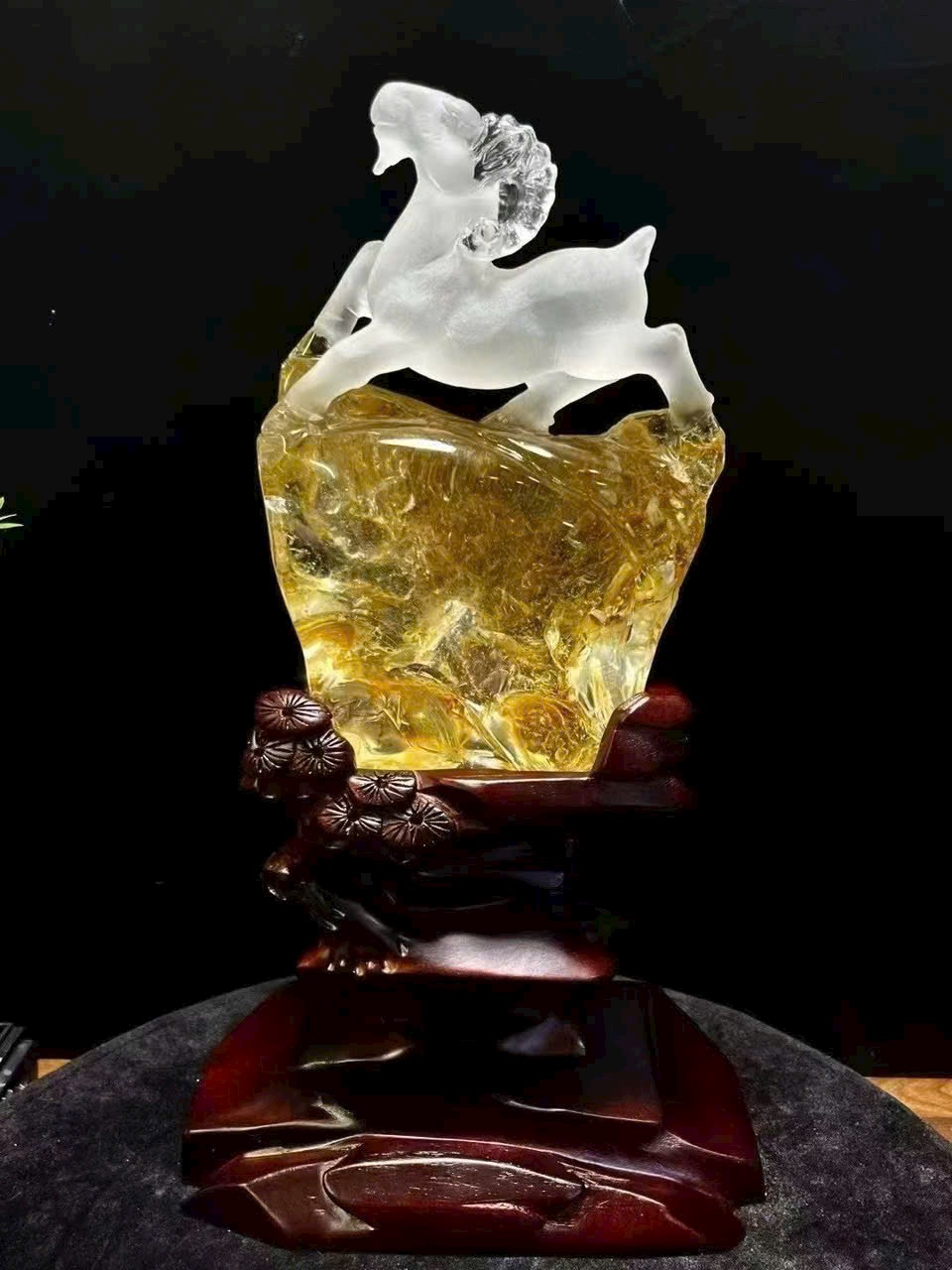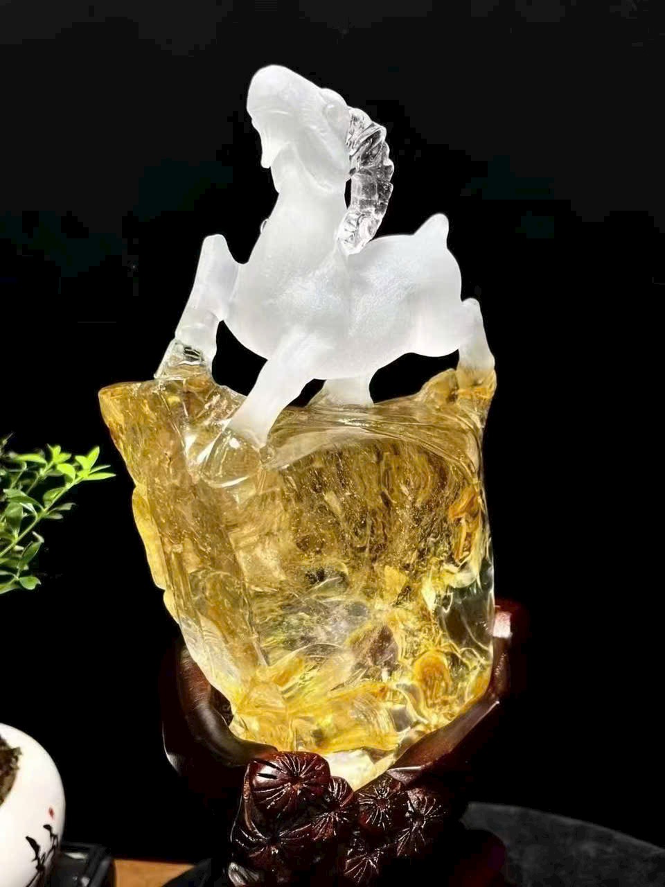 Tượng dê phong thủy – thạch anh trắng hoa vàng tự nhiên ✨