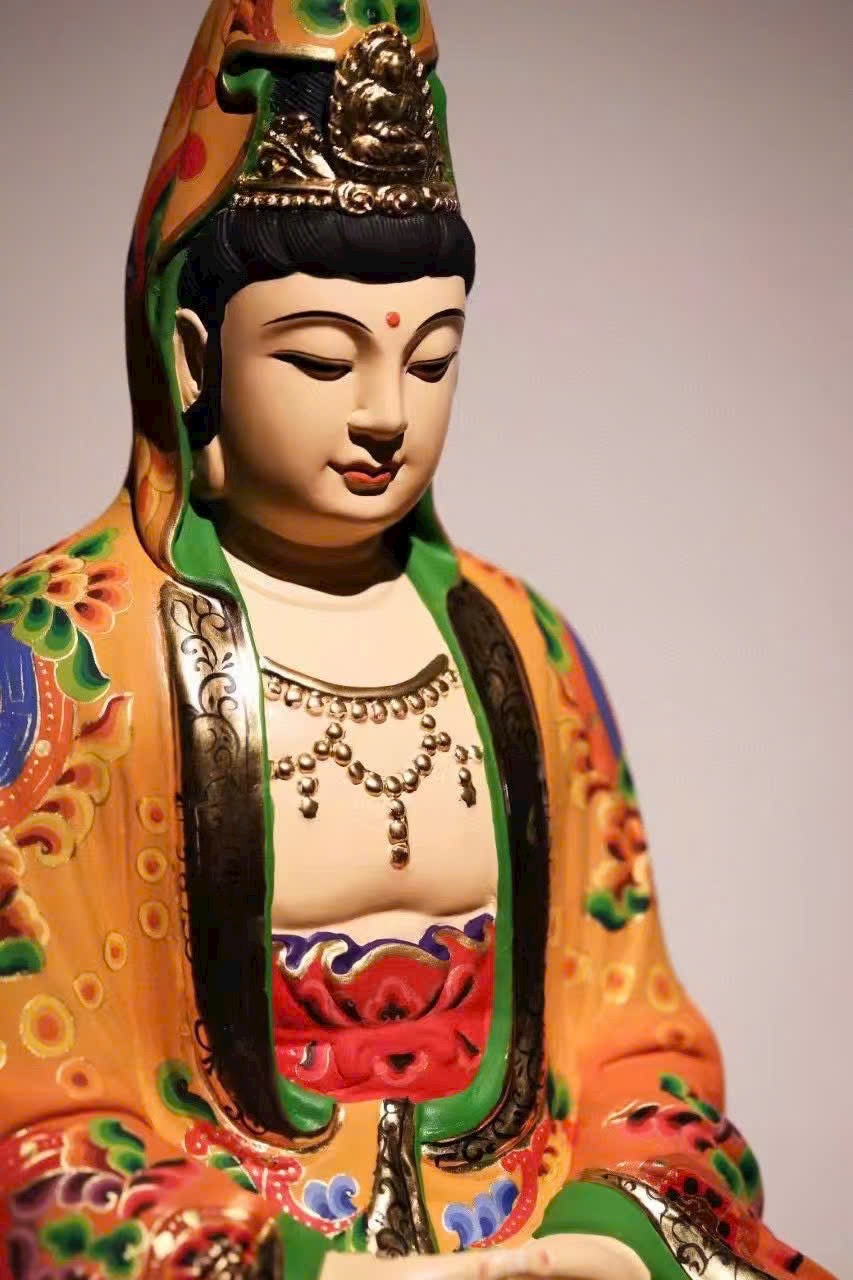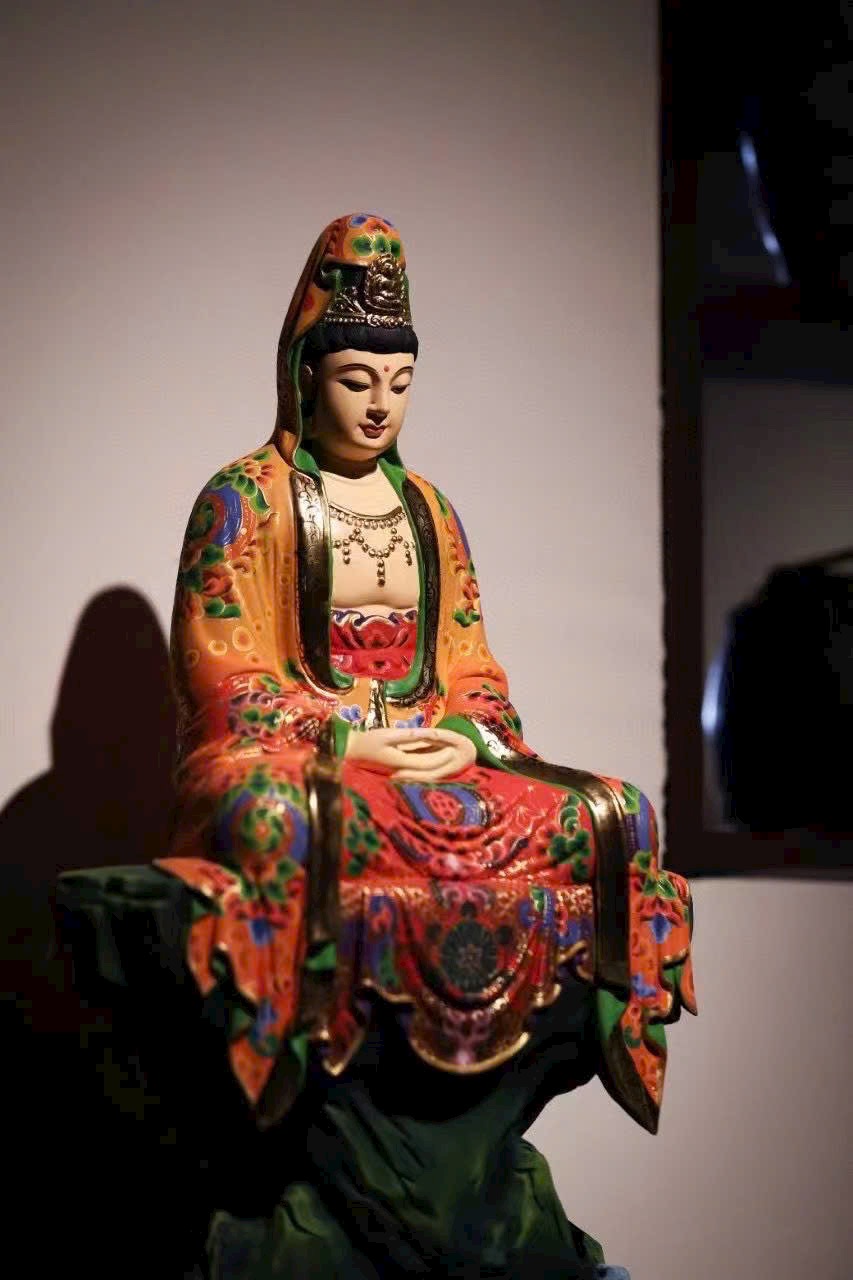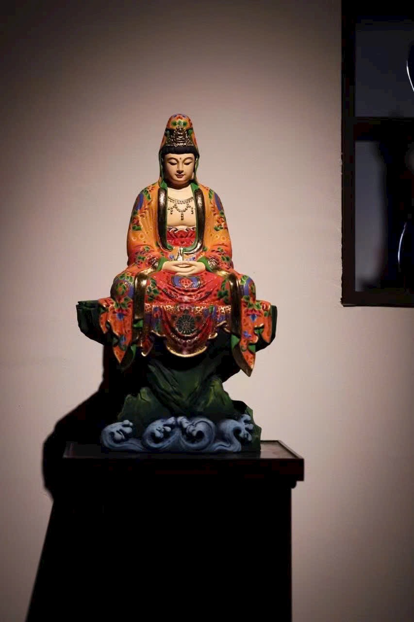 Tượng Quan Âm|Gỗ chương mộc vẽ gấm thủ công
