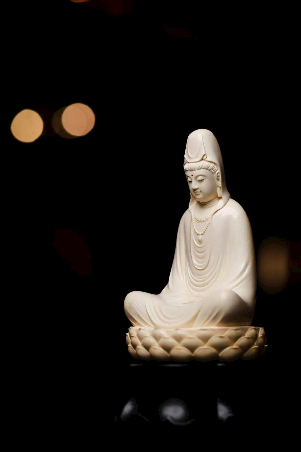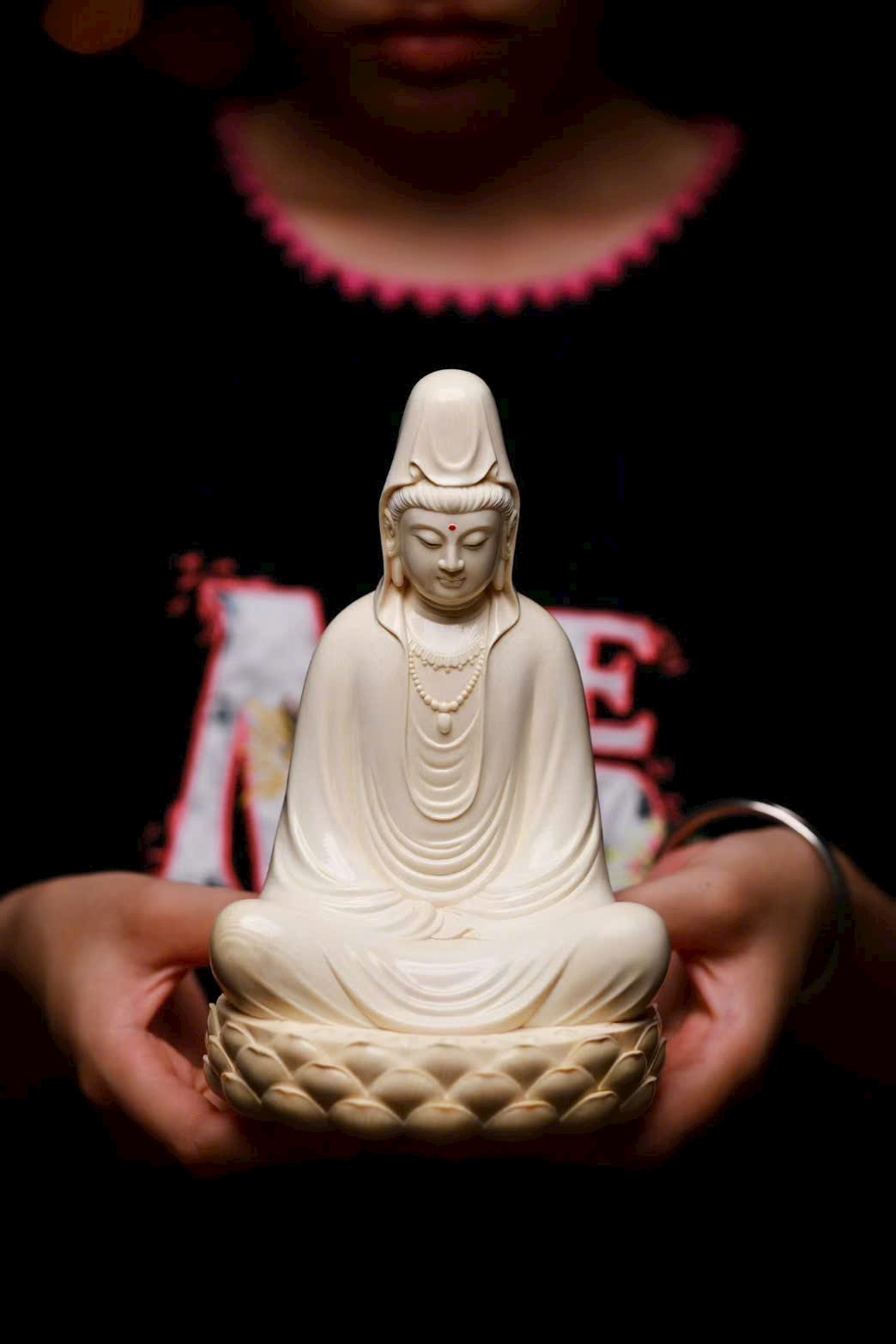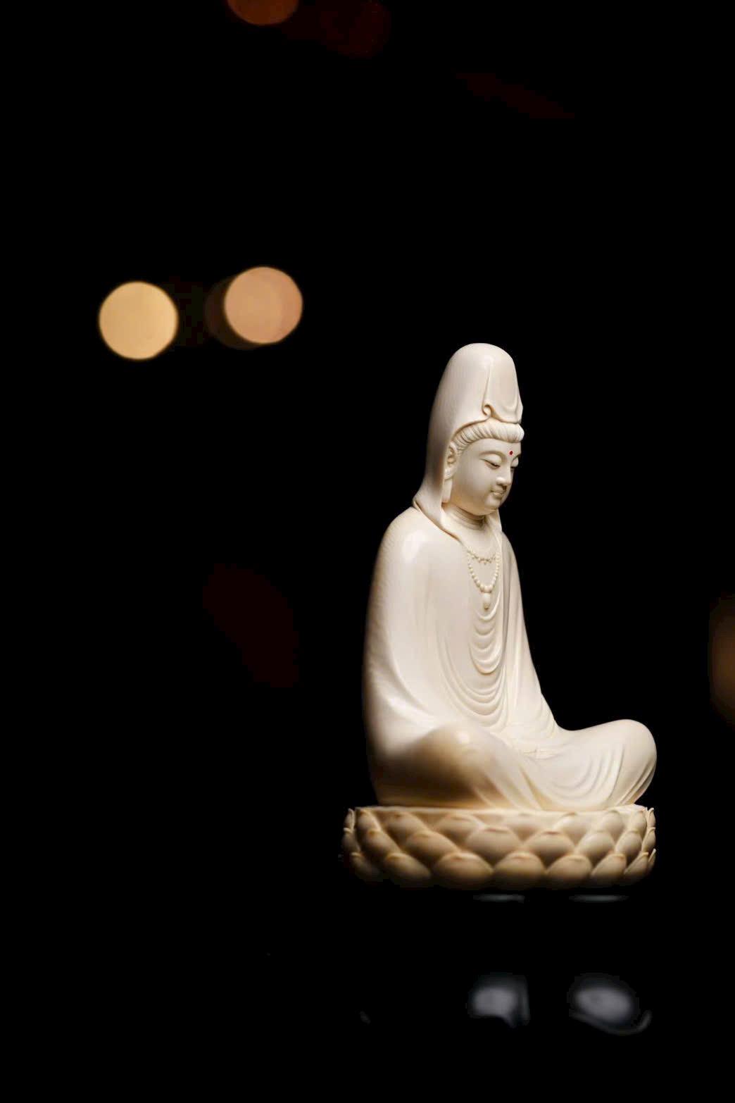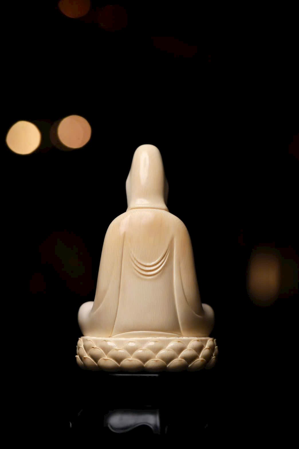 Ngà bóng như ngọc, chạm khắc toàn phẩm chuẩn chỉnh. Gương mặt hiền hòa, pháp tướng tự tại – thích hợp an trí bàn thờ, kệ thiền, mang lại cảm giác an yên tĩnh tại.
