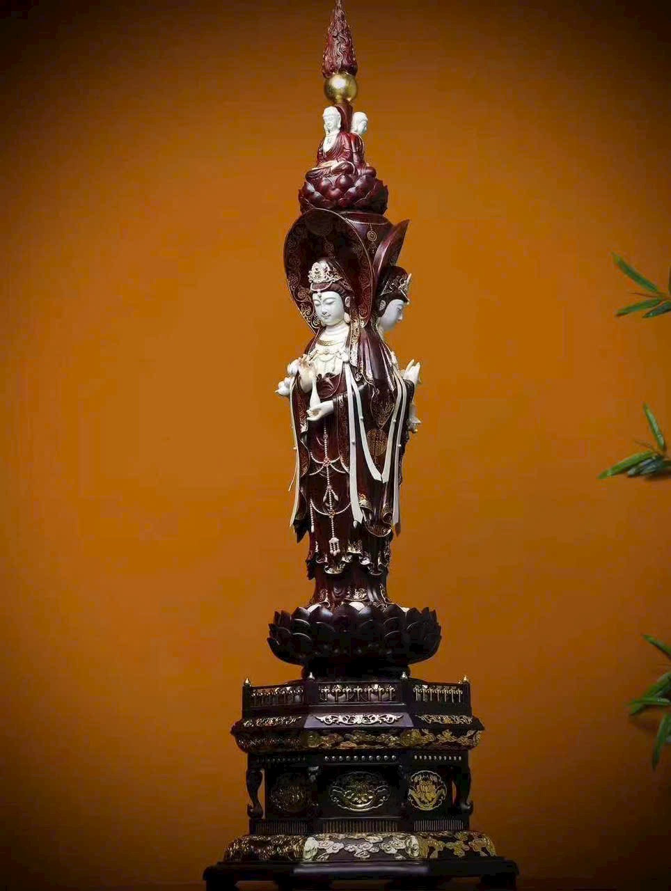 🌿 Tượng Quan Âm Tam Diện | Tử đàn lá nhỏ × n.gà voi manut vạn năm tuổi