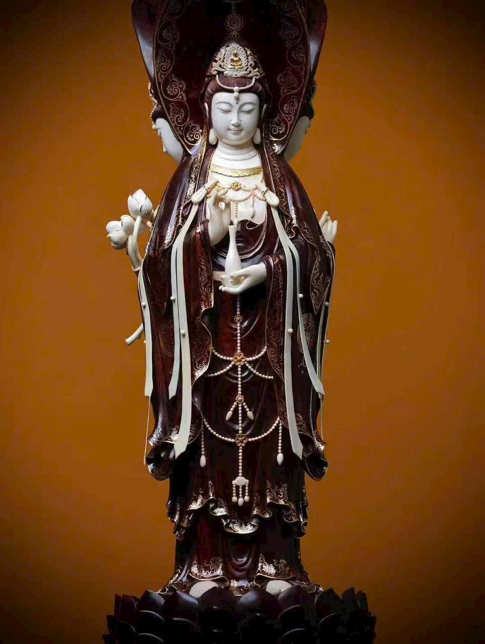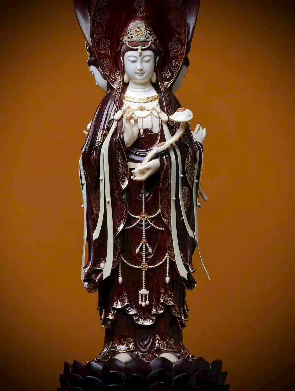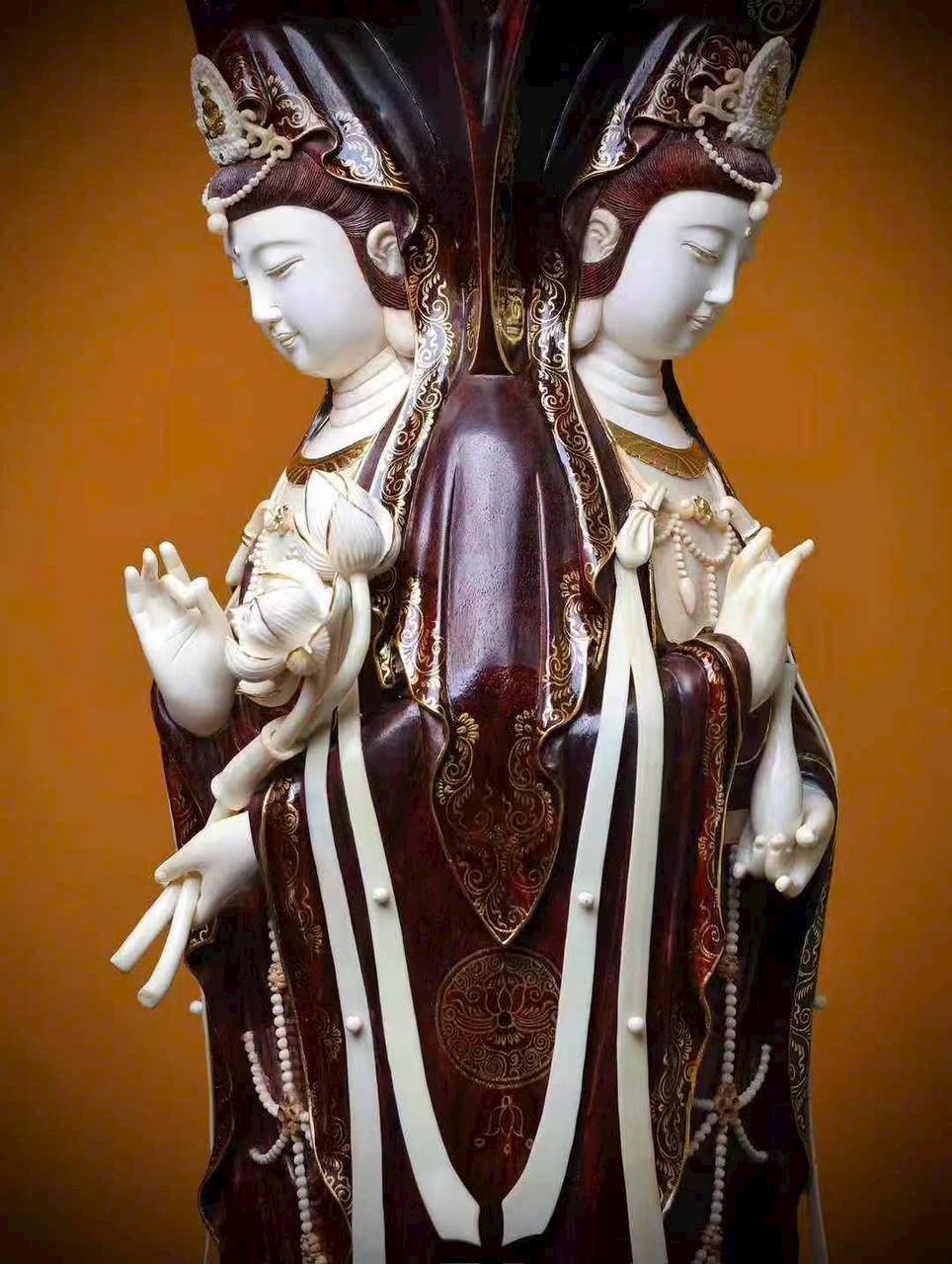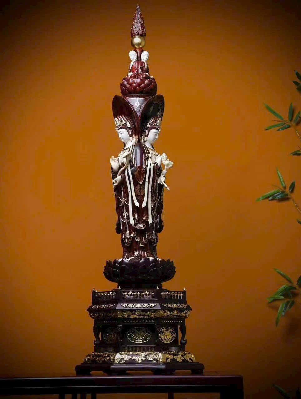 🌿 Tượng Quan Âm Tam Diện | Tử đàn lá nhỏ × n.gà voi manut vạn năm tuổi