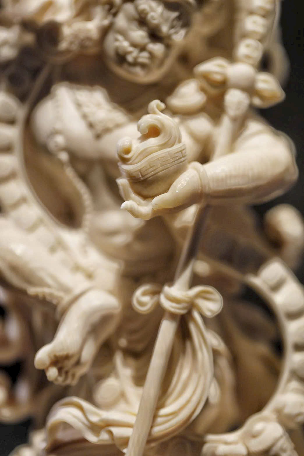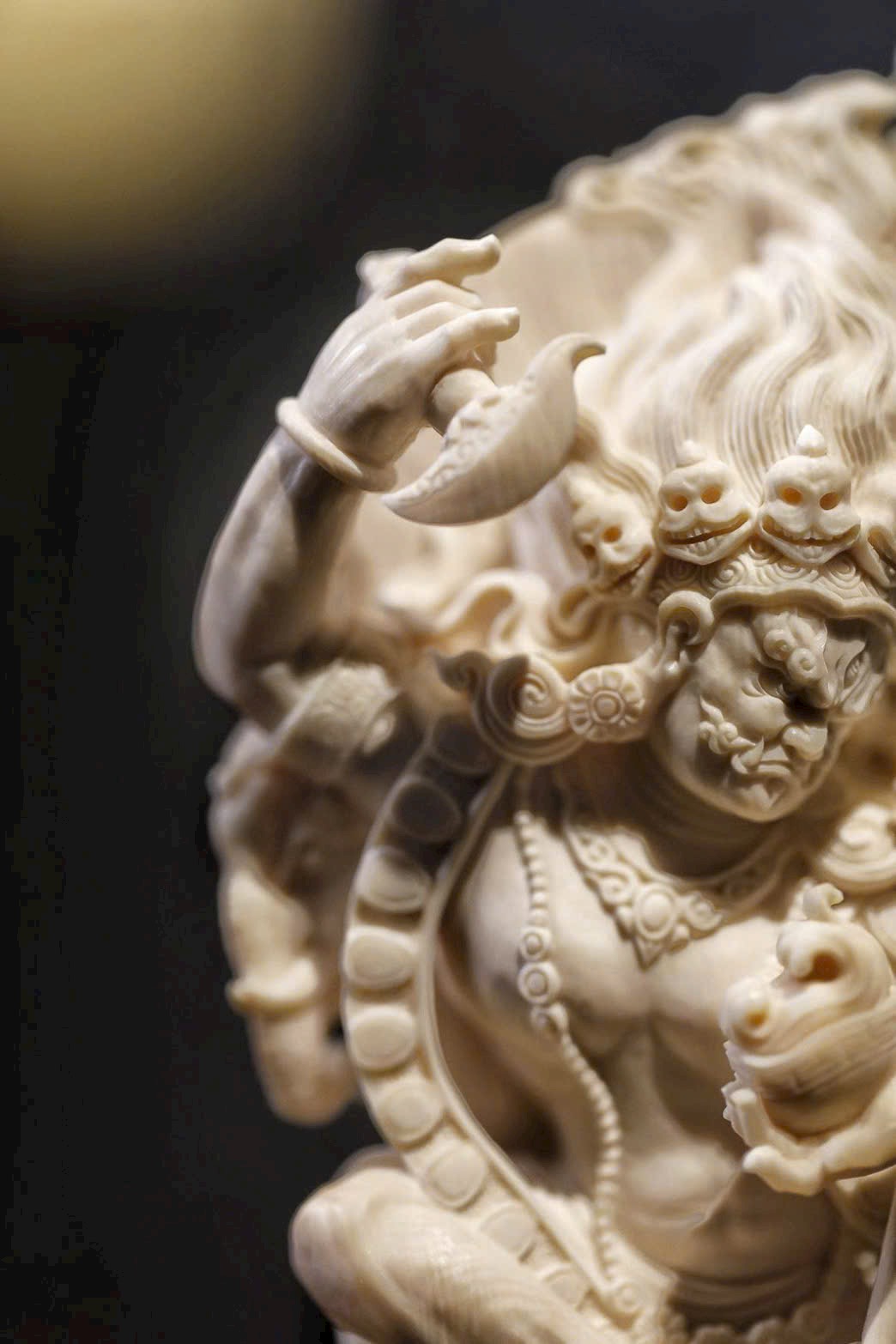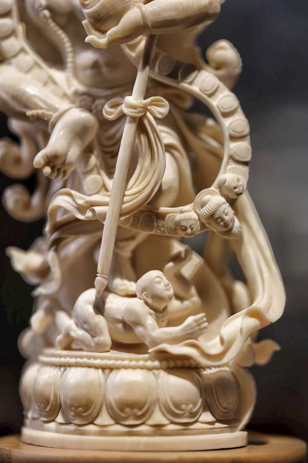 Chất ngà ma mút trong sáng mịn màng, kỹ pháp phức tạp, trọn vẹn thể hiện oai tướng phẫn nộ mà từ bi.