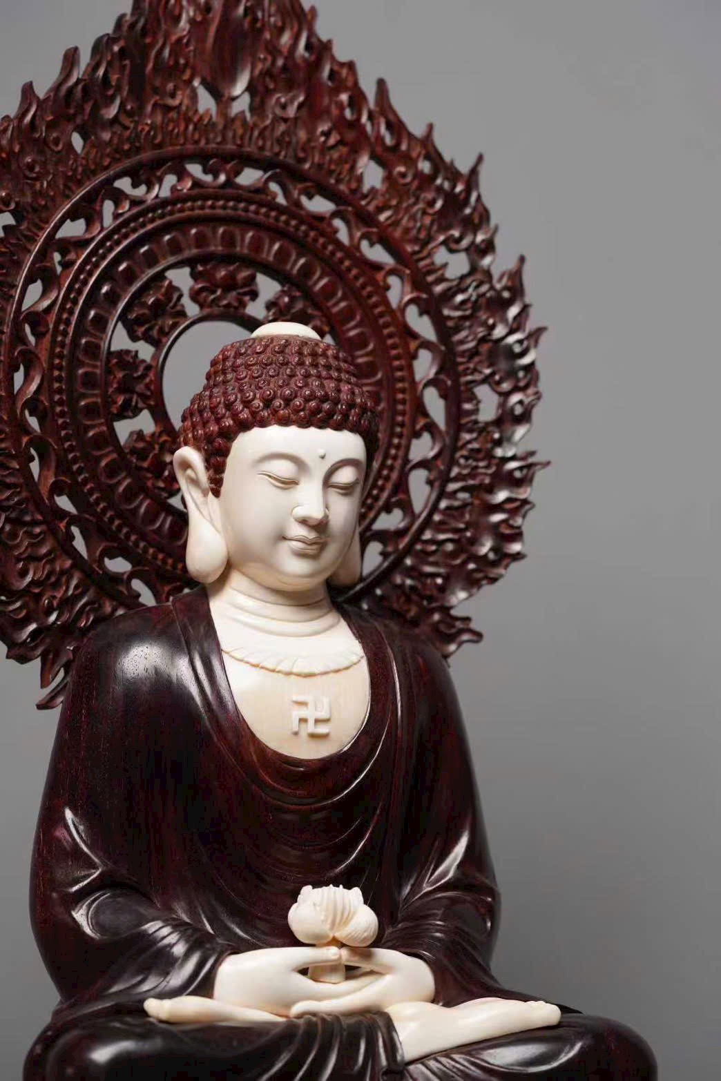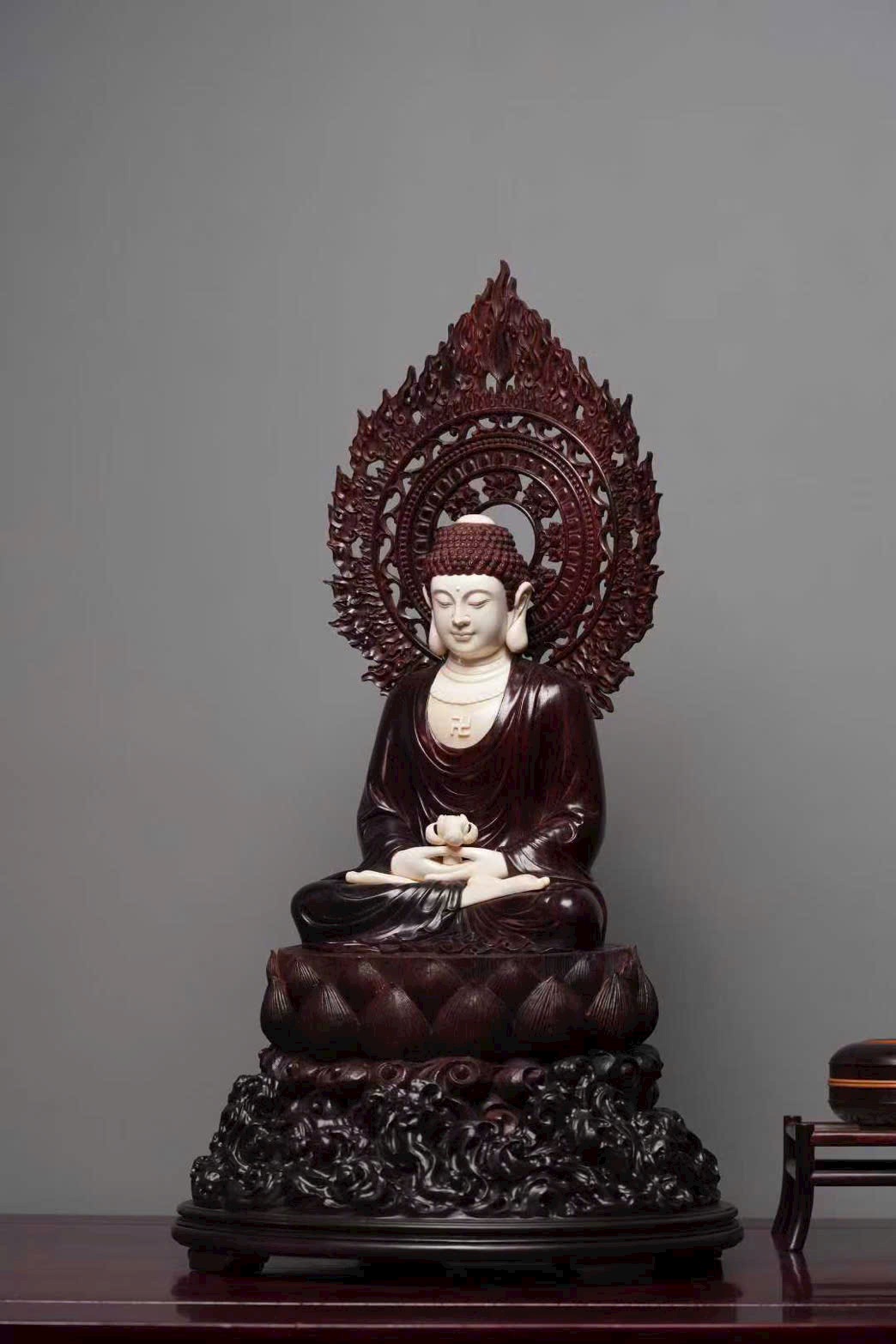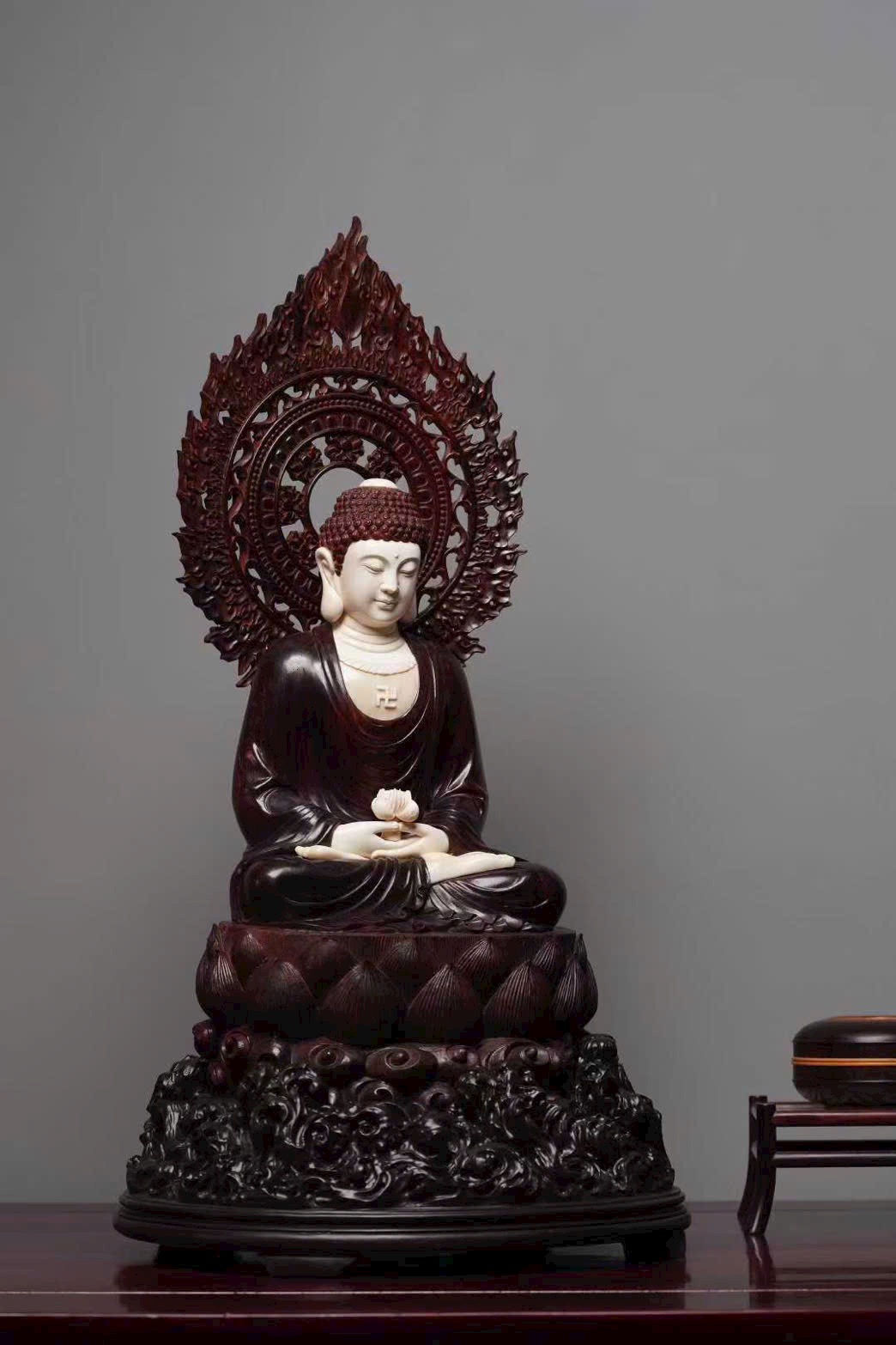 Tượng Thích Ca Mâu Ni – Gỗ Tử Đàn Ấn Độ kết hợp ng.à m.amut vạn năm tuổi
