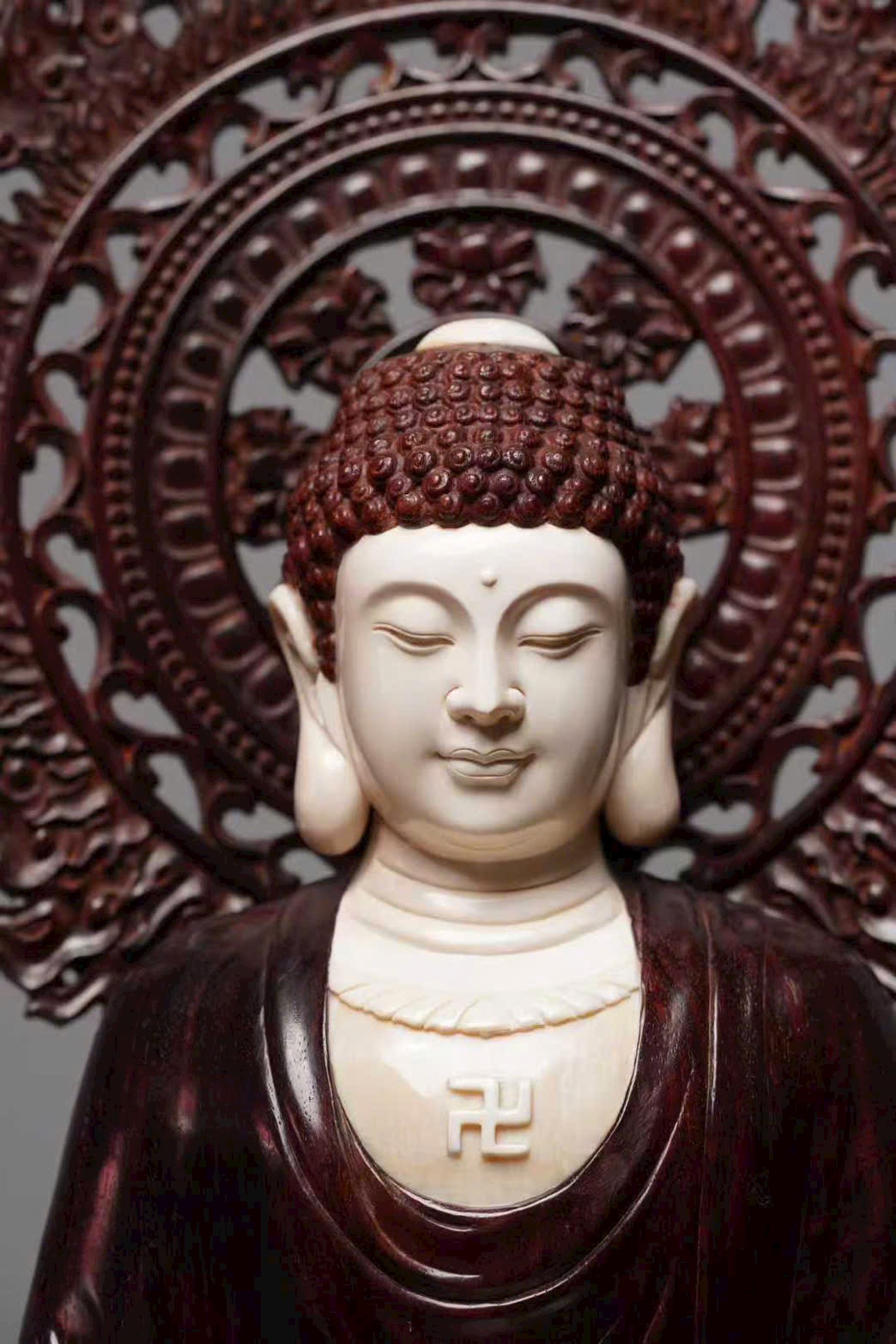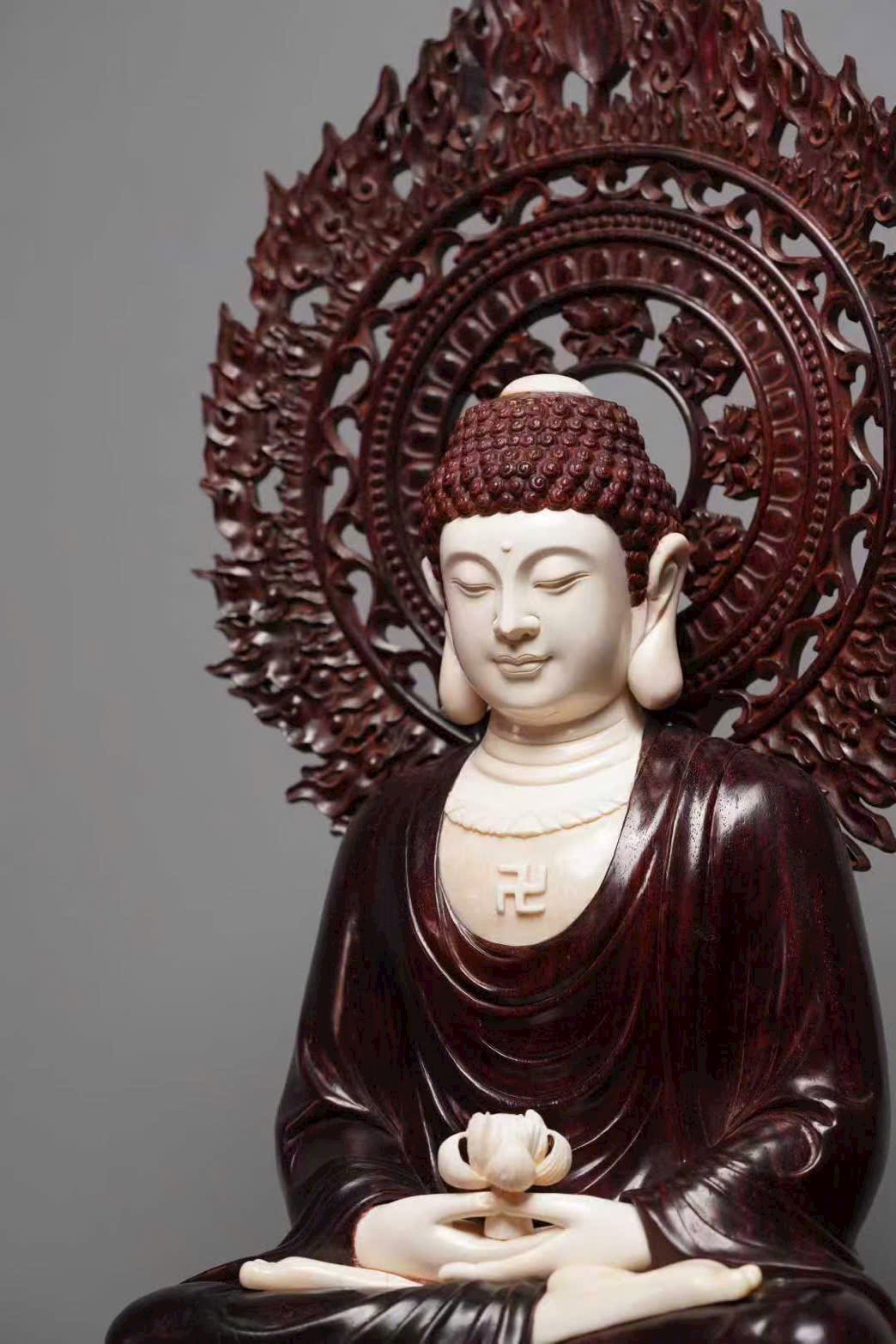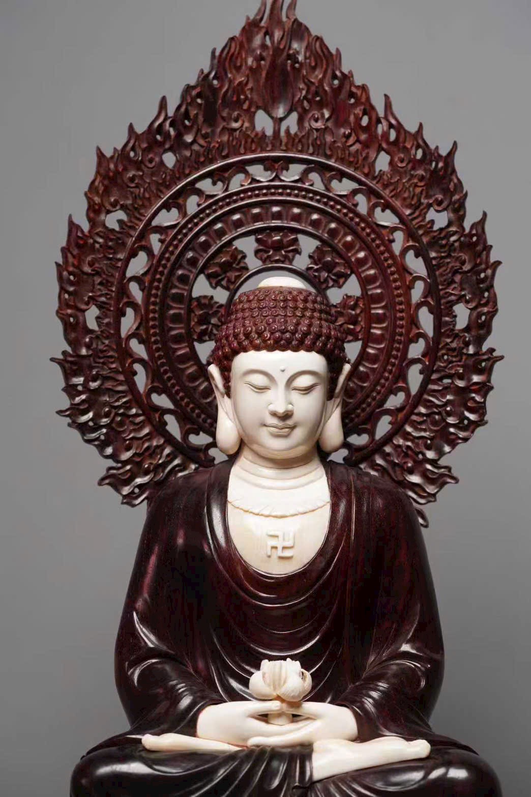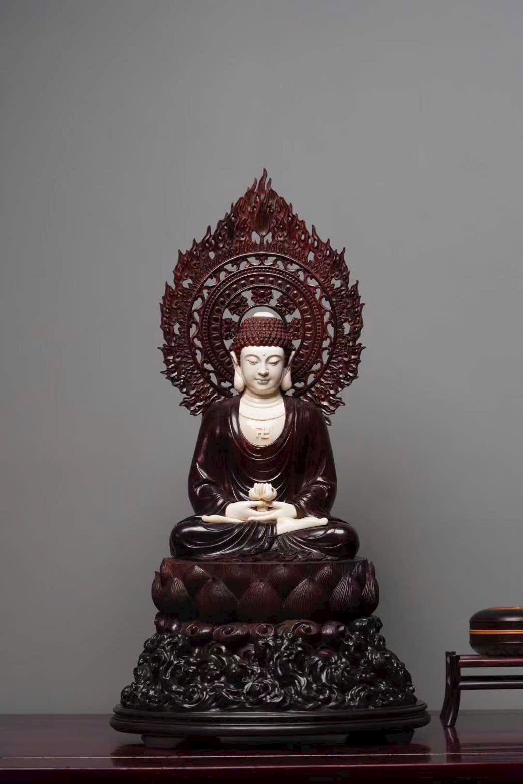 Tượng Thích Ca Mâu Ni – Gỗ Tử Đàn Ấn Độ kết hợp ng.à m.amut vạn năm tuổi