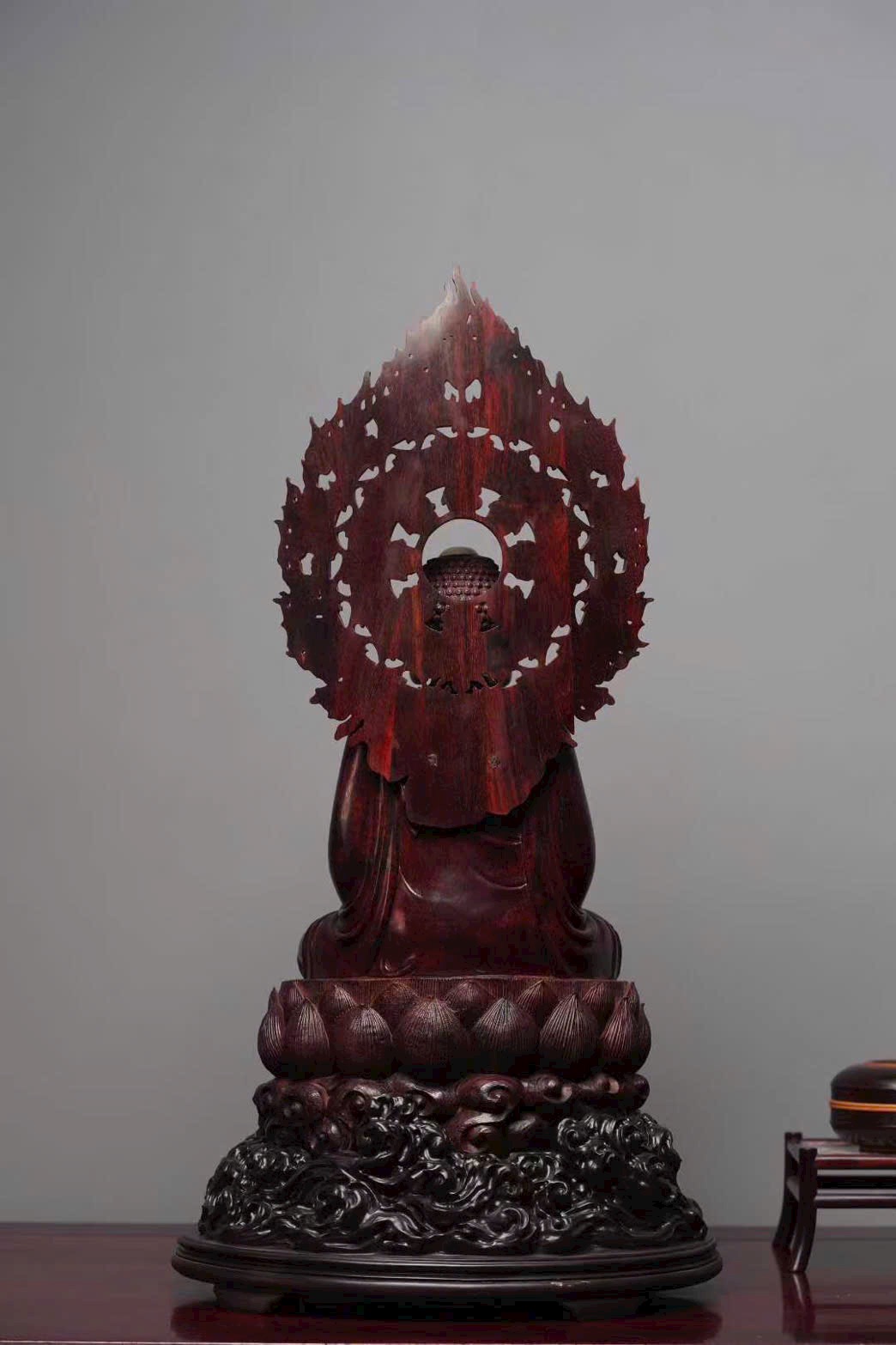 Chạm khắc tinh xảo, thần thái từ bi, mắt hiền hòa, tay cầm hoa sen, áo bào mềm mại như mây, hào quang tự nhiên tỏa sáng, mang lại cảm giác an yên và trang nghiêm. Phù hợp thờ cúng và sưu tầm.