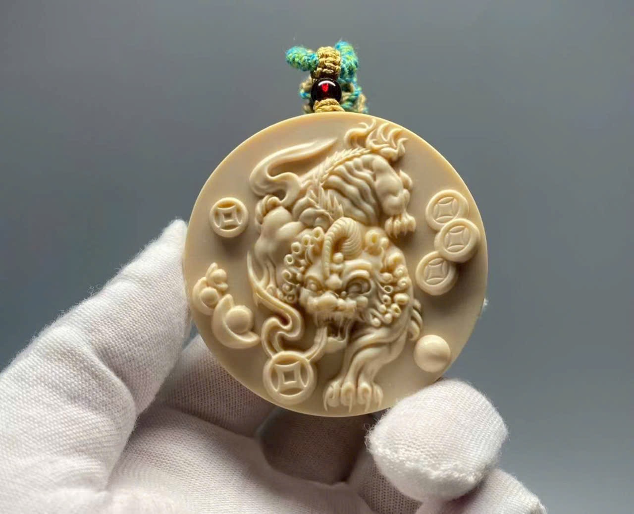 Chất liệu ng.à mamut vạn năm cổ, mịn màng và bóng dầu. Chạm khắc tinh xảo, từng chi tiết đều sắc nét.