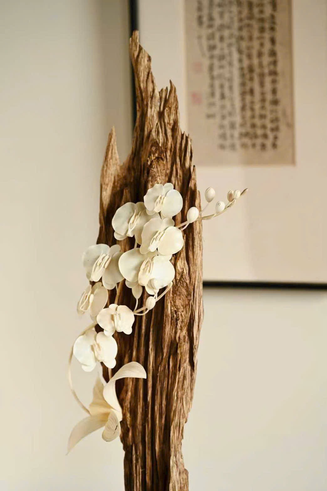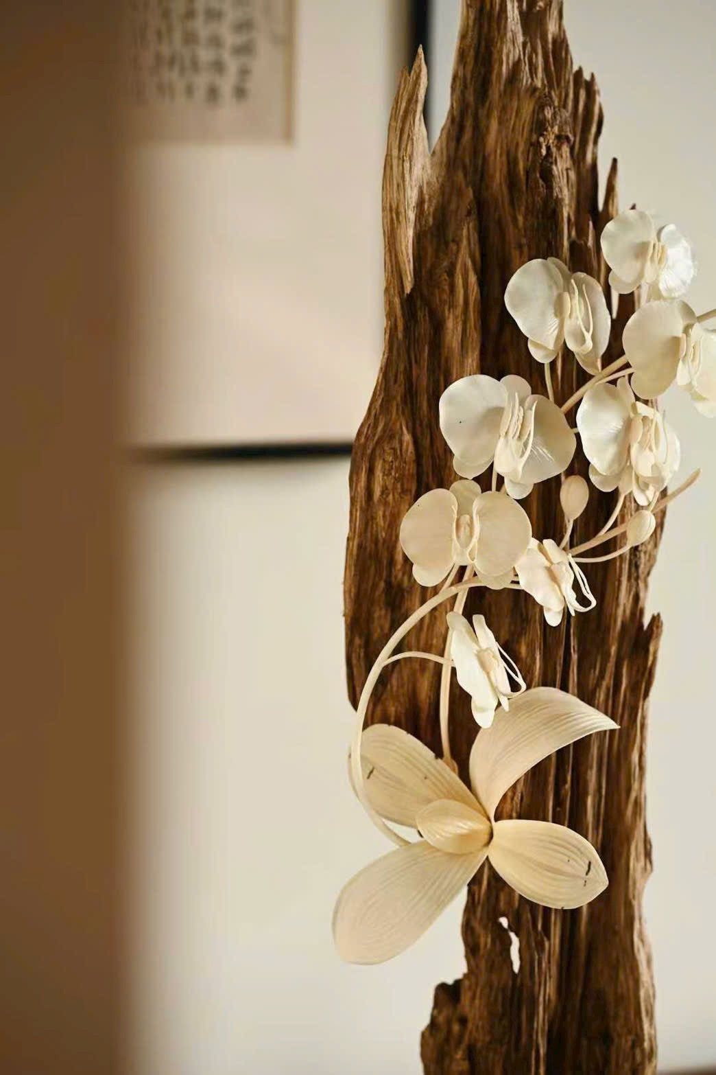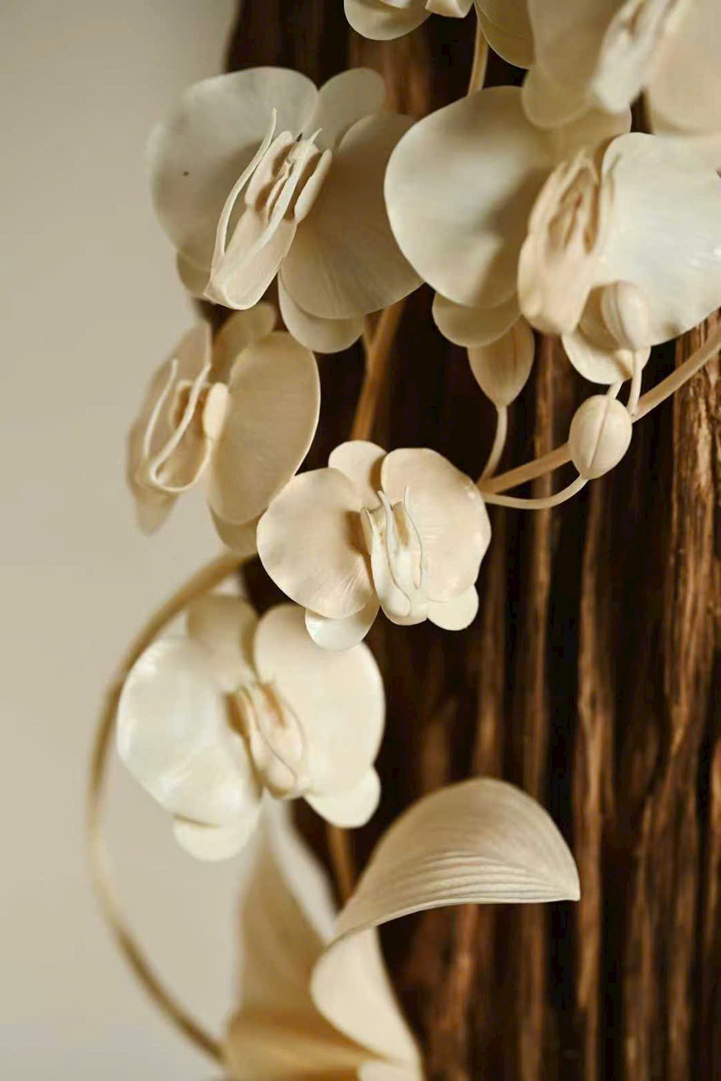 Lấy dáng vẻ tự nhiên, uyển chuyển dịu dàng. Hoa hồ điệp căng đầy, tầng lớp đan xen, toát lên sự tĩnh lặng và thoát tục. Trong ánh sáng luân chuyển, hiện rõ vẻ đẹp thuần khiết không tranh giành, hòa điệu cùng muôn vẻ.