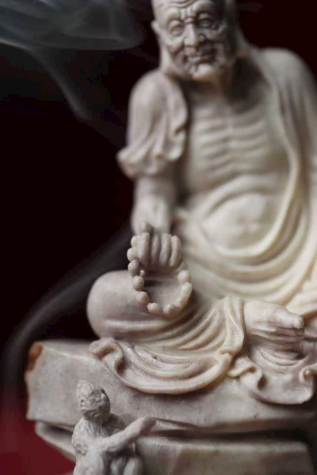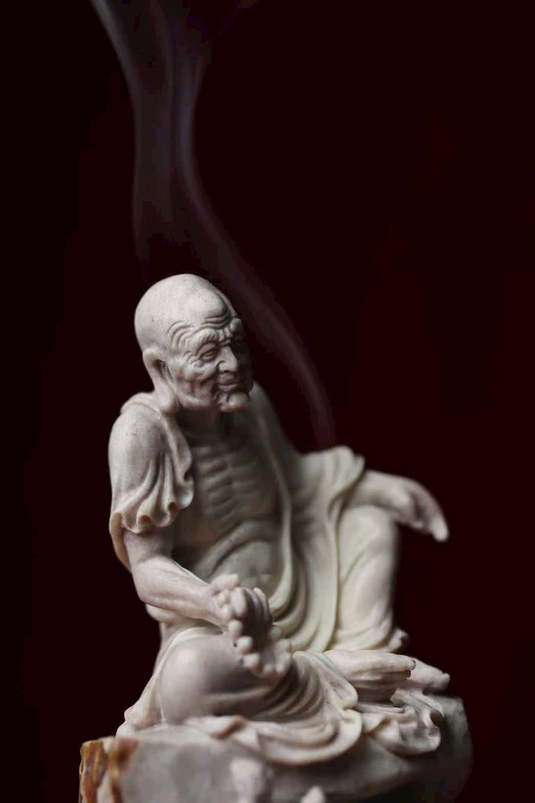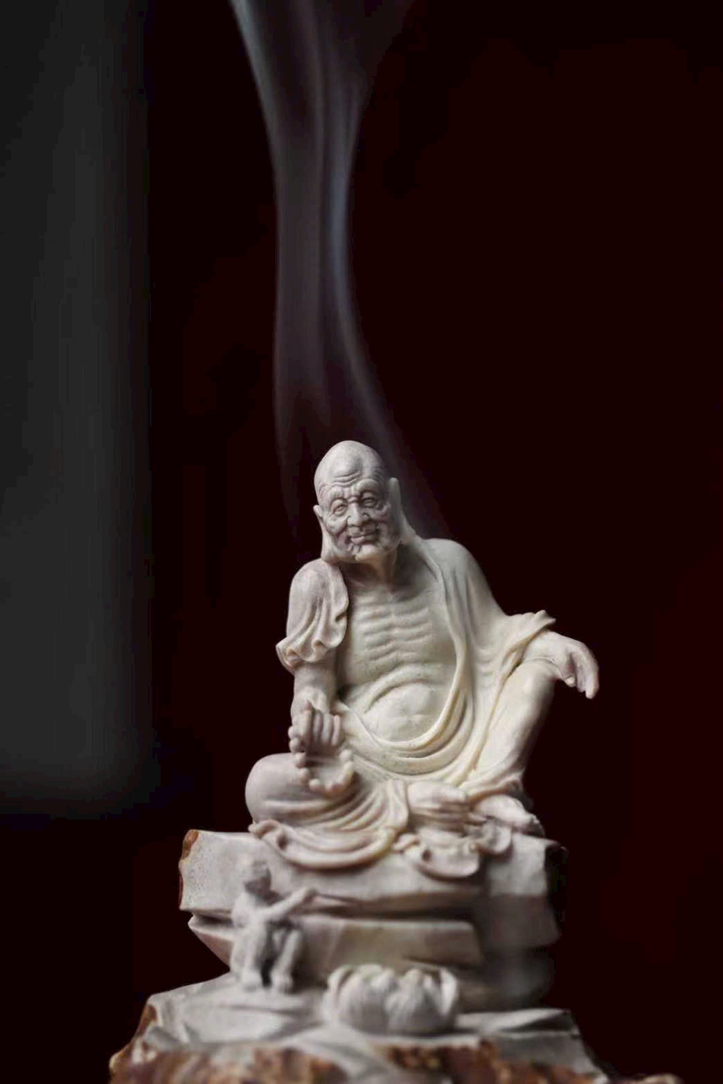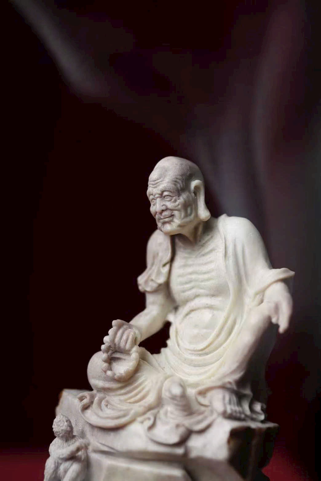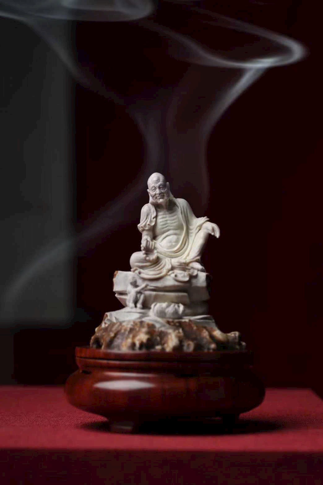 Tác phẩm chế tác thủ công hoàn toàn từ lộc giác, tạo hình mộc mạc mà hàm súc, gợi ý cảnh tầm đạo – vấn đạo, thích hợp cho không gian thiền, trà thất hoặc thư phòng.