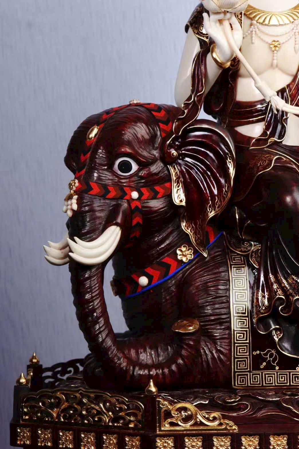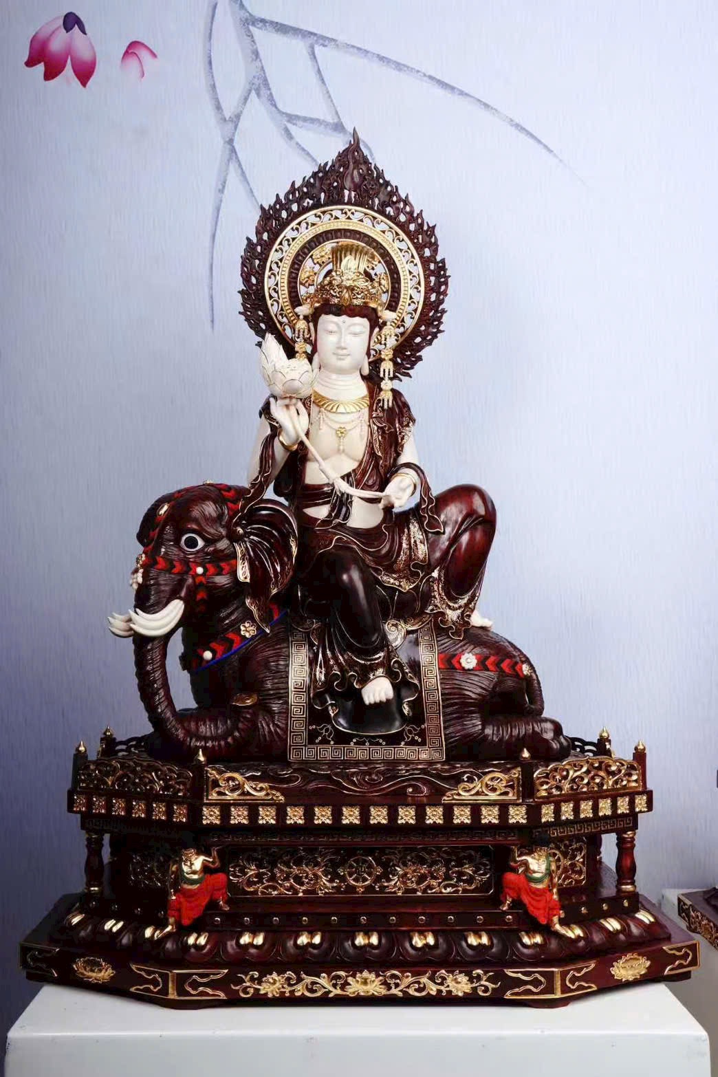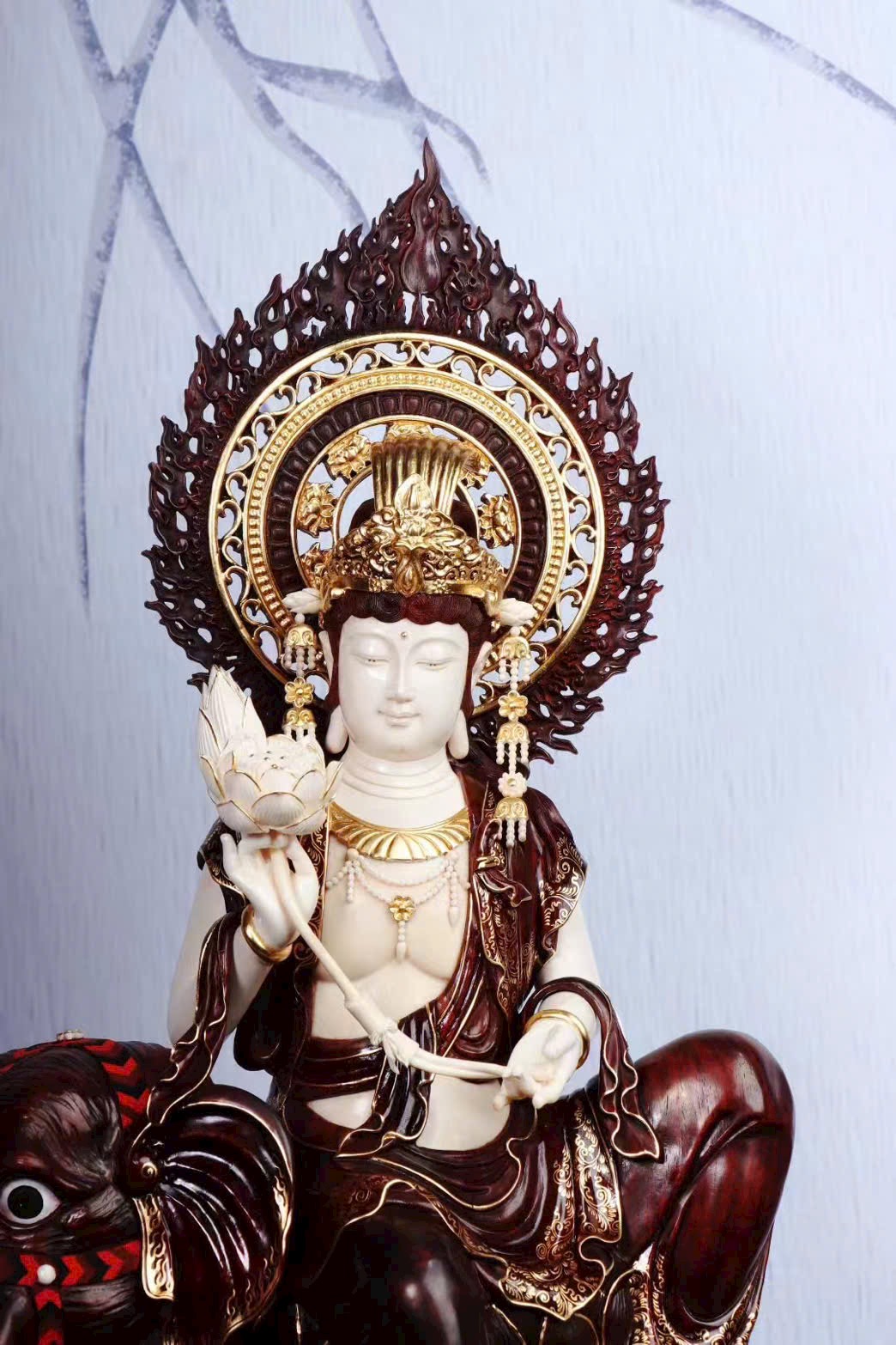 Bồ Tát Phổ Hiền cưỡi voi trắng sáu ngà, biểu trưng cho đại hạnh viên mãn.
