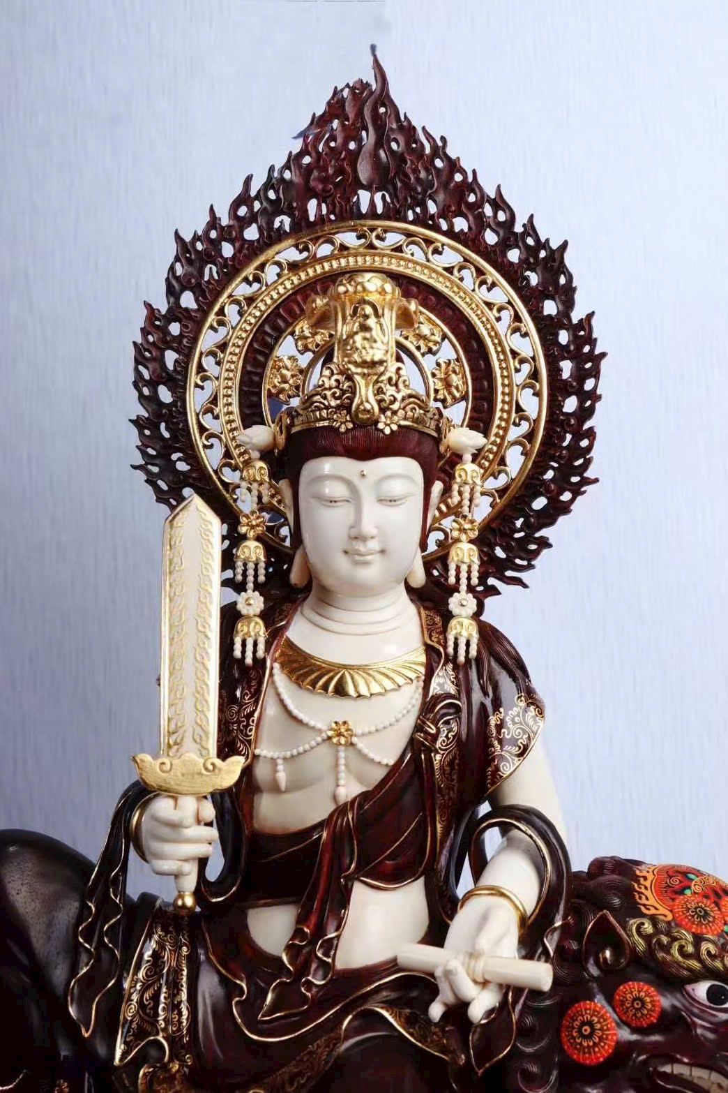 Bồ Tát Văn Thù tay cầm kiếm trí tuệ, chém đứt phiền não;