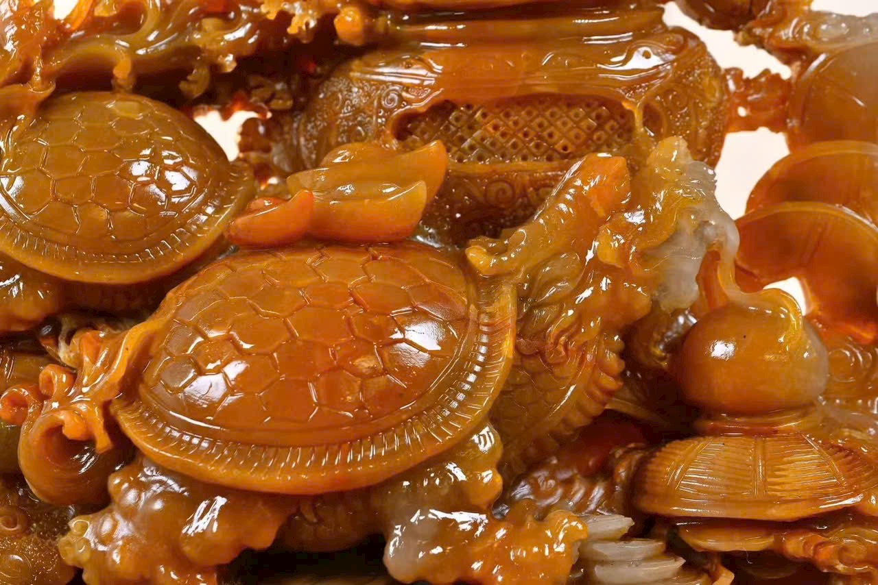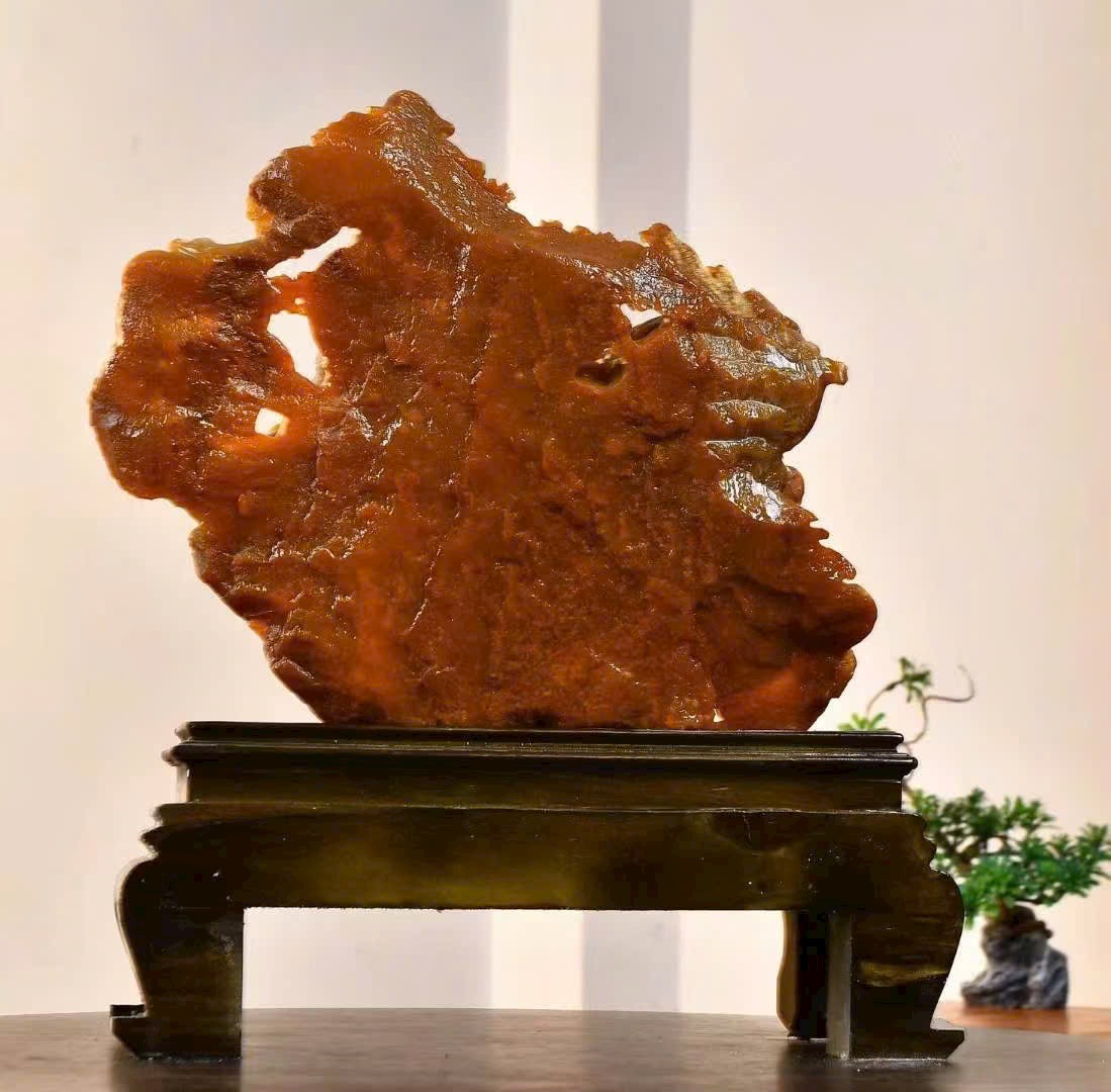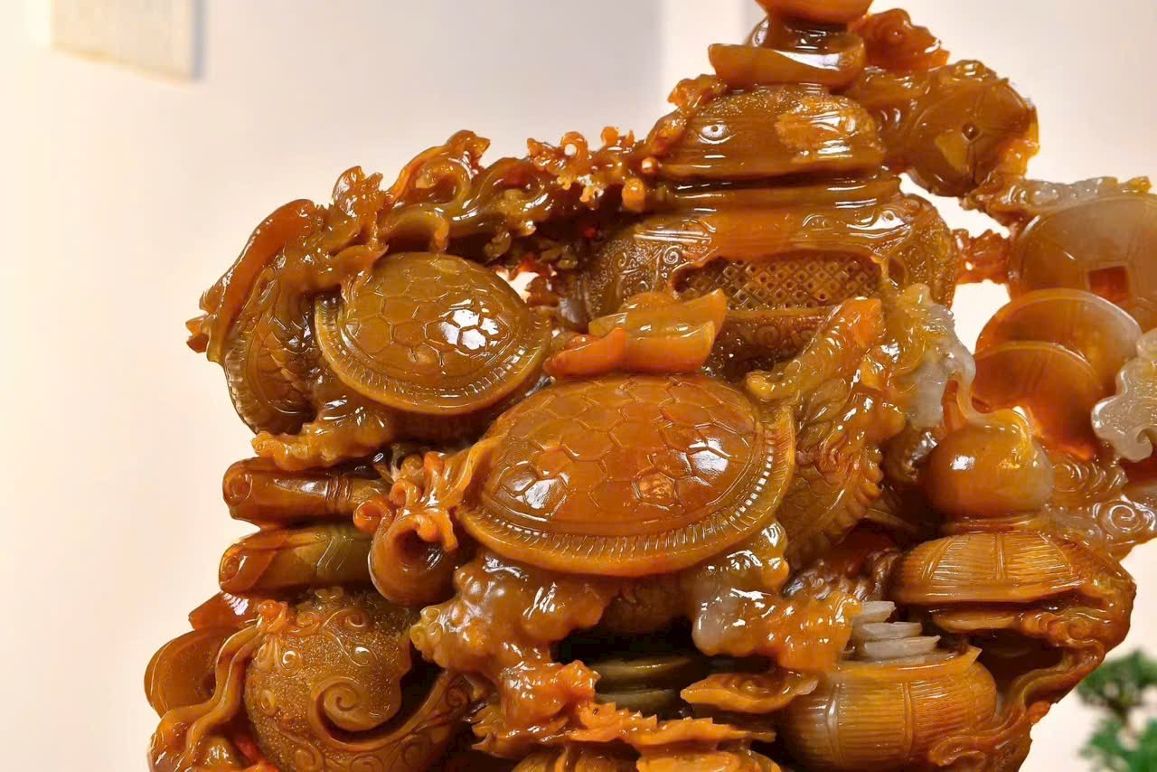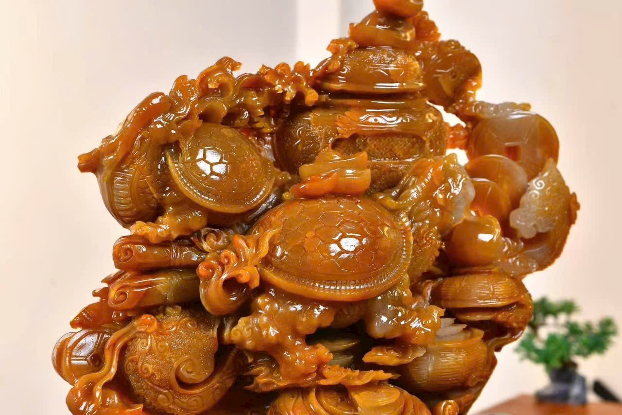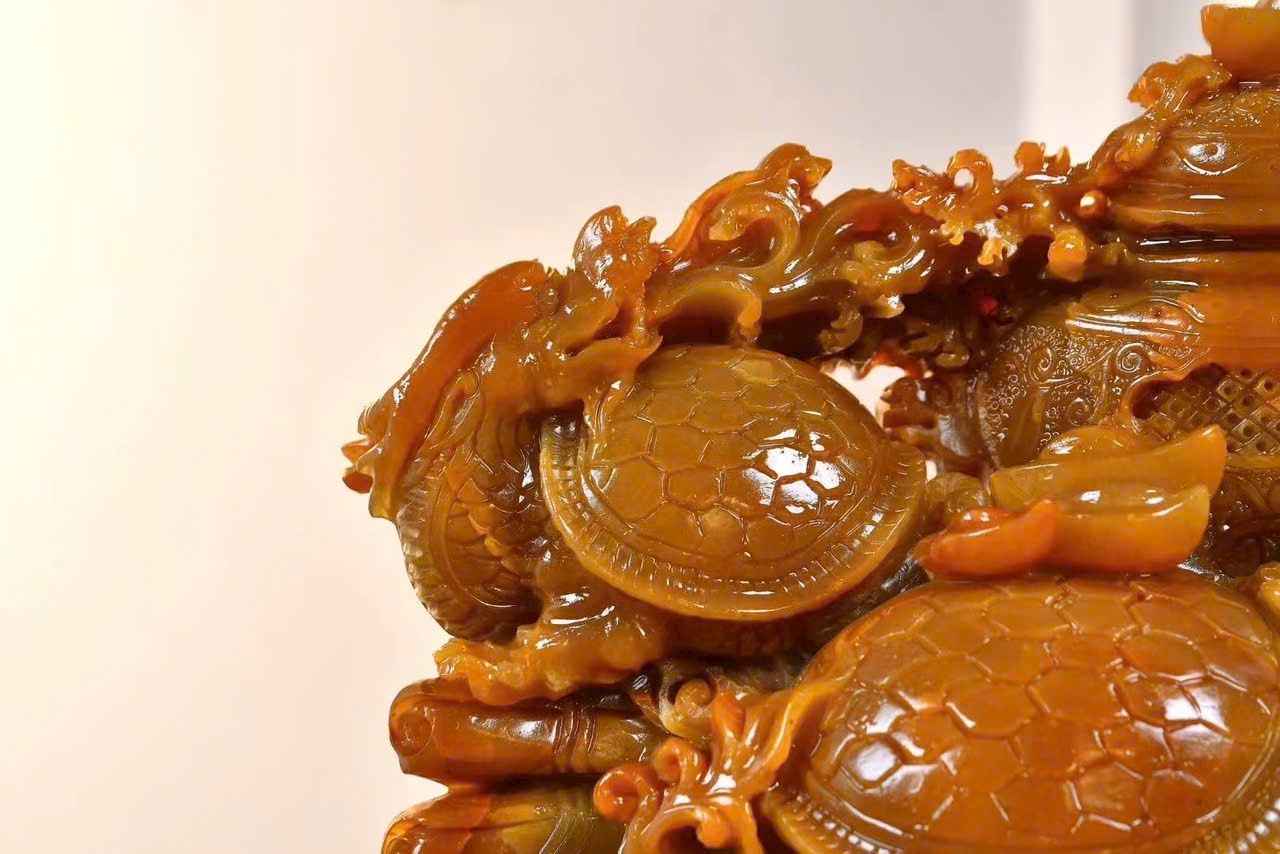 Tác phẩm điêu khắc đá điền hoàng, chất đá kết tinh tuyệt đẹp, màu sắc ấm mượt, liền khối, kèm kiểm định