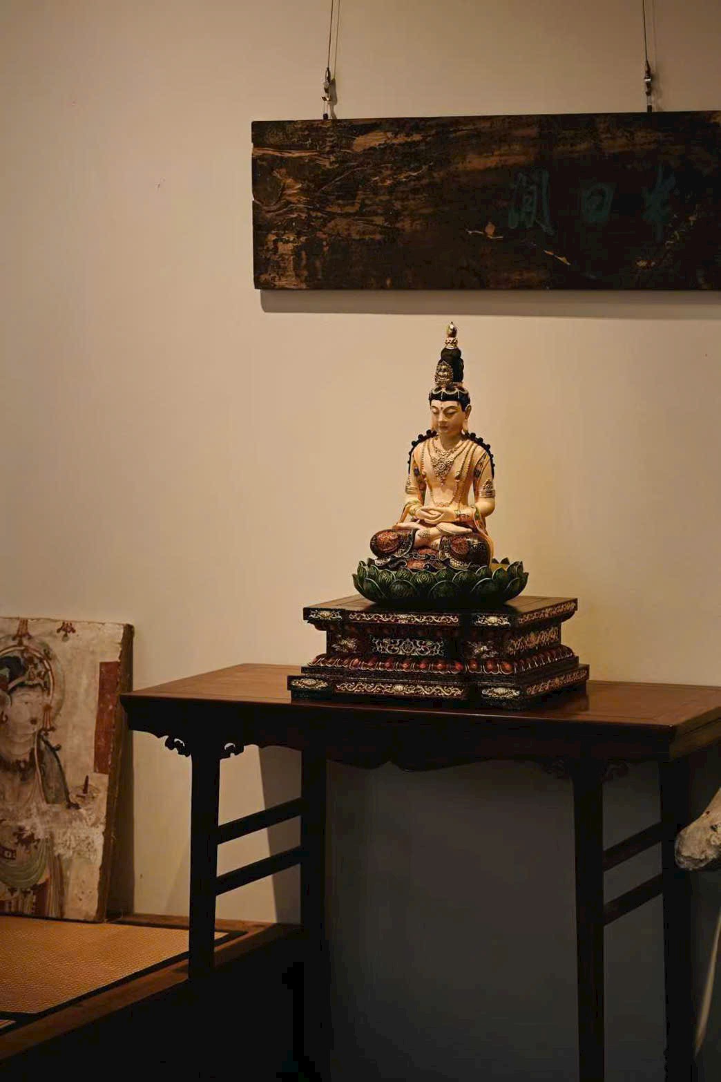 Gỗ long não × Vẽ gấm “Vô Lượng Thọ Phật”