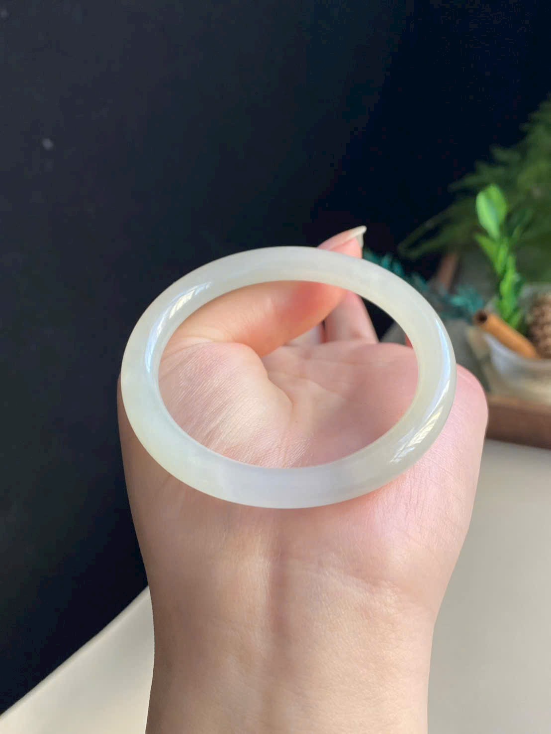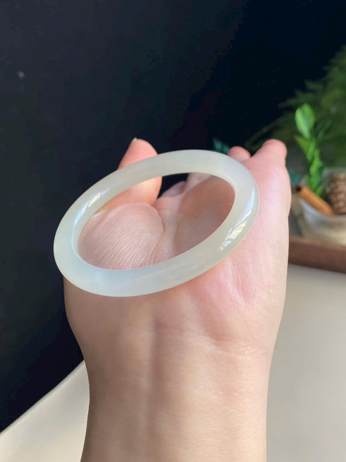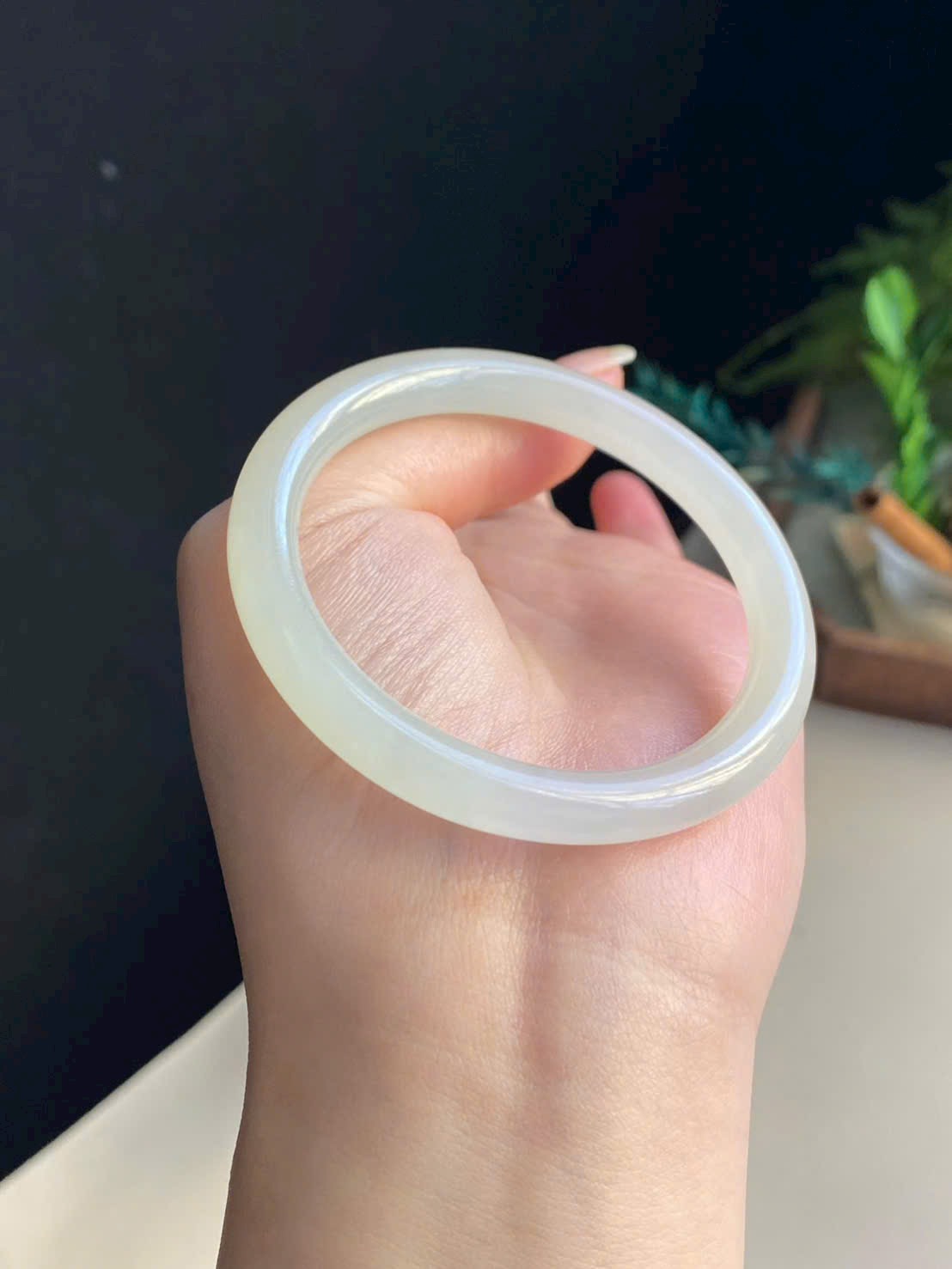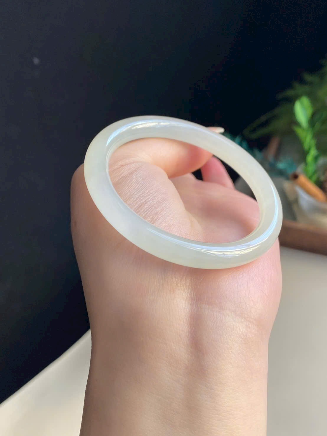 Vòng tay ngọc Hòa Điền – liệu Thanh Hải, dáng mỹ nhân điều, sắc trắng ánh thanh, màu sắc tươi sáng, nhã nhặn. Chất ngọc mịn mượt, trong nước, phong vị thanh thoát tinh tế. Không nứt rạn, có đường nước nhưng không rõ, tổng thể đẹp, dễ đeo và giàu giá trị thưởng ngọc.