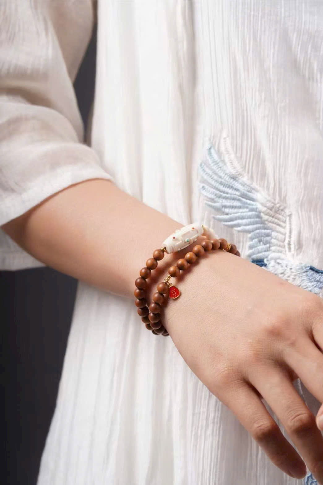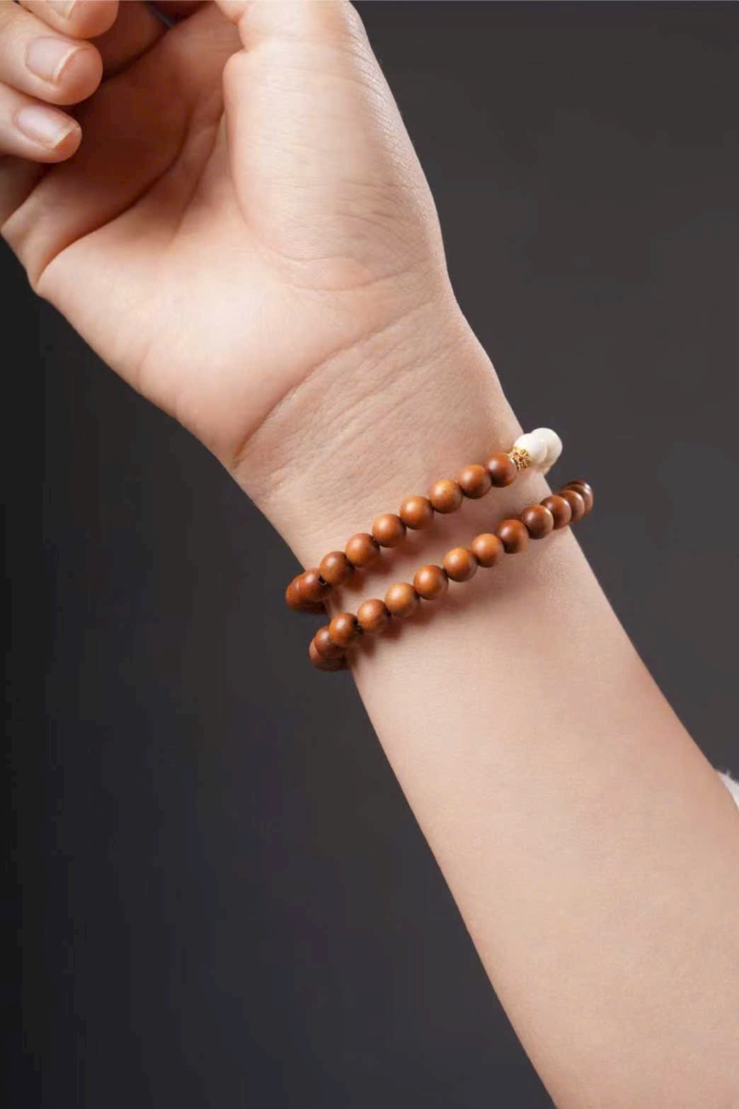 Vòng tay 2 vòng – đàn hương Lão Sơn 0.6 kết hợp ng.à voi ma mút