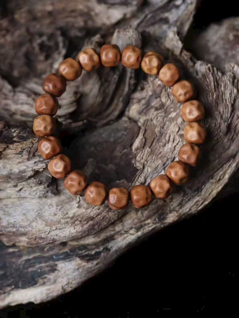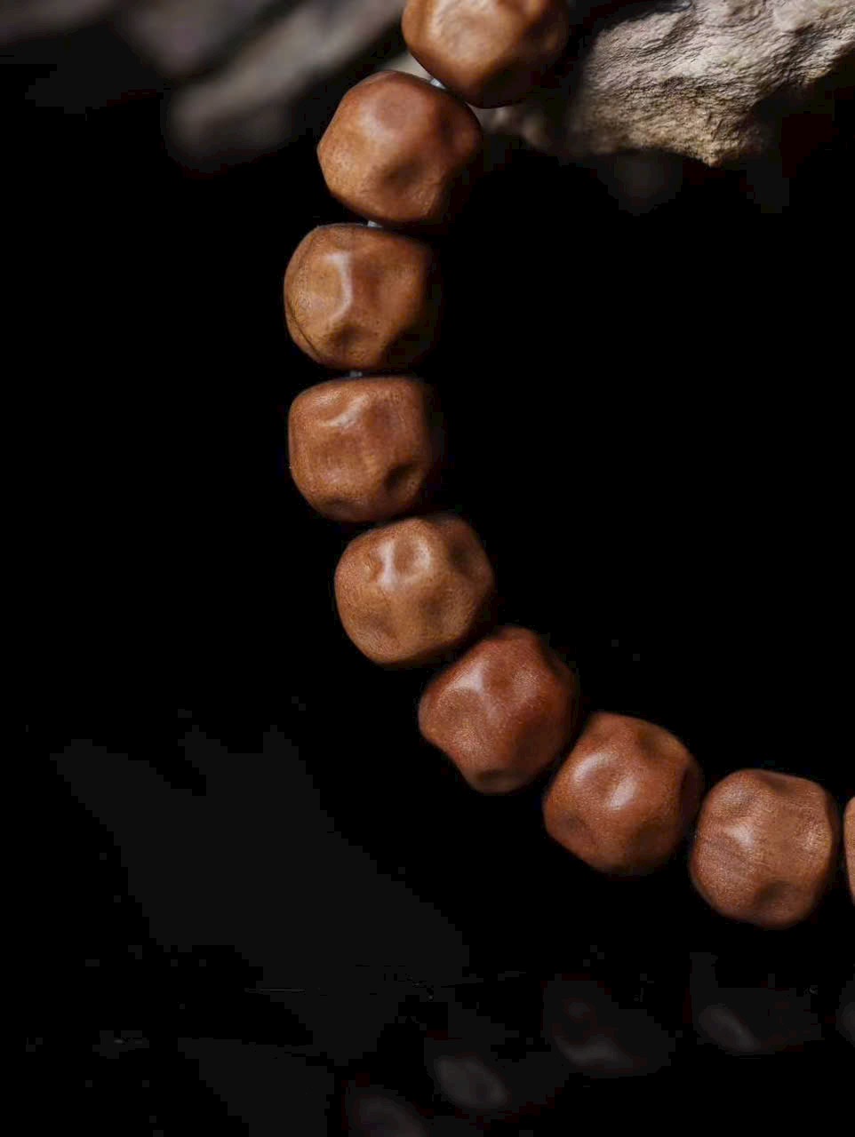 Gỗ đàn hương Lão Sơn của Ấn Độ từ xưa đã được xem là linh mộc thông tam giới, hương sữa thuần khiết, ngọt ngào tự nhiên. Từng hạt được chạm khắc tinh xảo, tỉ mỉ đến từng chi tiết, hình dáng tròn trịa viên mãn, mang lại vẻ đẹp thanh nhã và cảm giác dịu êm khi đeo.