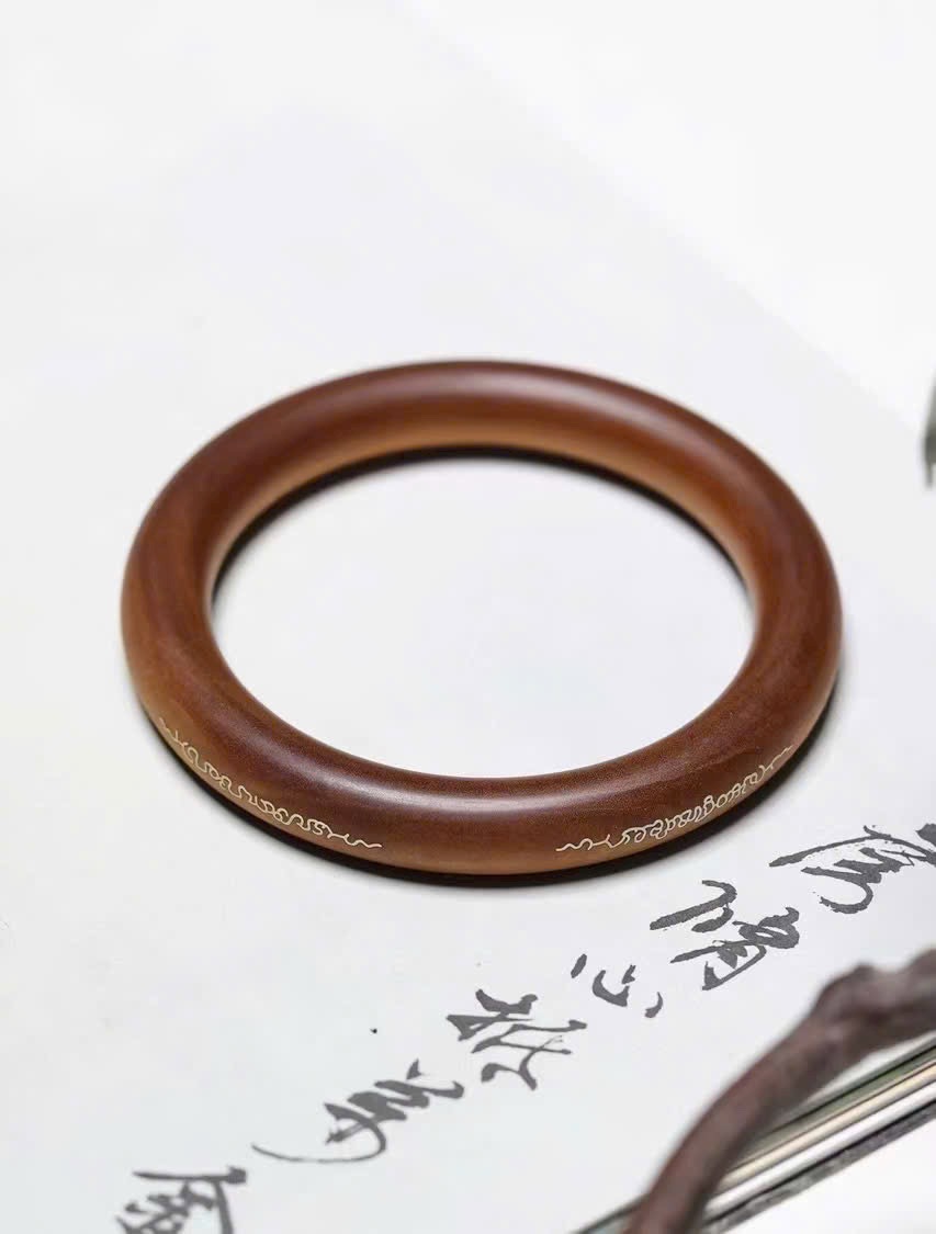 ✨ Vòng tay bản tròn đàn hương lão sơn Ấn Độ khảm bạc