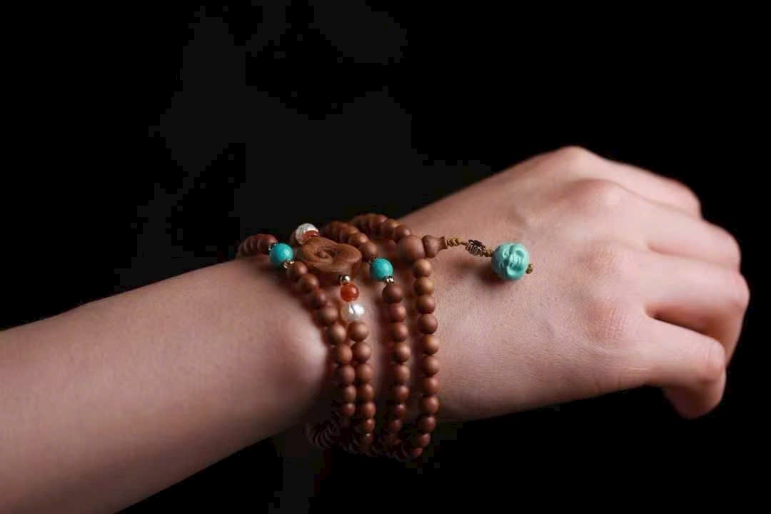 • Phụ kiện: Đàn hương, ngọc lam (turquoise), Nam Hồng, ngọc trai acrylic, trang sức bạc