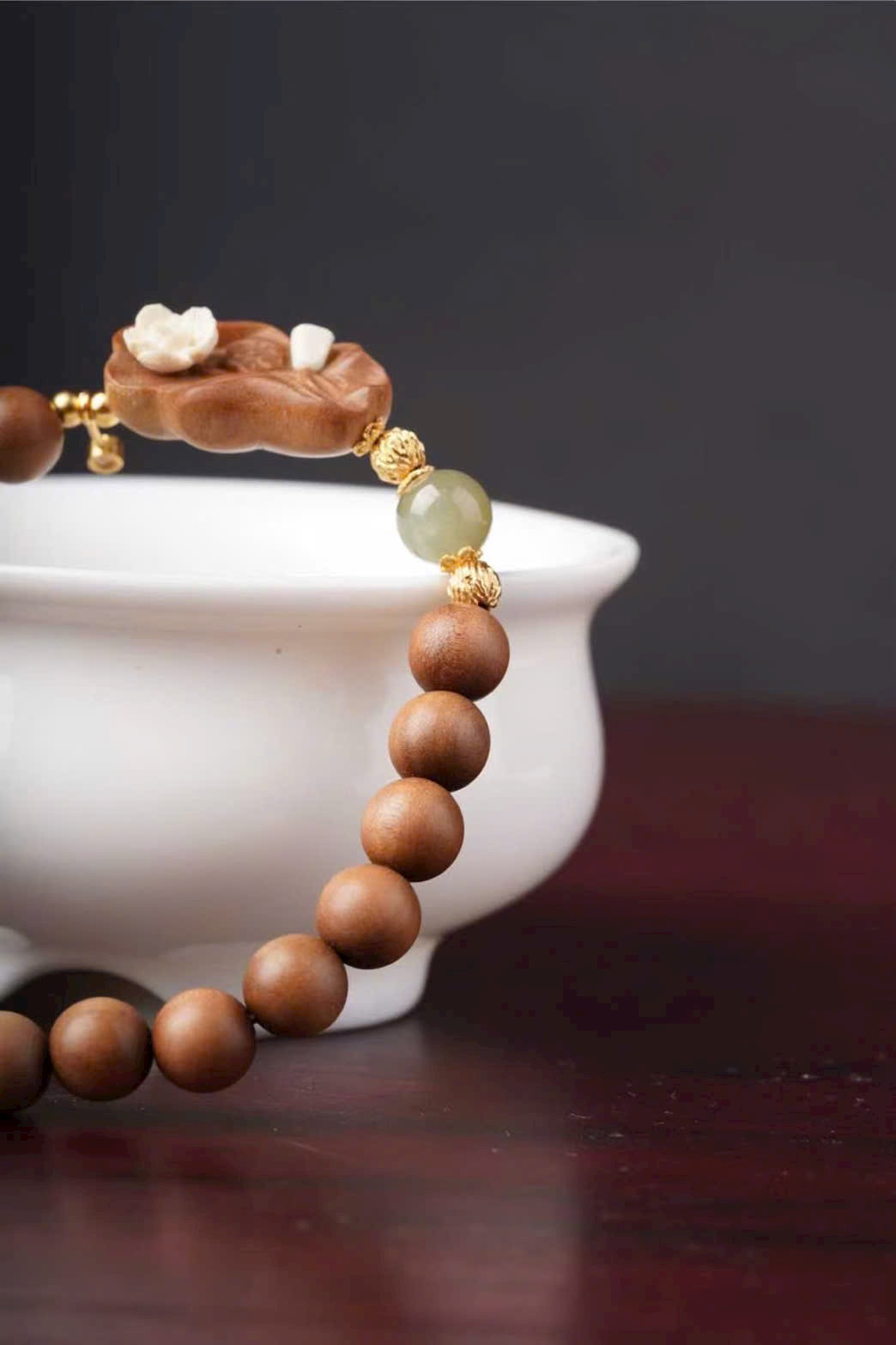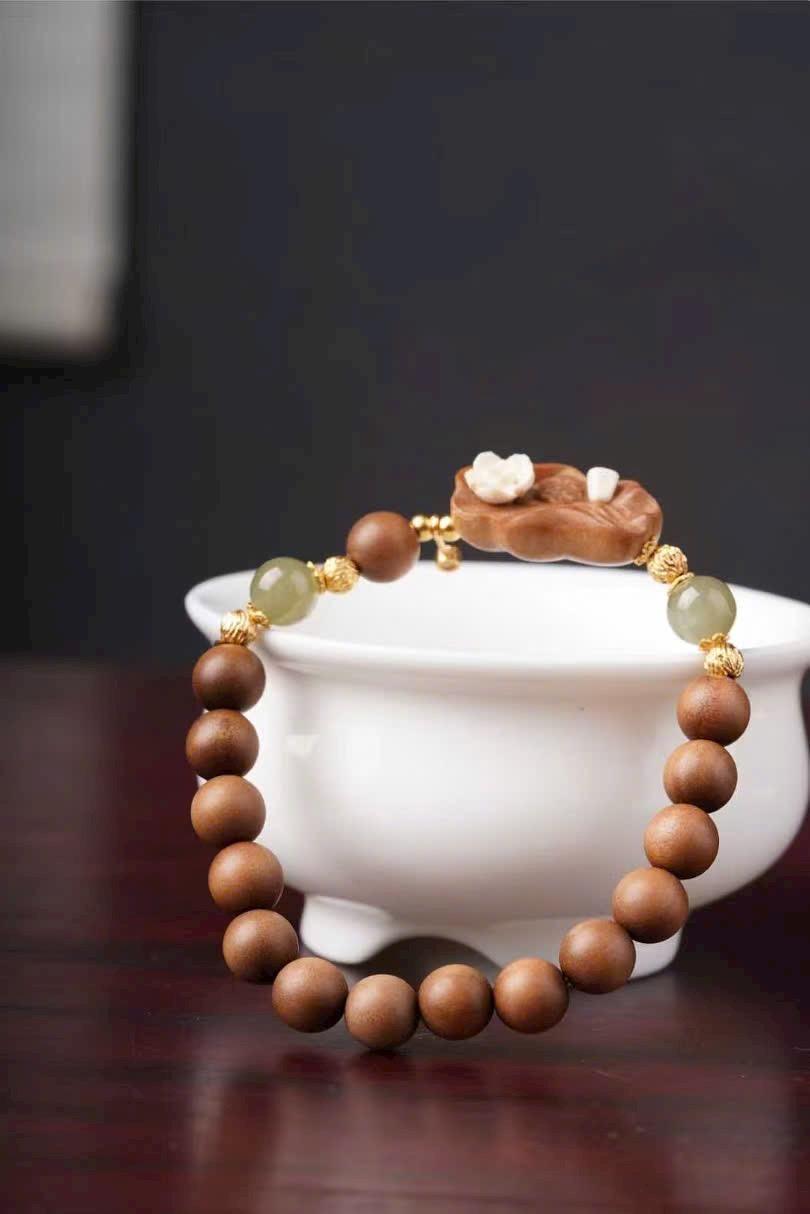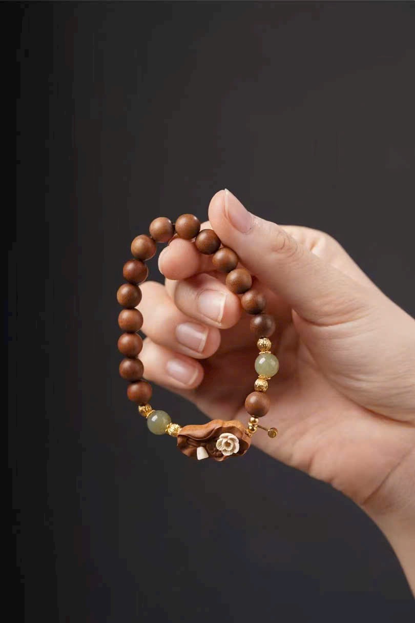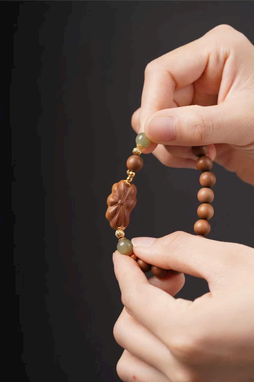 Vòng tay gỗ đàn hương Lão Sơn 0.8 + thủ công chạm khắc “hoa sen”
