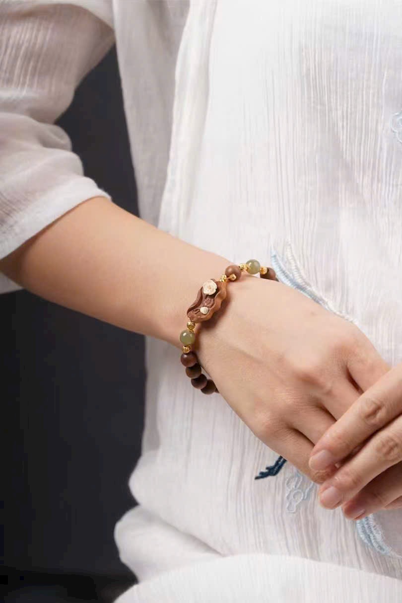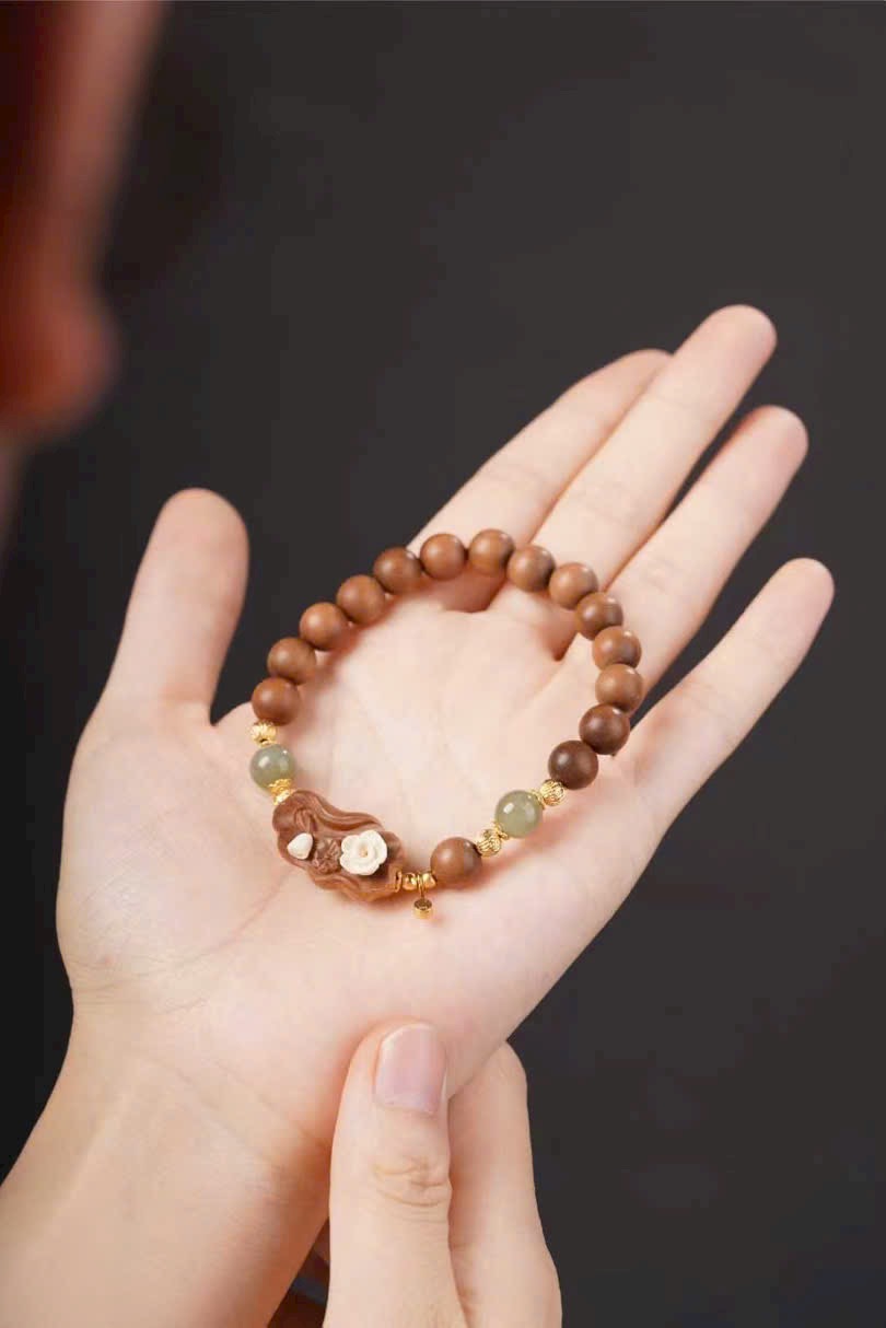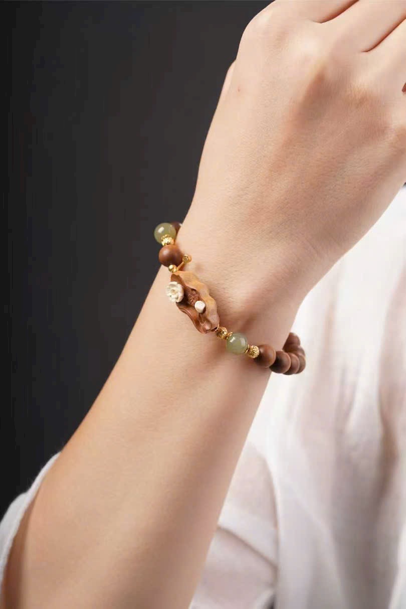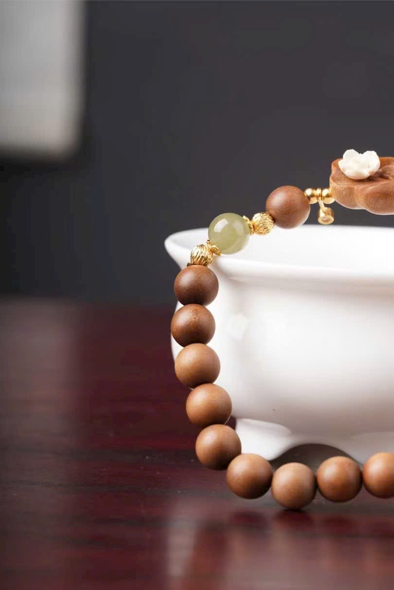 Vòng tay gỗ đàn hương Lão Sơn 0.8 + thủ công chạm khắc “hoa sen”