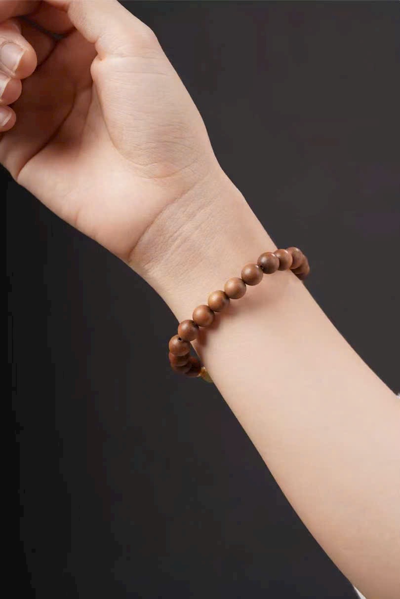– Vòng gồm 15 hạt gỗ đàn hương Lão Sơn loại già 0.8 (đường kính 8mm)