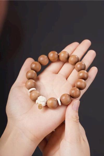 Vòng tay Gỗ đàn hương lão sơn 1.5 + n.gà voi ma mút “Tỳ Hưu” – nam nữ đều có thể đeo