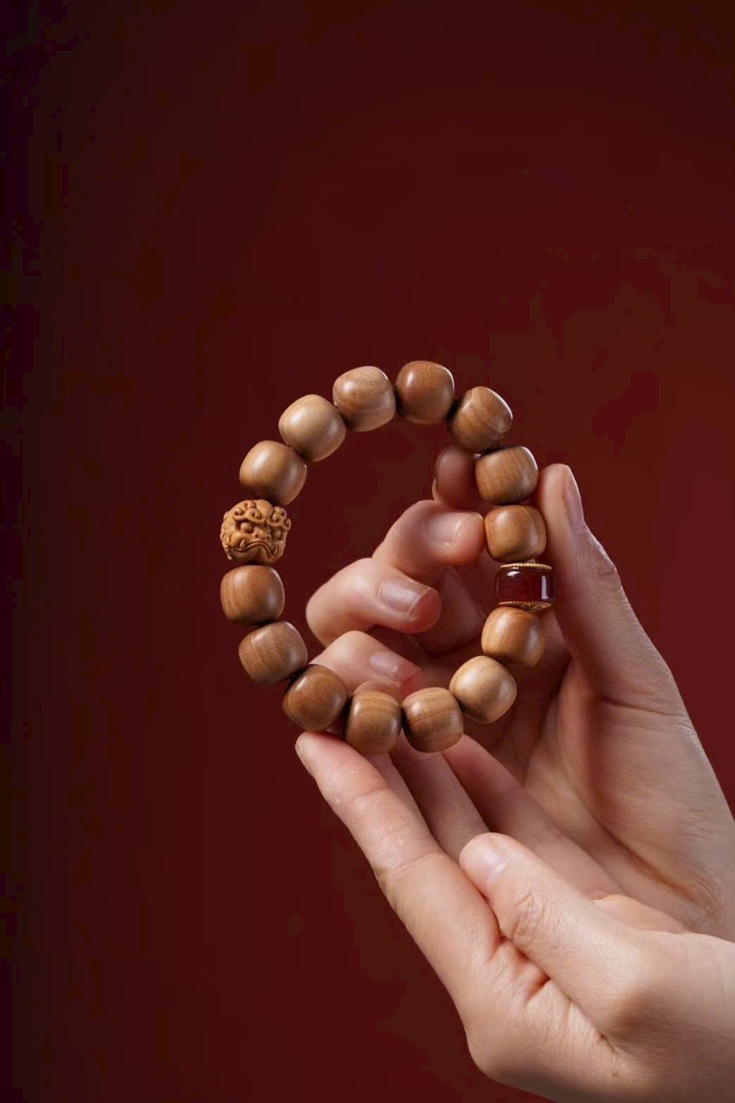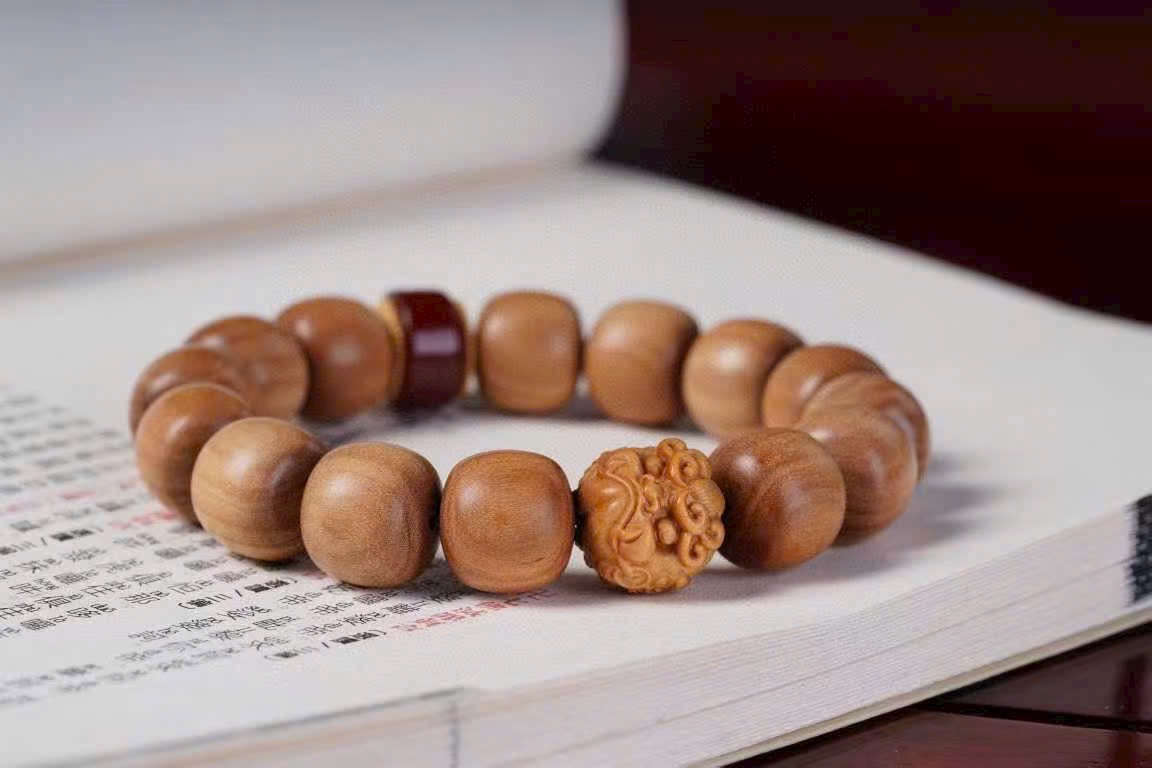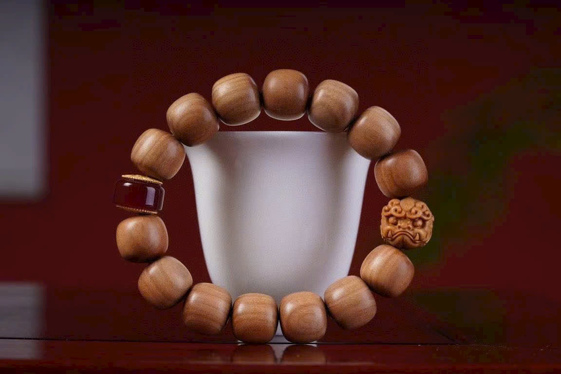 Vòng tay Lão Sơn Đàn Hương Hạt Trụ 13/14 + Tì Hưu