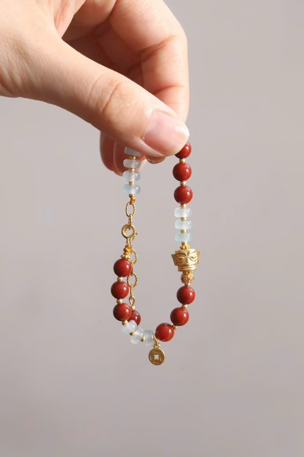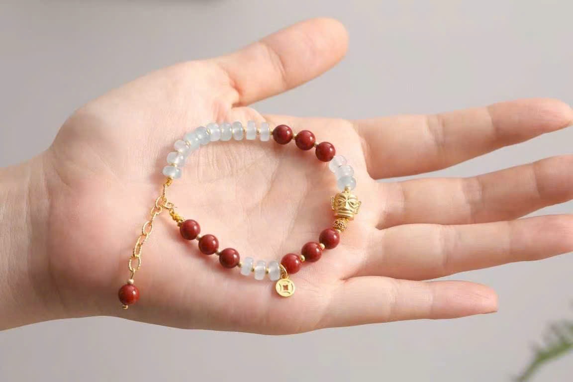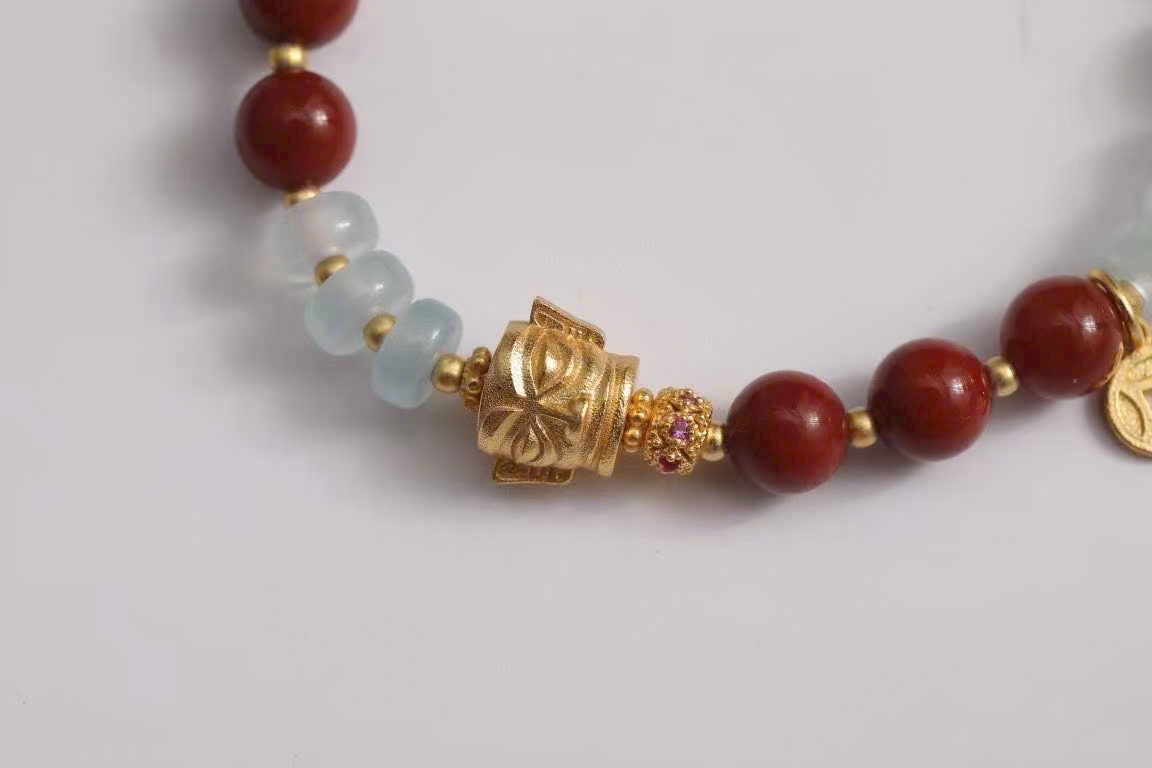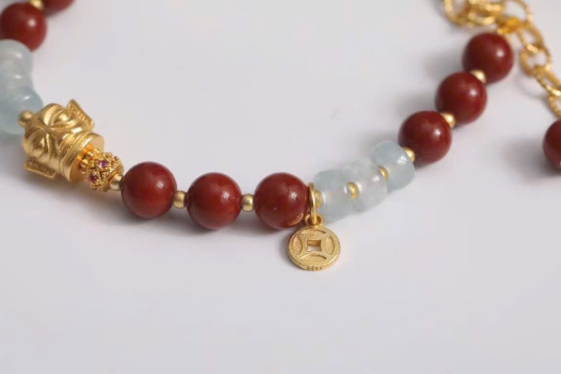 🦋 Phối hợp: chuỗi tròn nam hồng, hạt Tam Tinh Đôi, ngọc cẩm thạch xen, đồng xu nhỏ, điểm xuyết vụn vàng – sắc trầm tĩnh mà duyên dáng, tạo nên khí chất vừa linh hoạt vừa dịu hiền.
