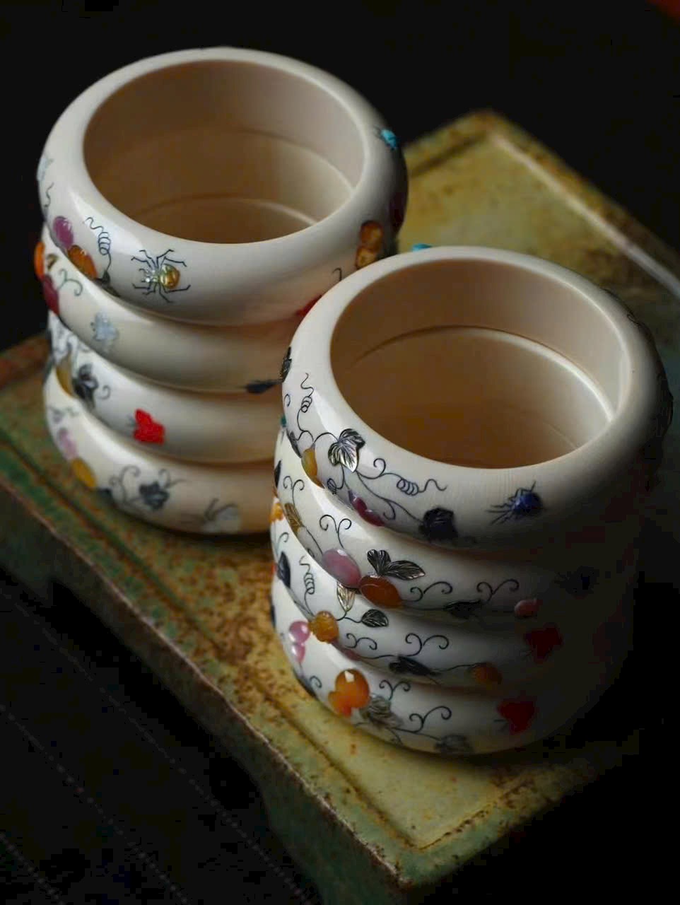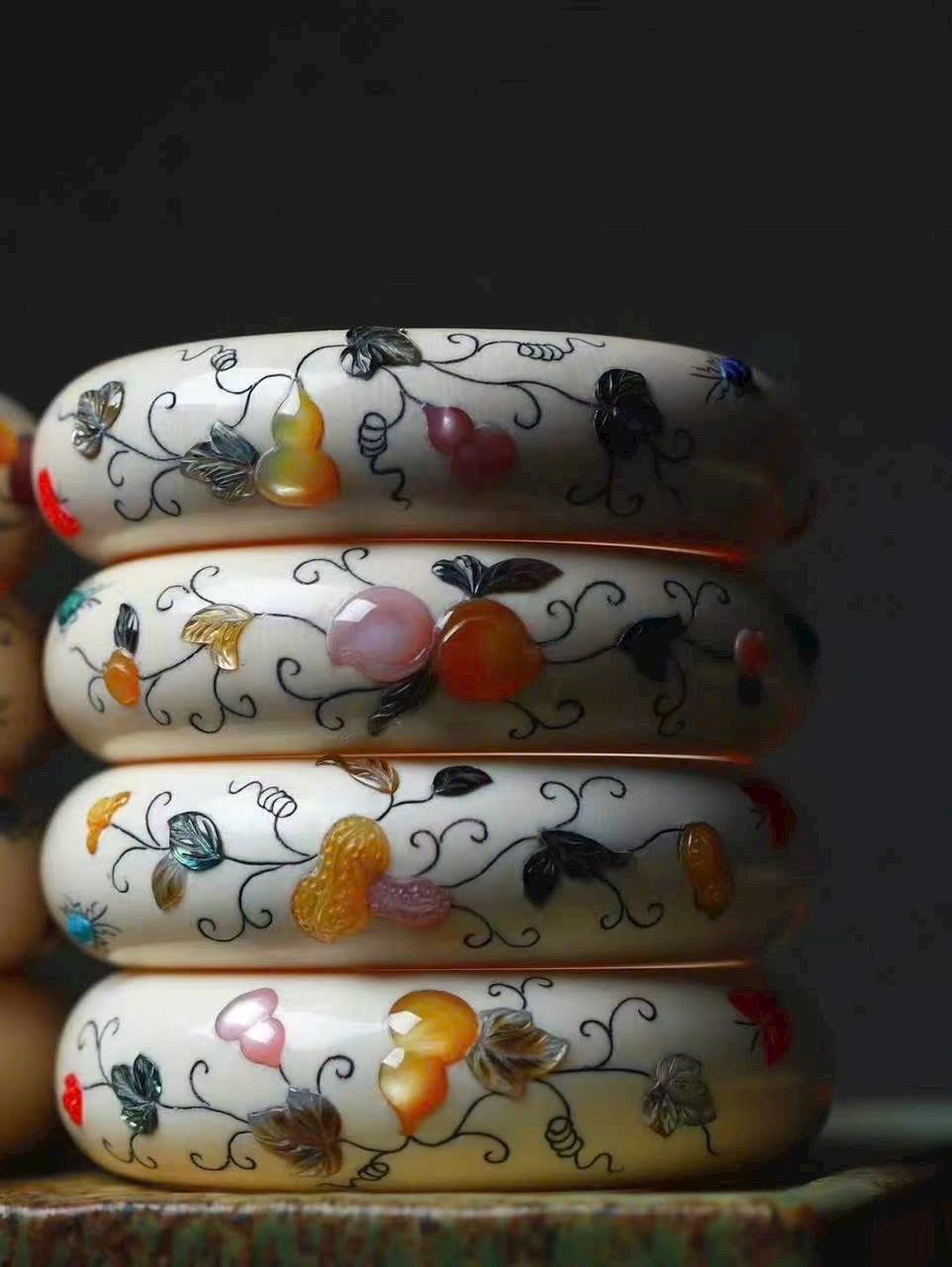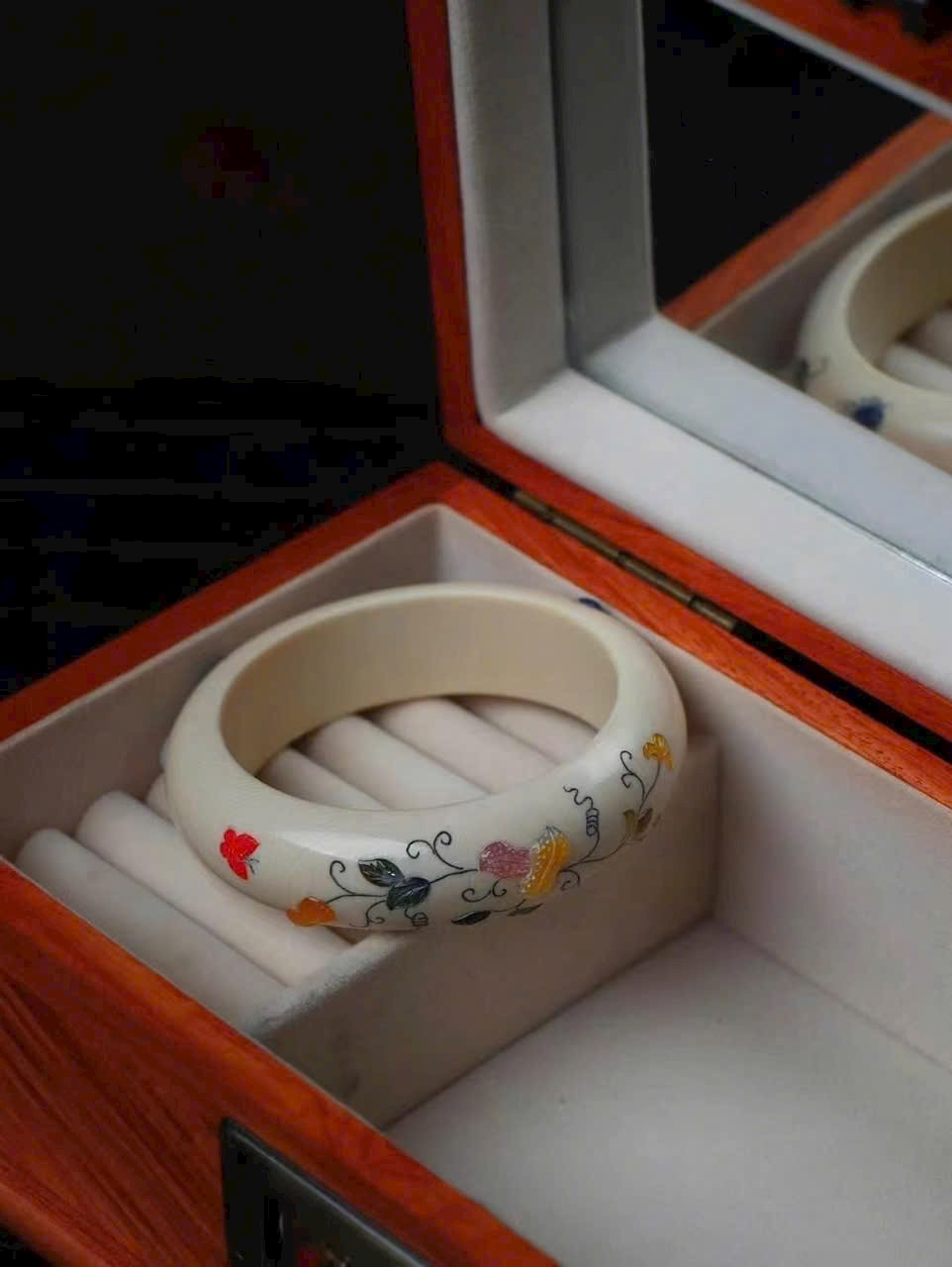 Tác phẩm tinh xảo từ món quà thiên nhiên, kết hợp kỹ thuật khảm cổ xưa đang dần thất truyền. Màu sắc rực rỡ, chế tác tinh vi như kỳ công của tạo hóa