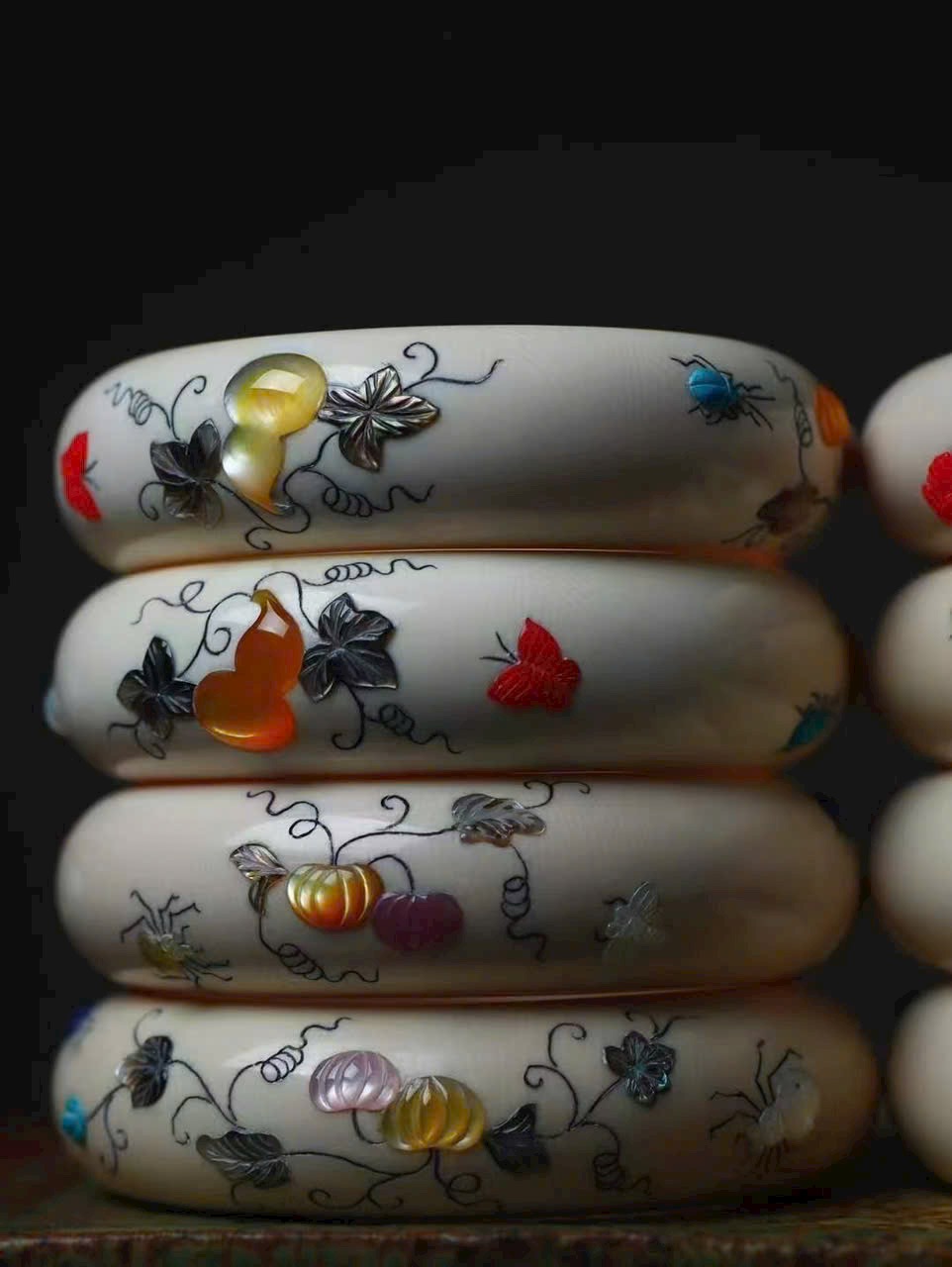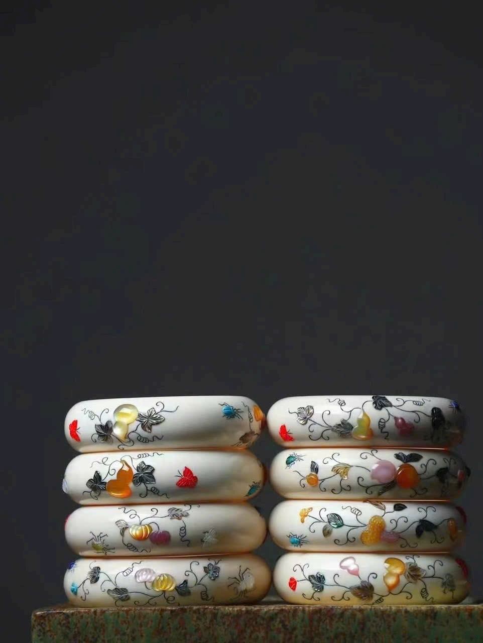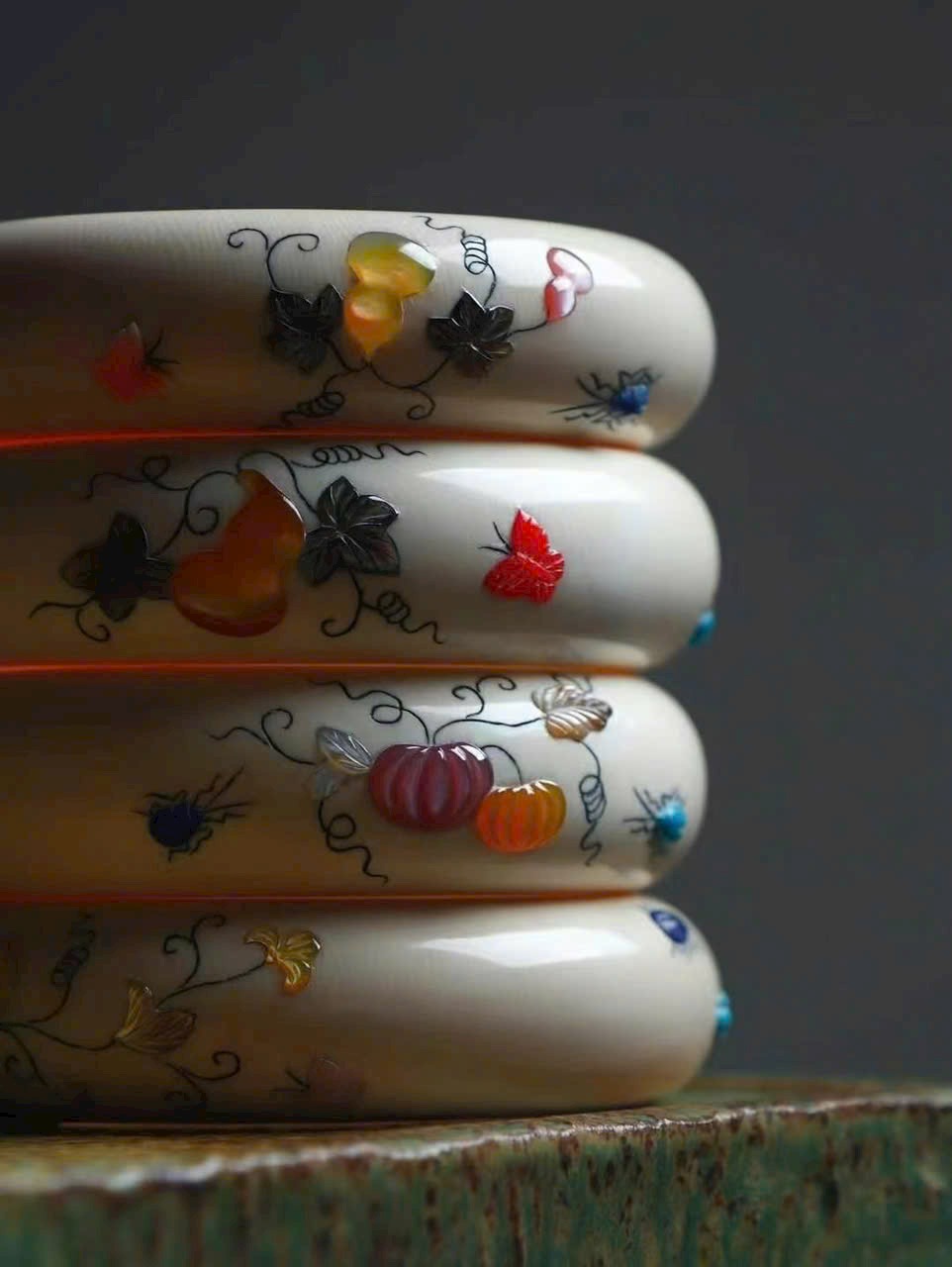 Tác phẩm tinh xảo từ món quà thiên nhiên, kết hợp kỹ thuật khảm cổ xưa đang dần thất truyền. Màu sắc rực rỡ, chế tác tinh vi như kỳ công của tạo hóa