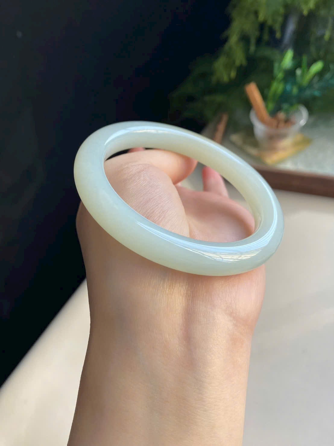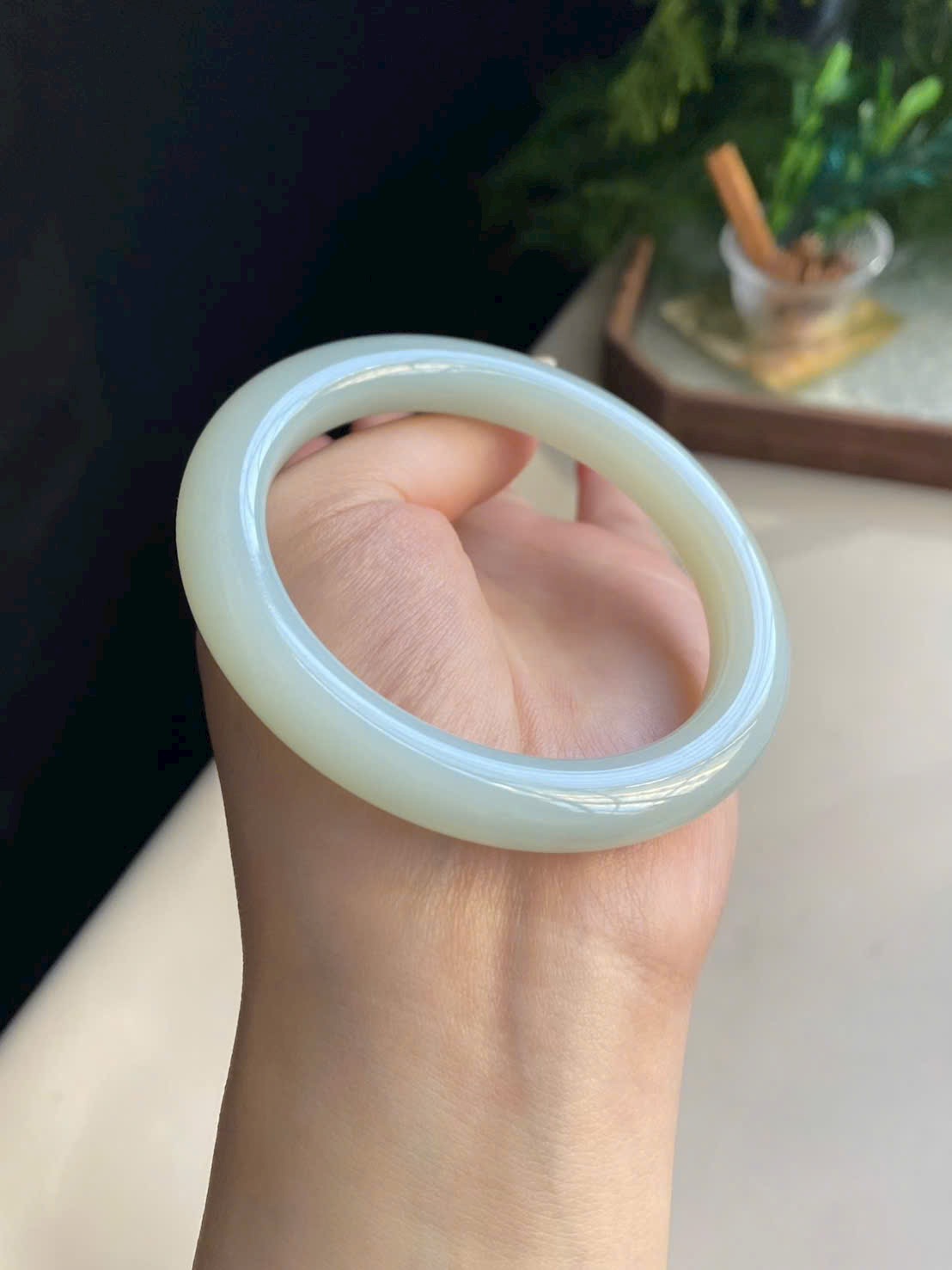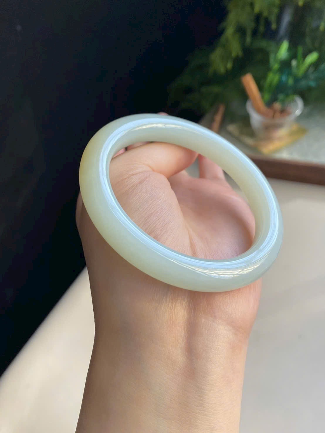 Vòng tay ngọc Hòa Điền – liệu Nga, dáng bản trung – lưng nheo