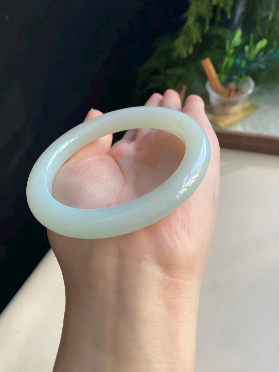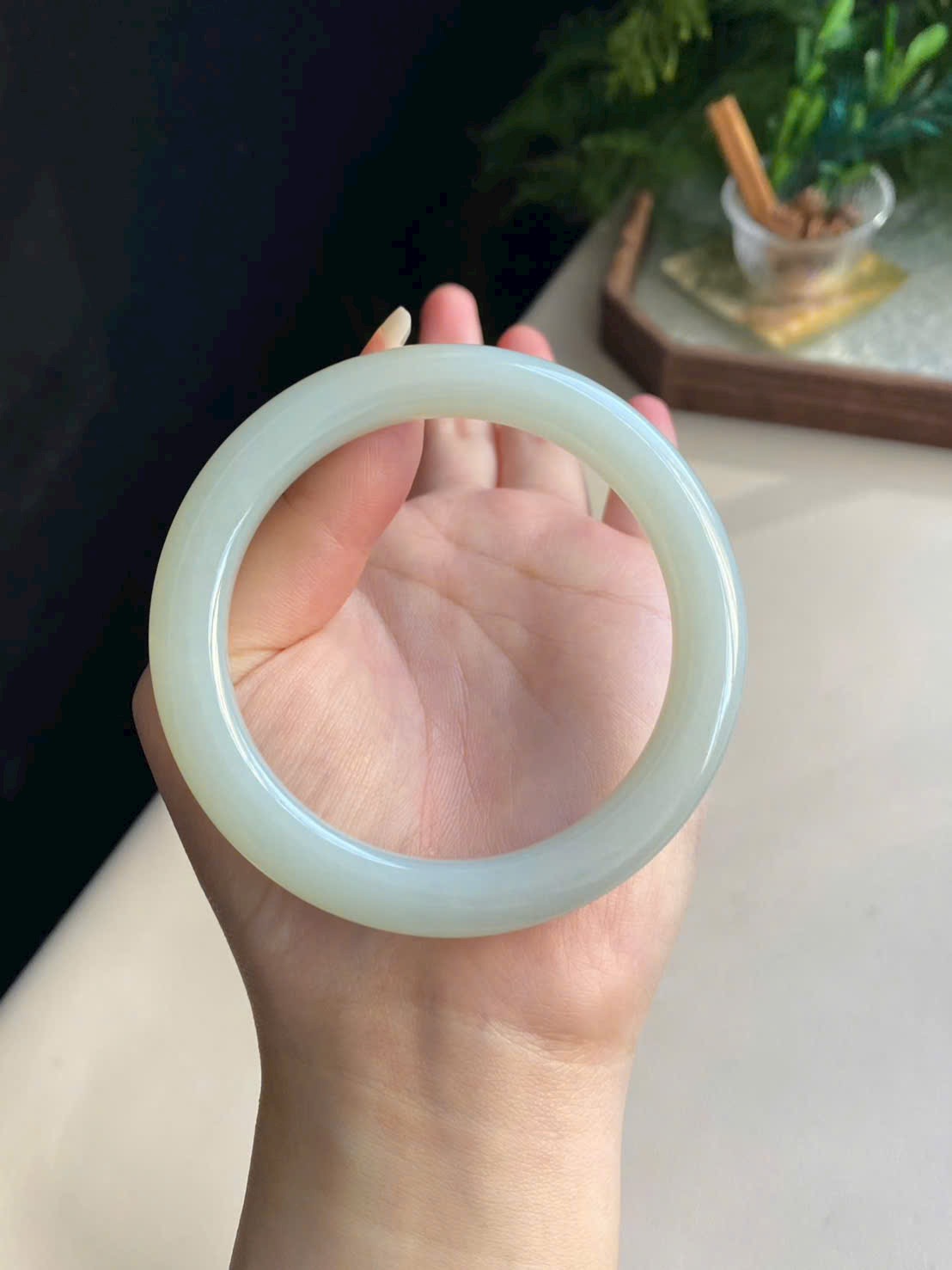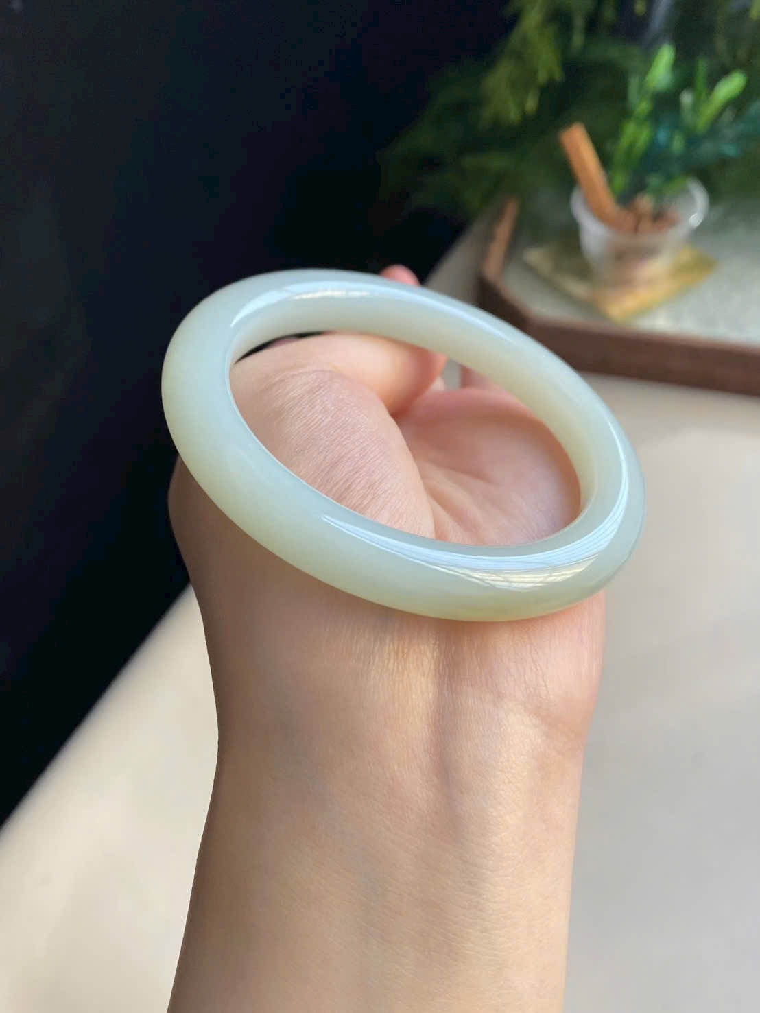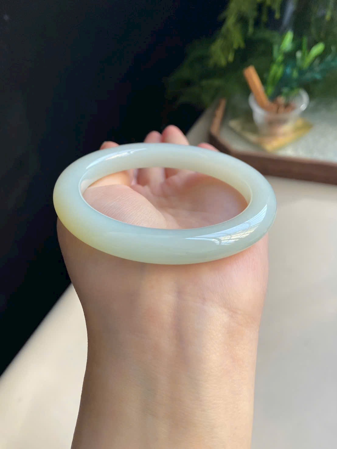 Vòng tay ngọc Hòa Điền – liệu Nga, dáng bản trung – lưng nheo