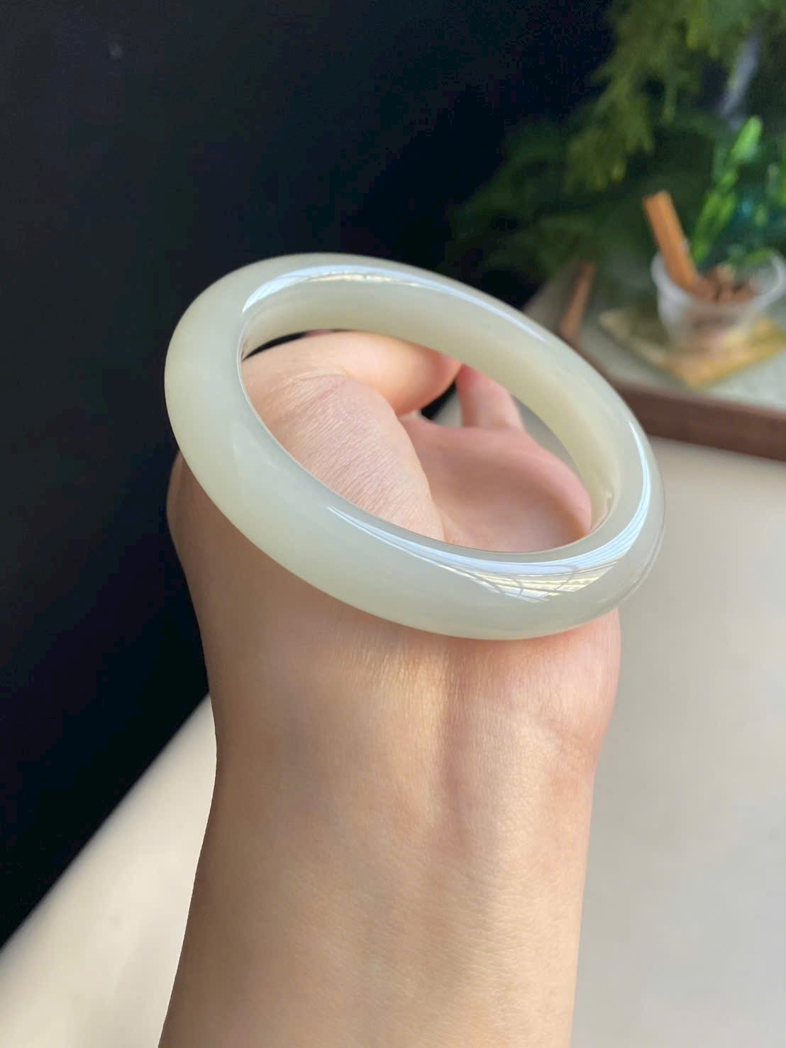Vòng tay ngọc Hòa Điền – liệu Thanh Hải, dáng bản trung.