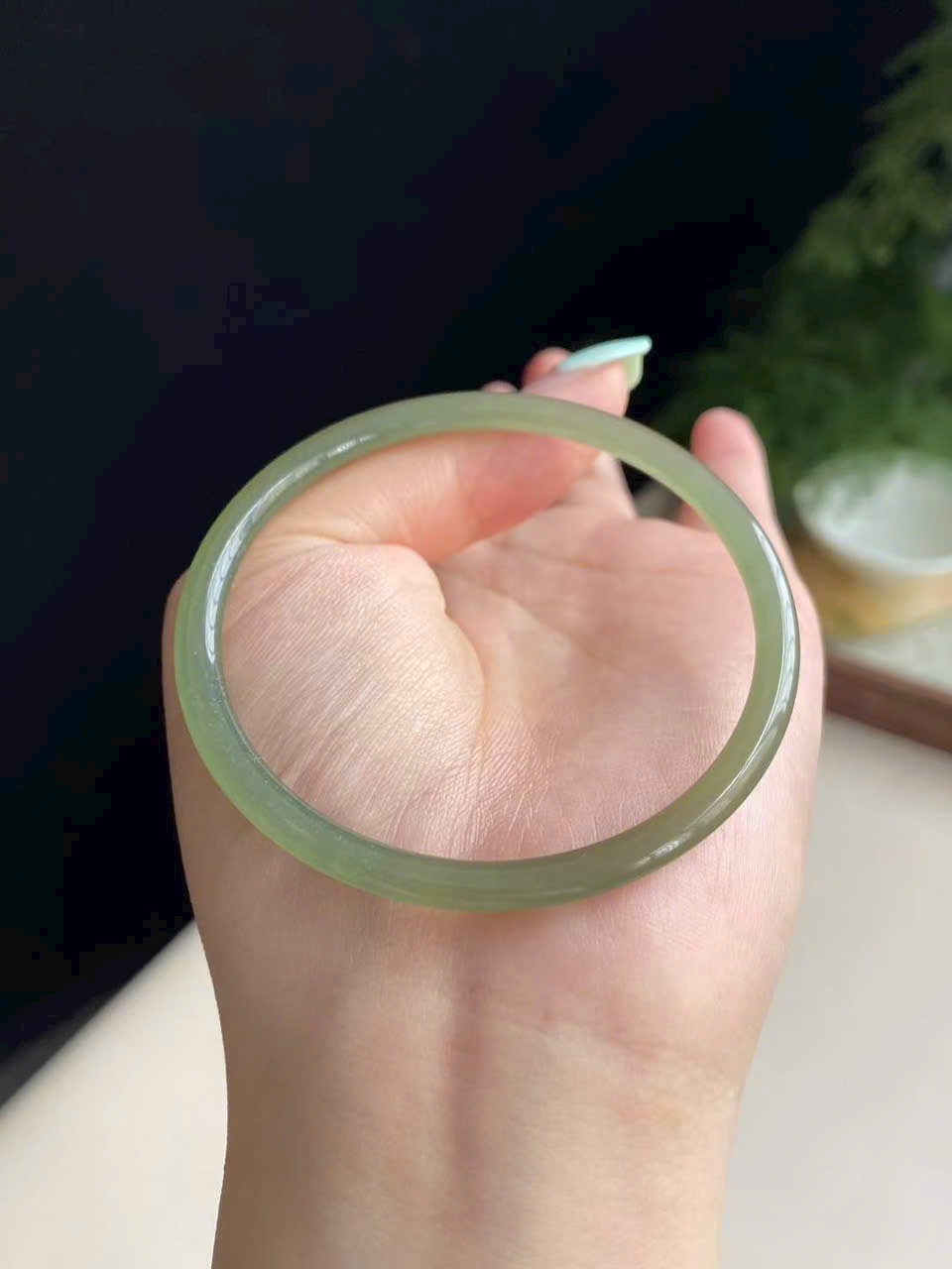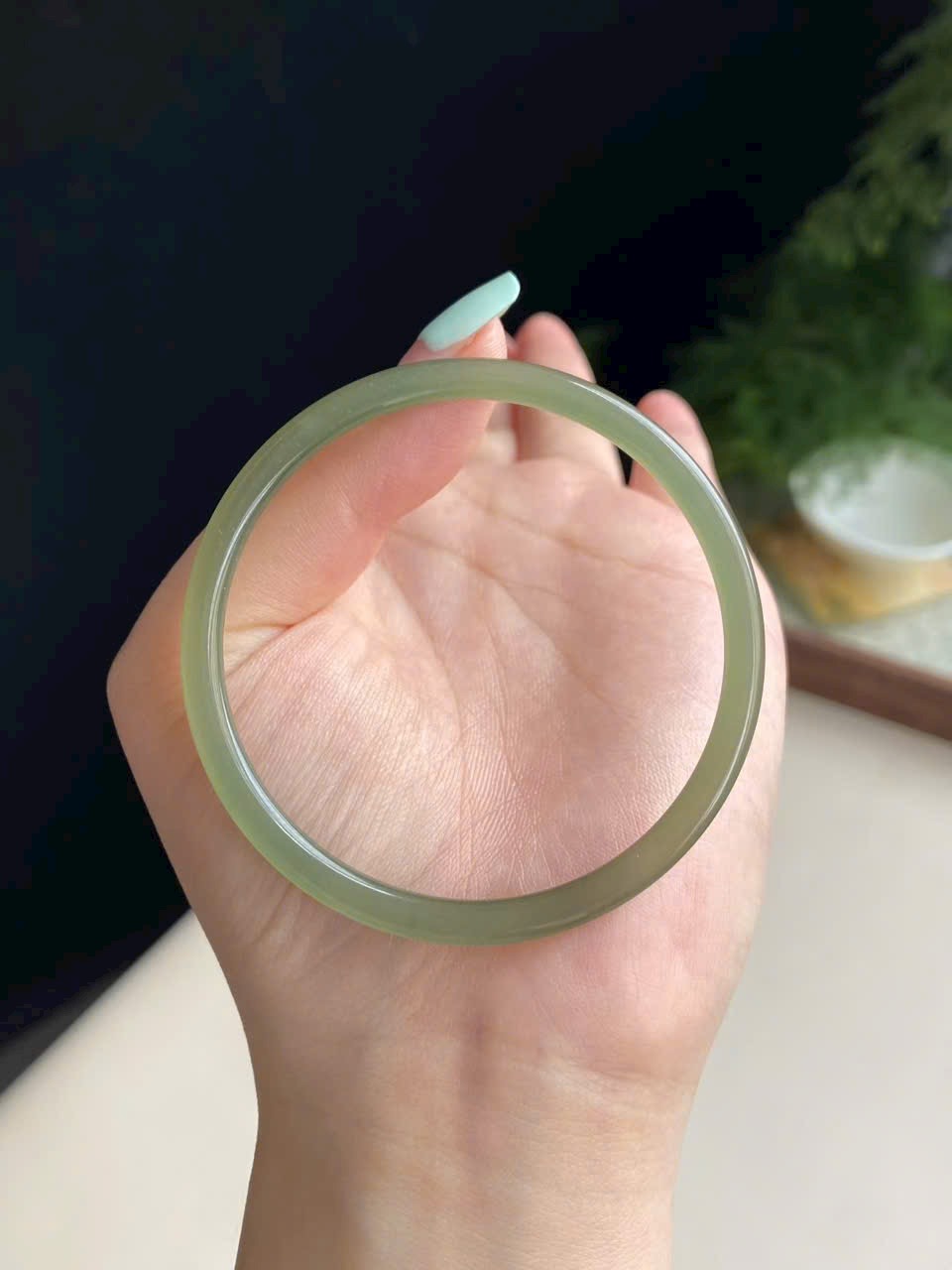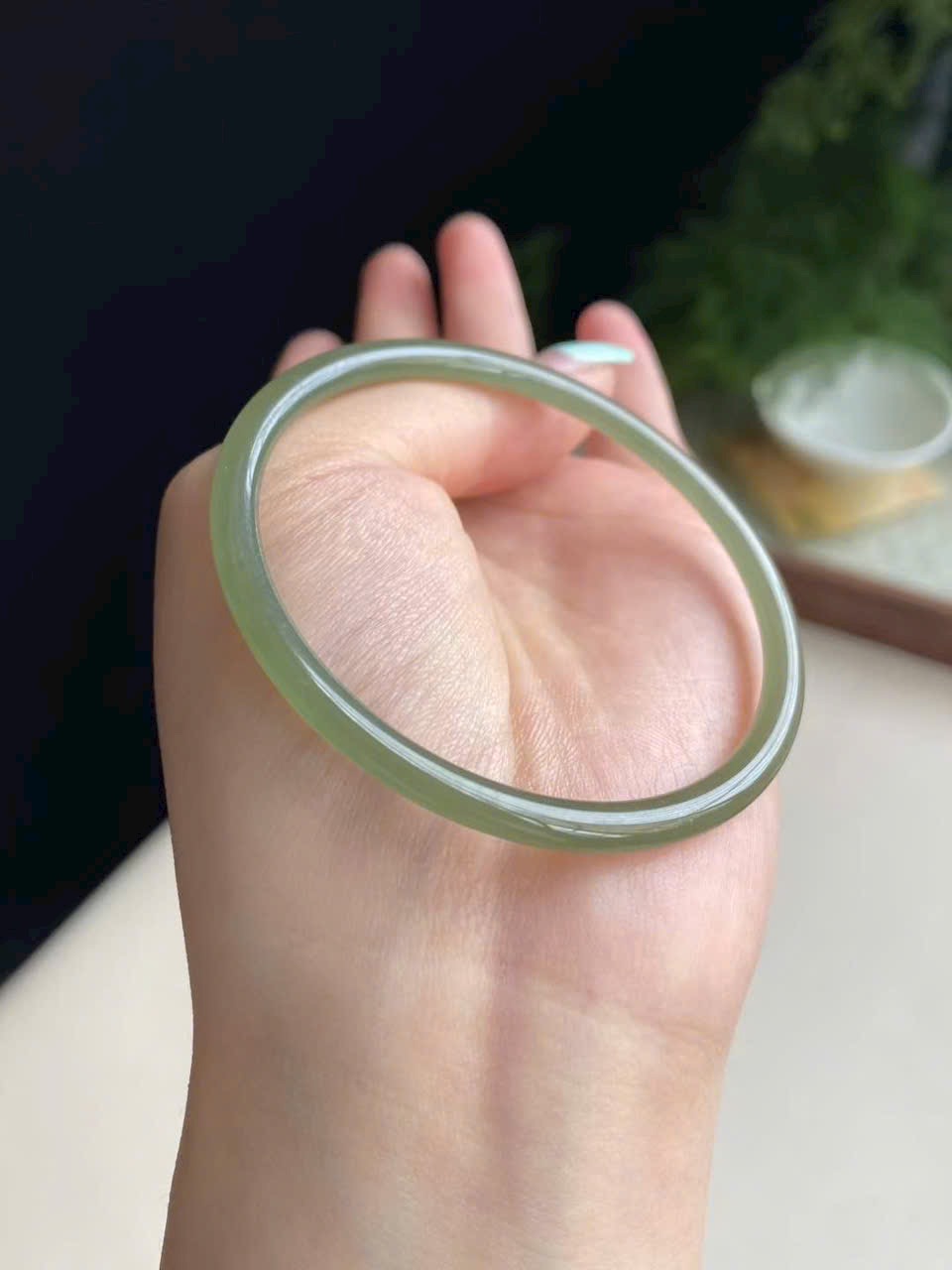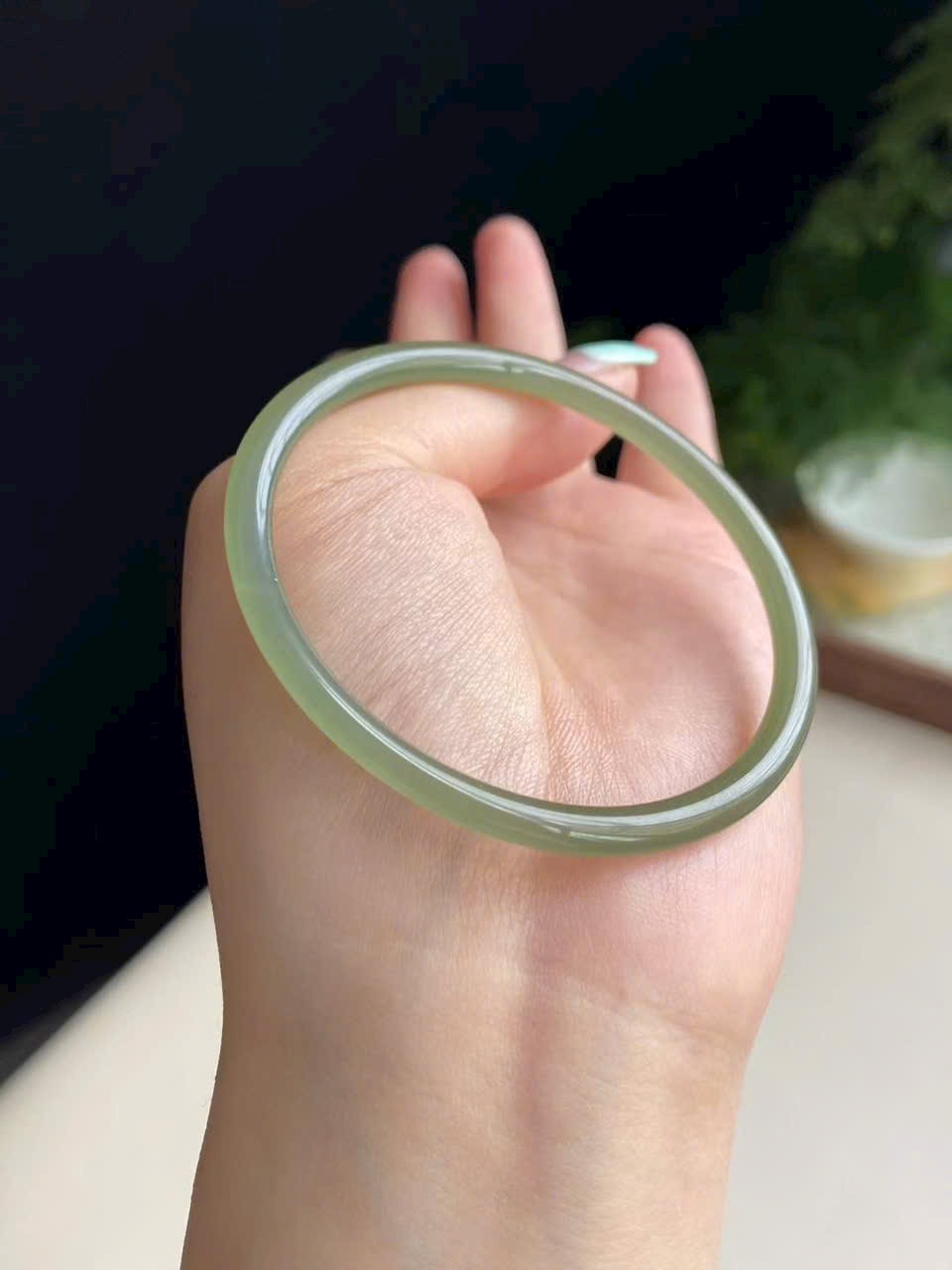Màu xanh hồ nước dịu mát, trong trẻo thanh thoát. Ngọc chất mịn, bóng nước, không nứt vỡ – nhẹ nhàng mà sang trọng.