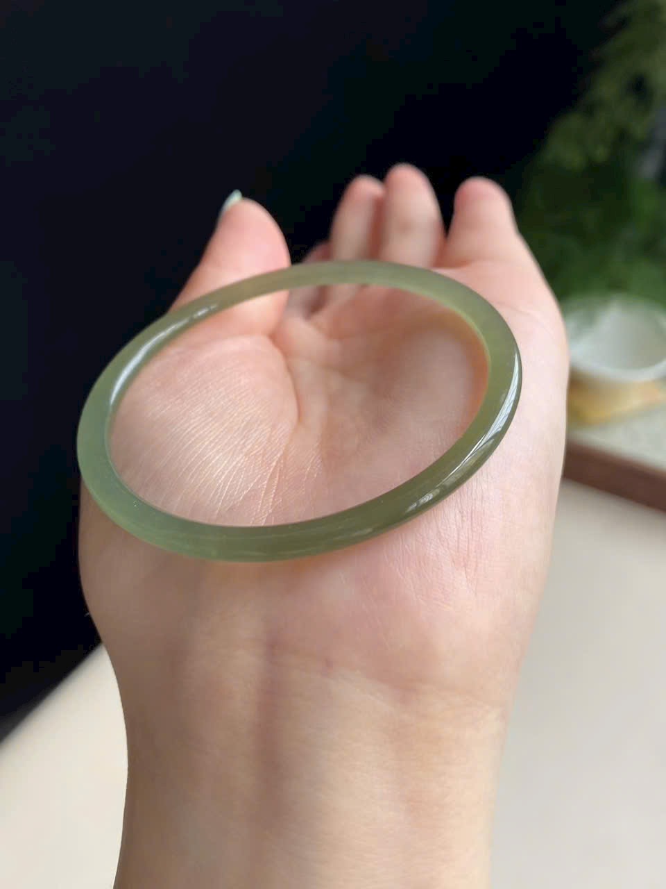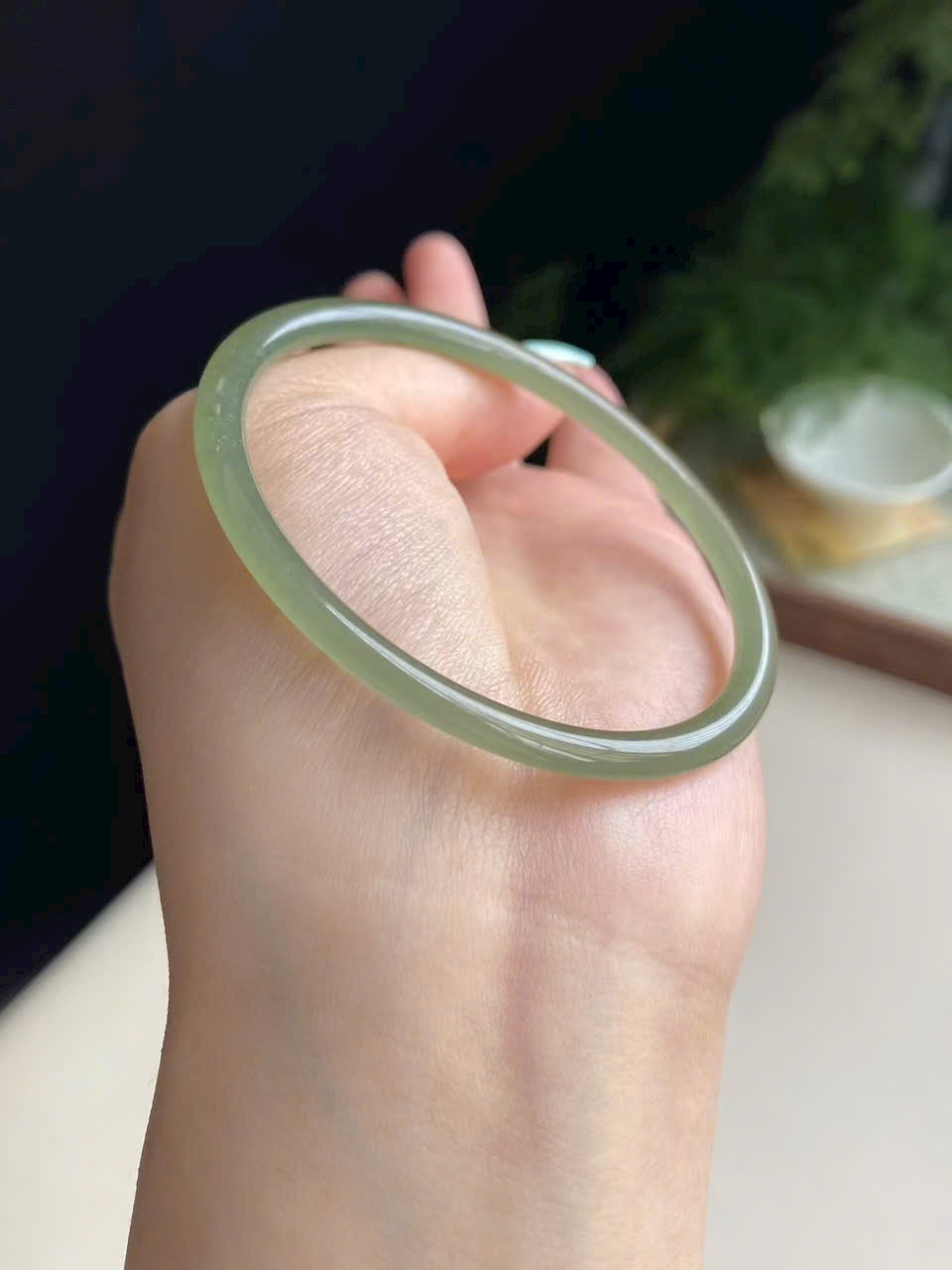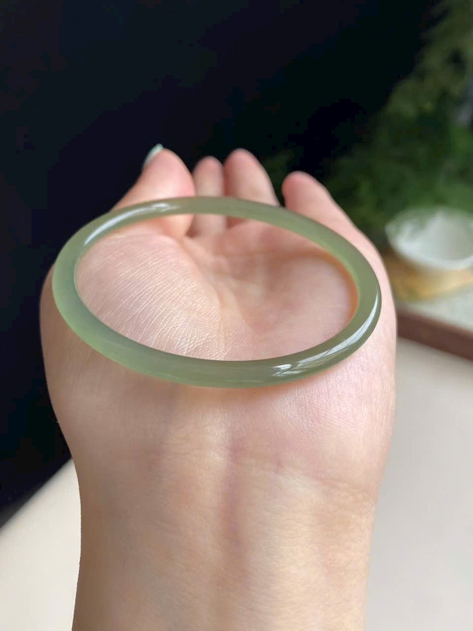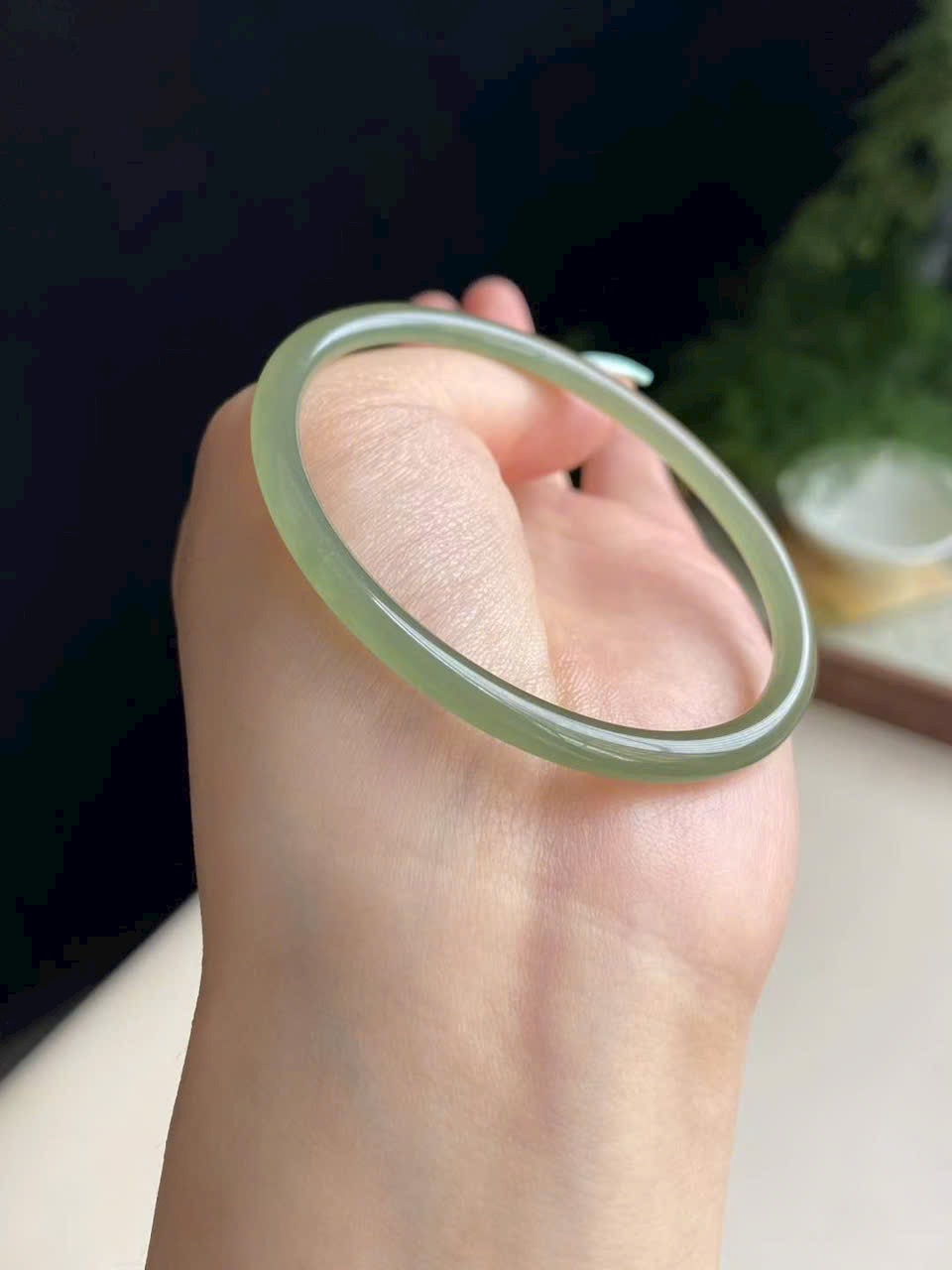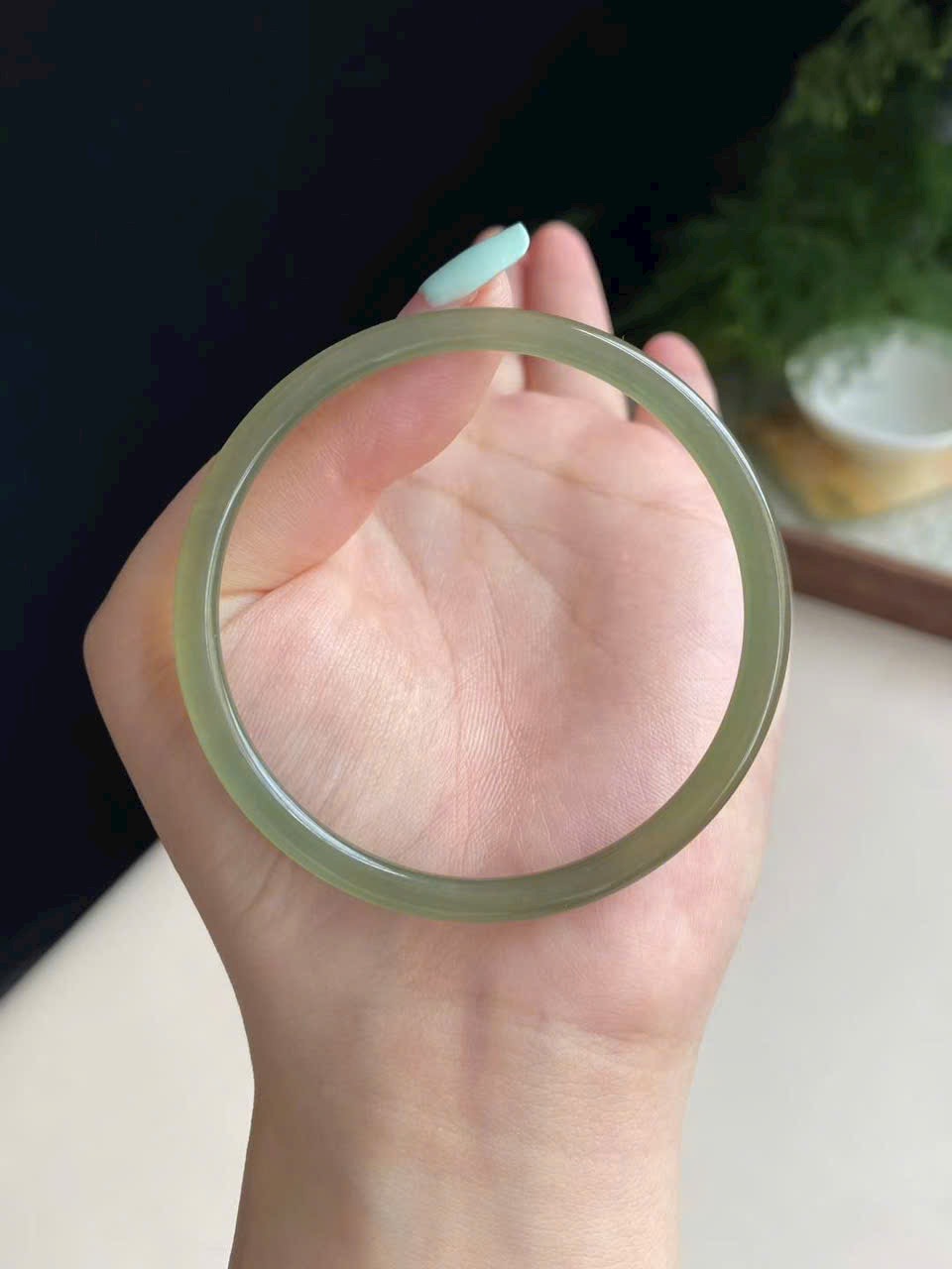 Màu xanh hồ nước dịu mát, trong trẻo thanh thoát. Ngọc chất mịn, bóng nước, không nứt vỡ – nhẹ nhàng mà sang trọng.